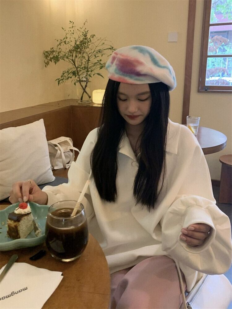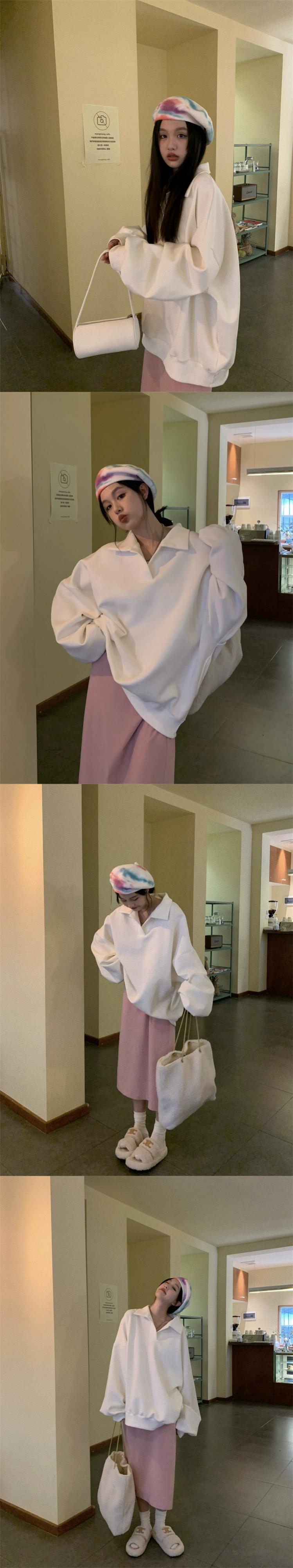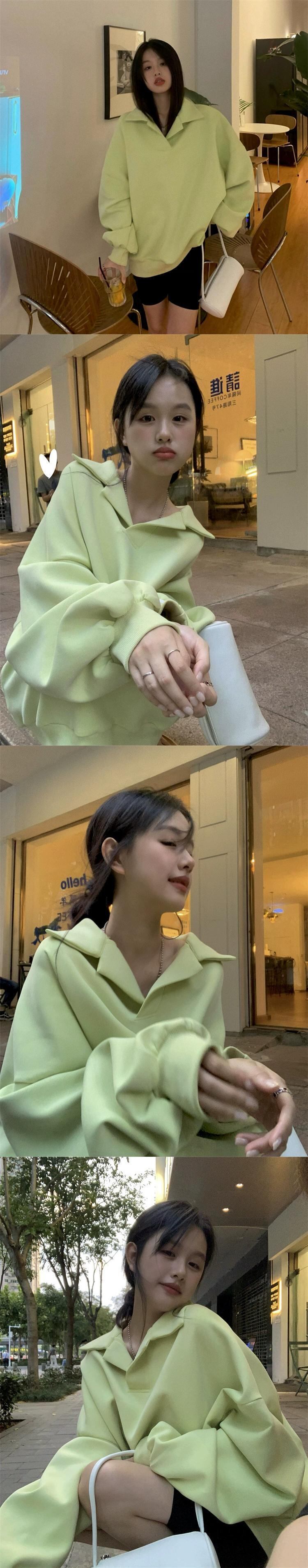 ポロ襟フード付きスウェットシャツの女性の春と秋 2023 新しいルーズスタイル怠惰なスタイルカジュアルミッドレングス長袖トップ ロング スプリング 春物 オータム 秋物 7460017673450794 | framboise21