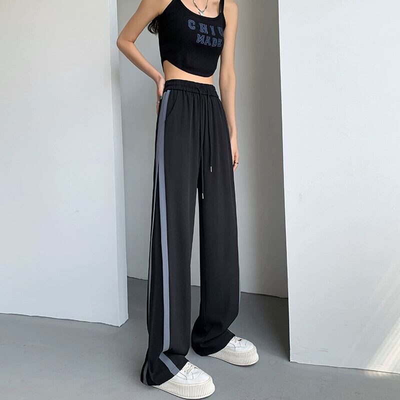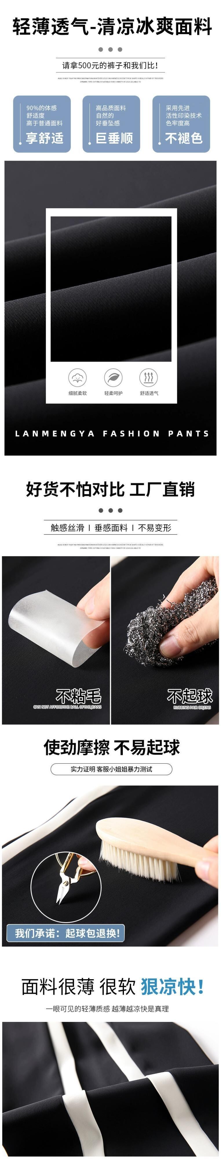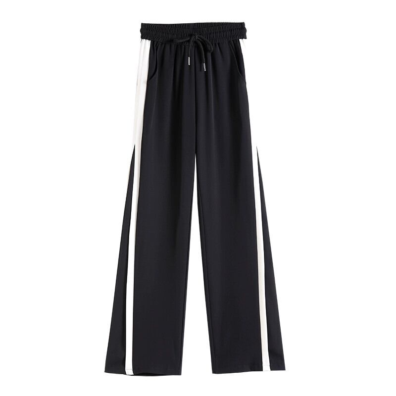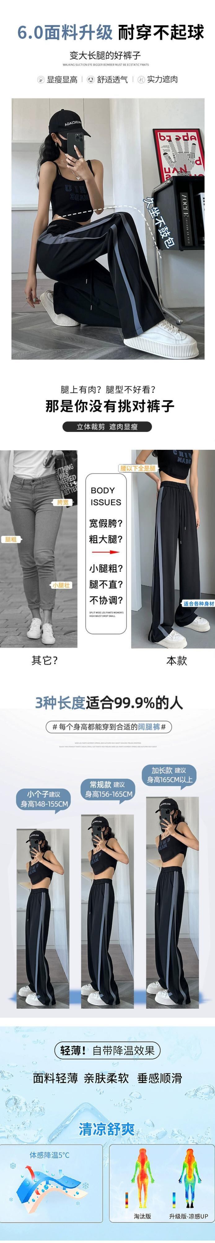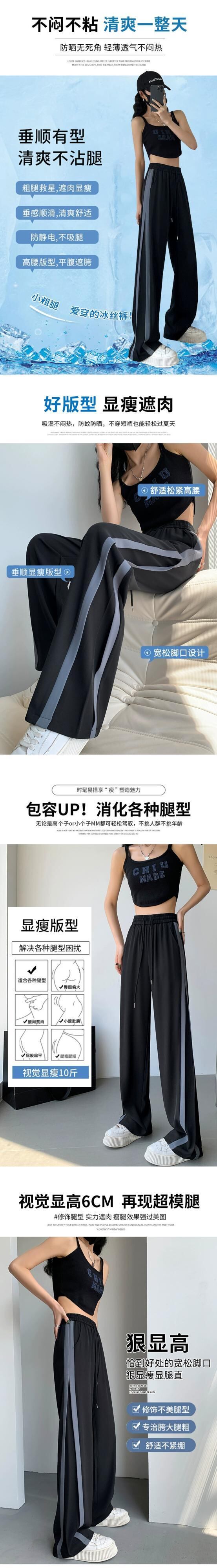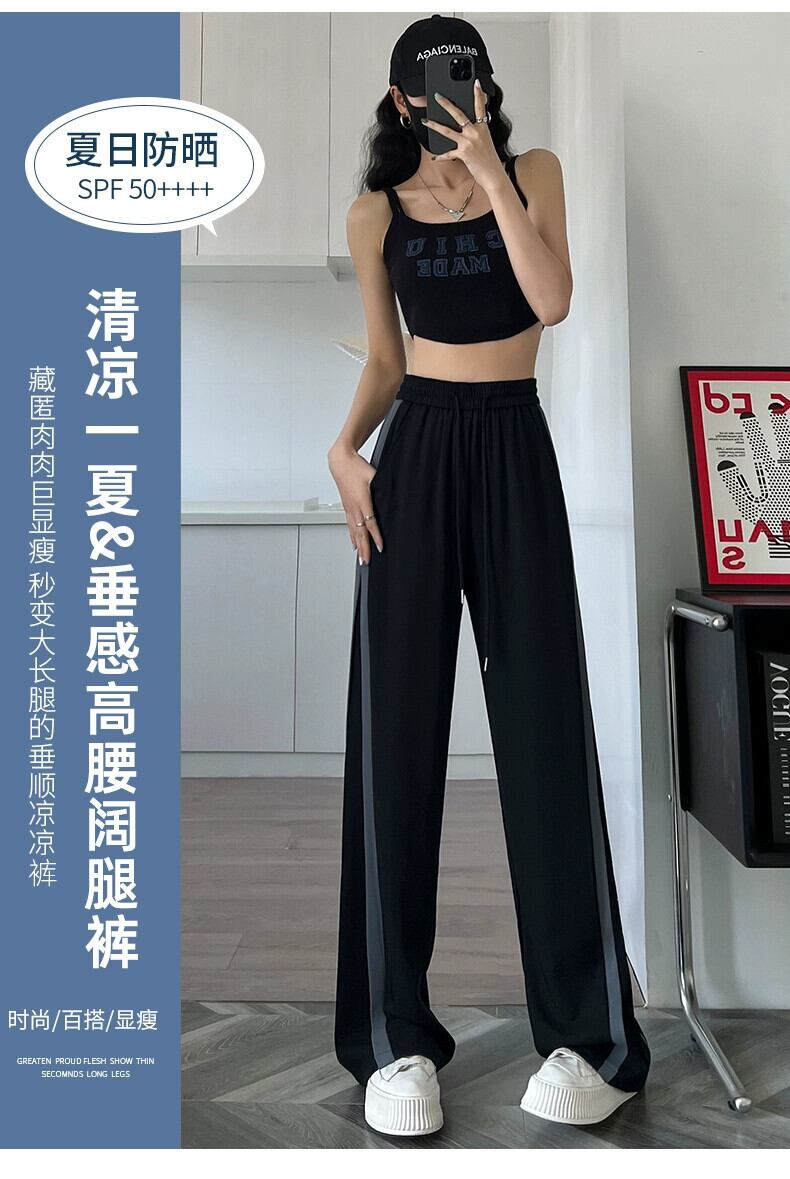 アイスシルクのワイドレッグパンツの幅が狭いバージョンの女性、夏、薄く、ドレープがあり、ハイウエスト、ストレートレッグのカジュアルパンツ、背の高い人、エクストラロングパンツ、ブラック サマー 夏物 7460055725255933 | framboise21