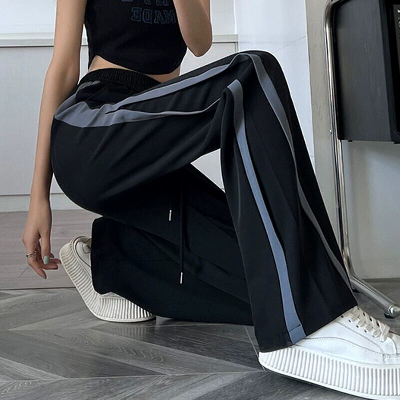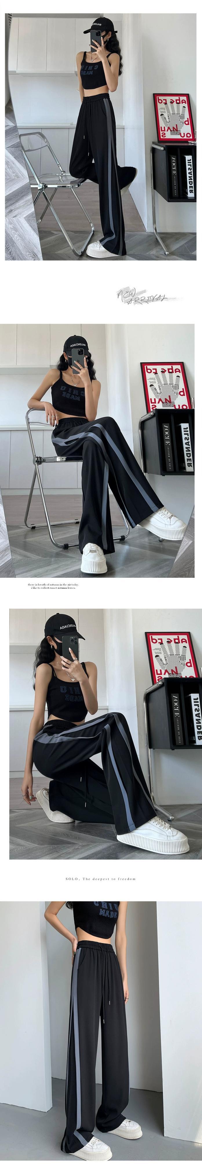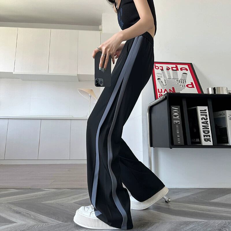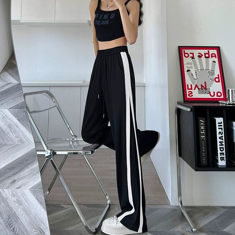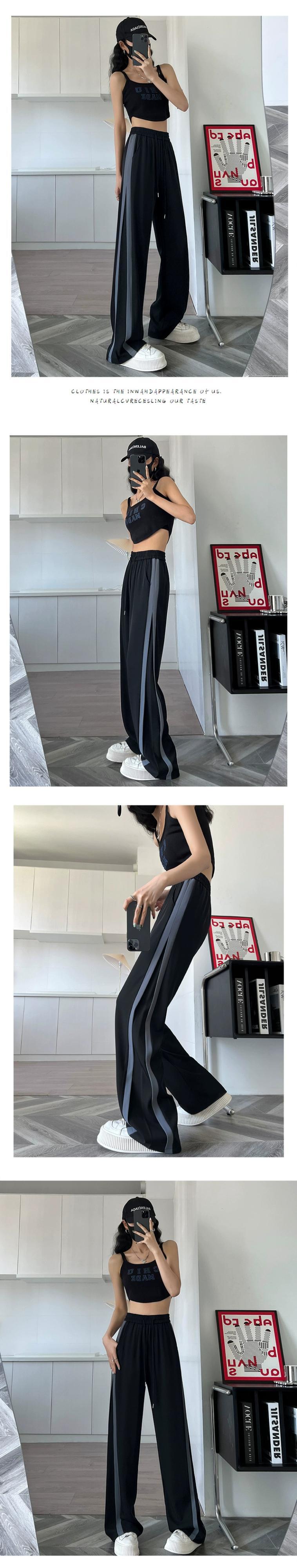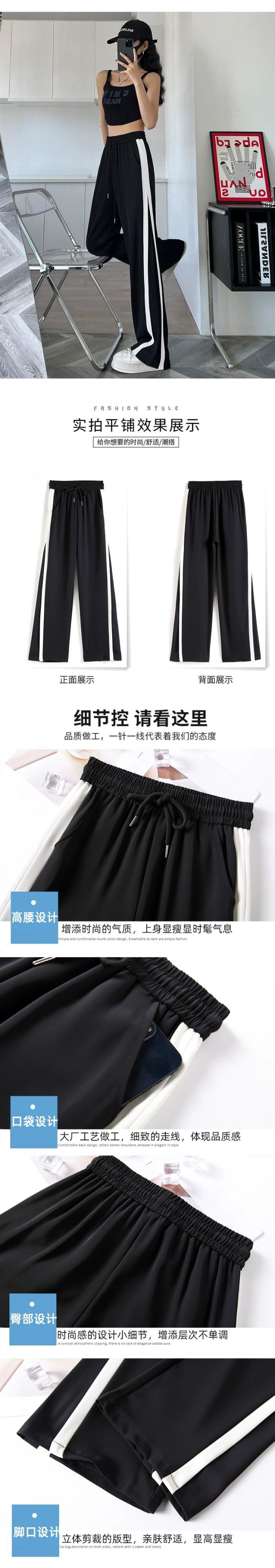 アイスシルクのワイドレッグパンツの幅が狭いバージョンの女性、夏、薄く、ドレープがあり、ハイウエスト、ストレートレッグのカジュアルパンツ、背の高い人、エクストラロングパンツ、ブラック サマー 夏物 7460055725255933 | framboise21