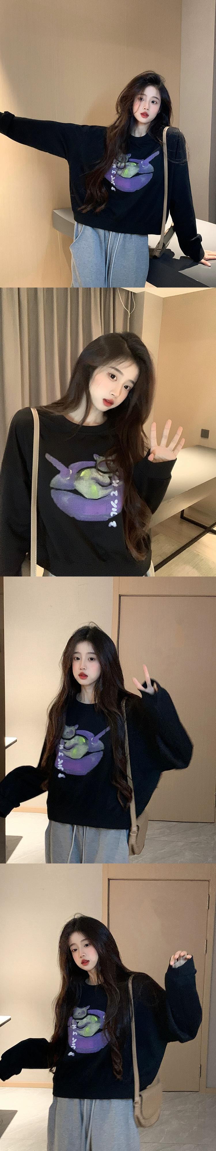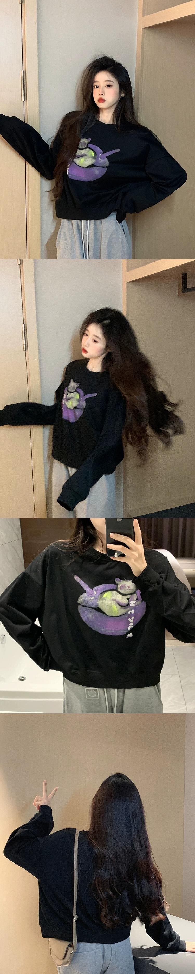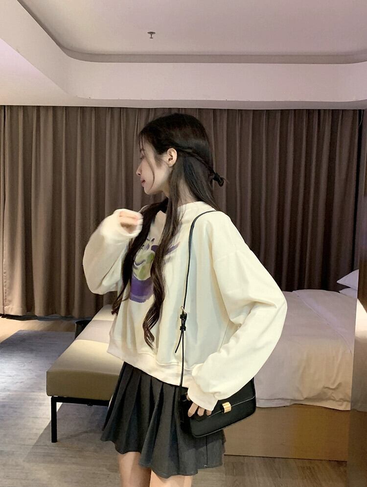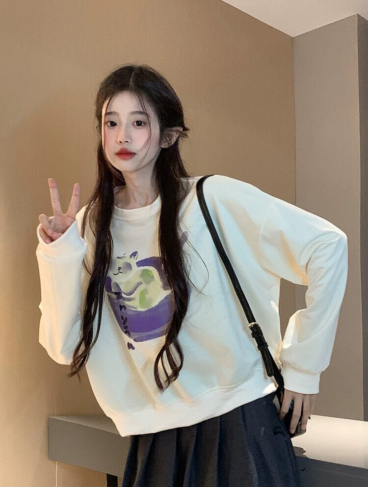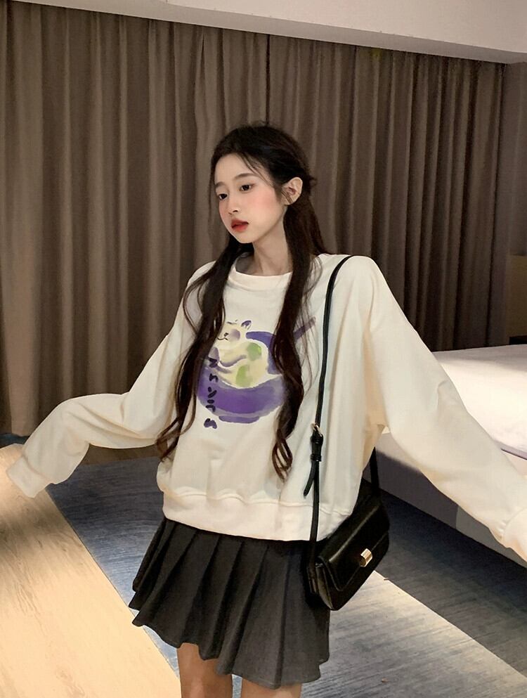 漫画プリントショートトレーナー女性春と秋 2023 新しいスタイルルーズスタイルデザインラウンドネック長袖トップ ロング スプリング 春物 オータム 秋物 Oネック 7460077110033491 | framboise21