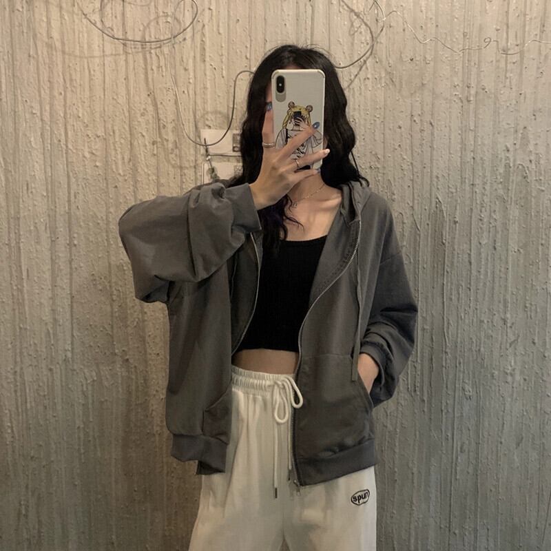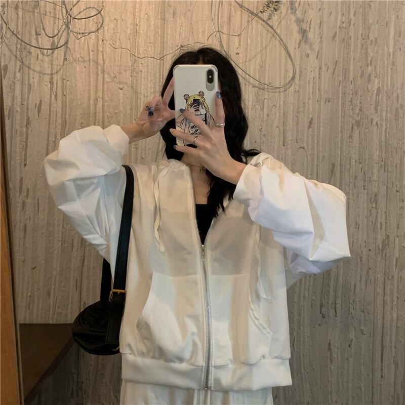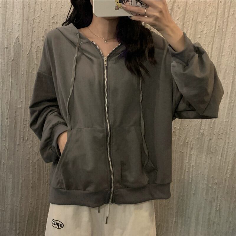 フード付きスウェットシャツジャケット薄手の女性の2023春と秋の新しいルーズスタイルカジュアル多用途長袖ジッパーカーディガン ロング スプリング 春物 オータム 秋物 7460080600810304 | framboise21
