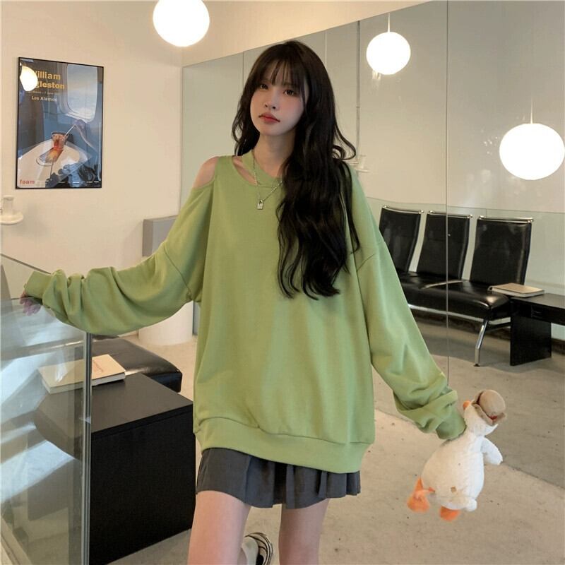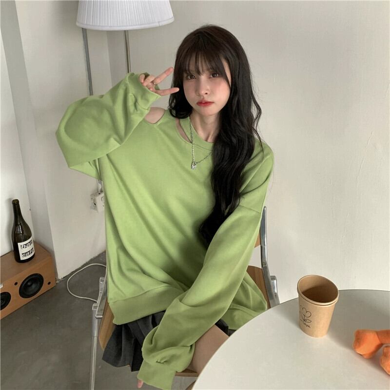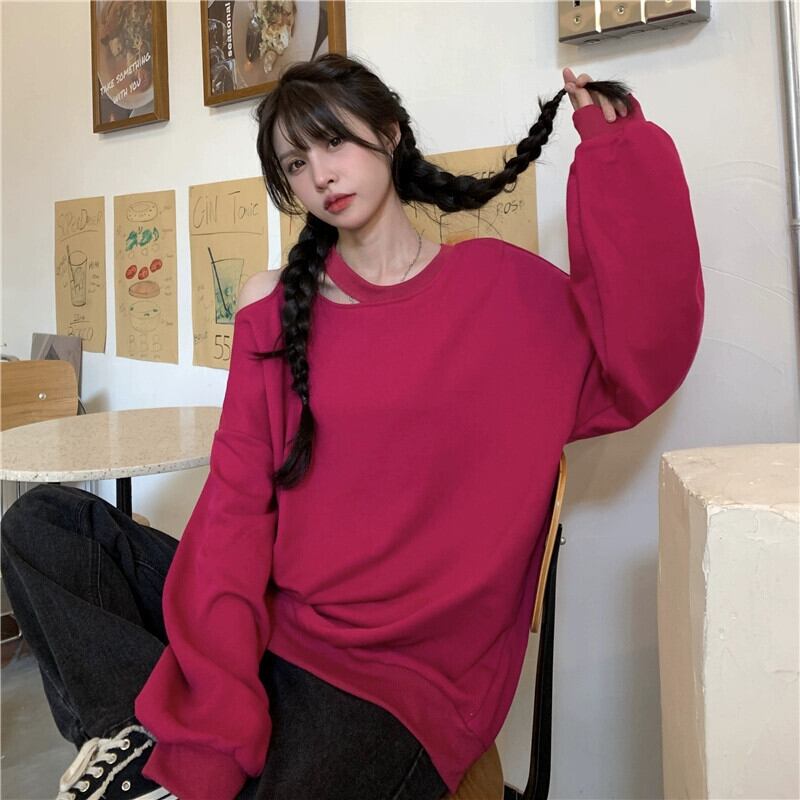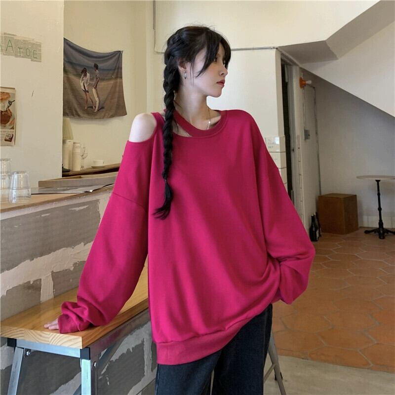 ドラゴンフルーツカラーのホルターネックオフショルダースウェットシャツの女性の春と秋の2023新しいルーズスタイル怠惰なスタイルのミッドレングストップ スプリング 春物 オータム 秋物 746001108326566 | framboise21
