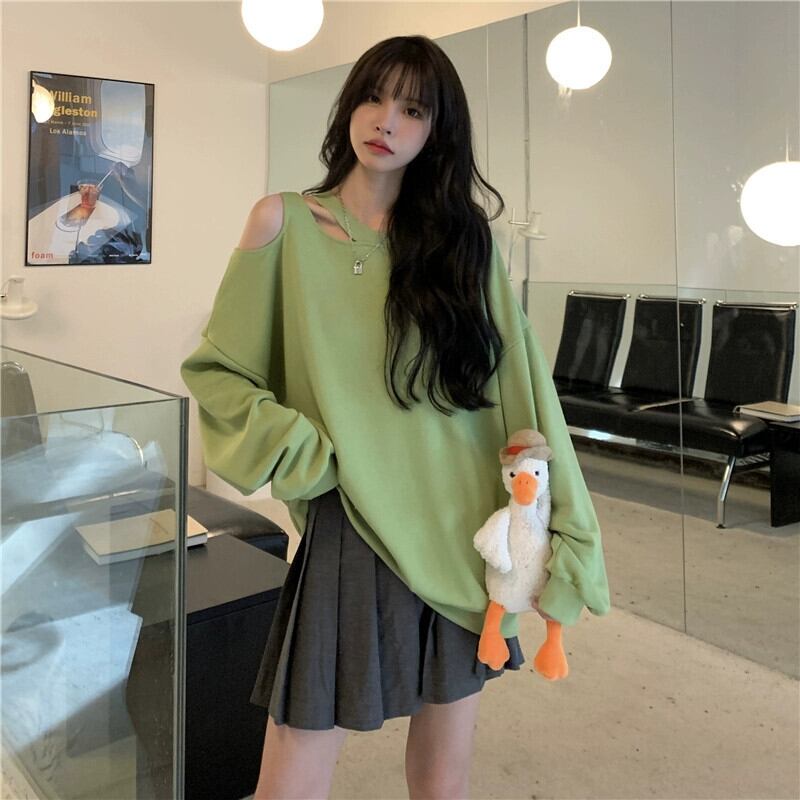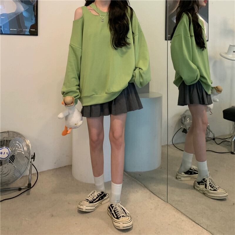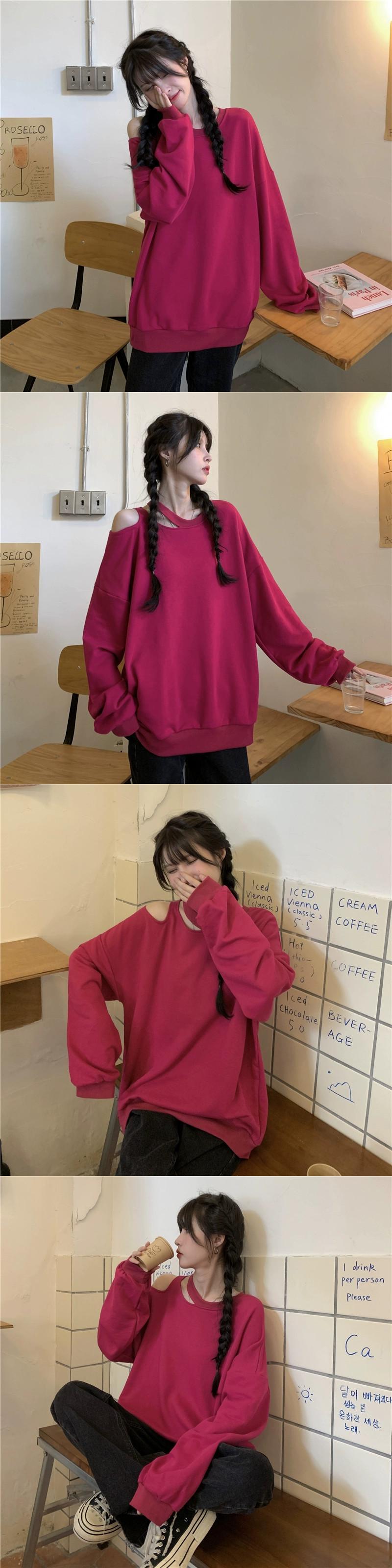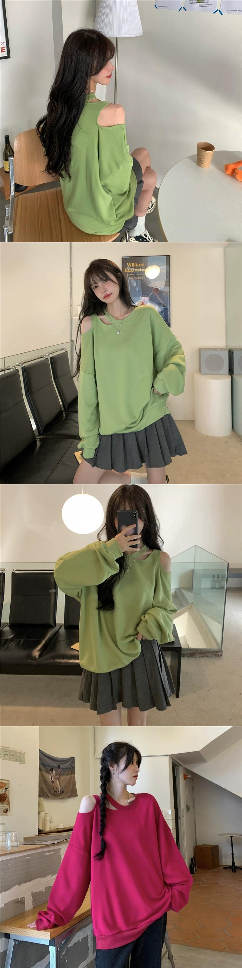 ドラゴンフルーツカラーのホルターネックオフショルダースウェットシャツの女性の春と秋の2023新しいルーズスタイル怠惰なスタイルのミッドレングストップ スプリング 春物 オータム 秋物 746001108326566 | framboise21