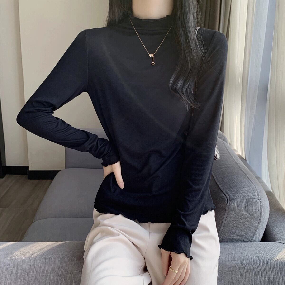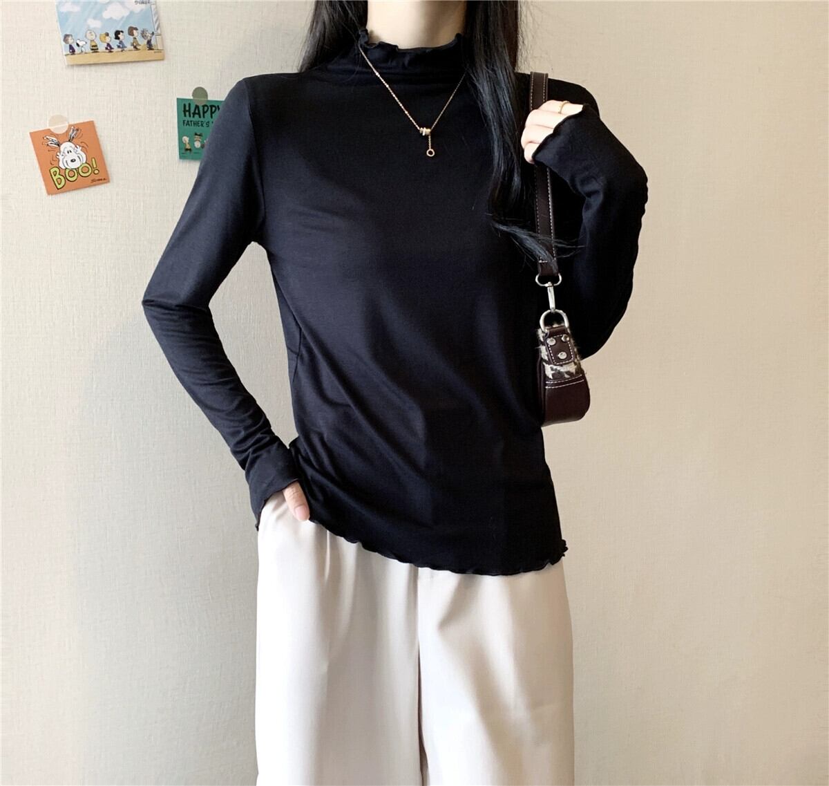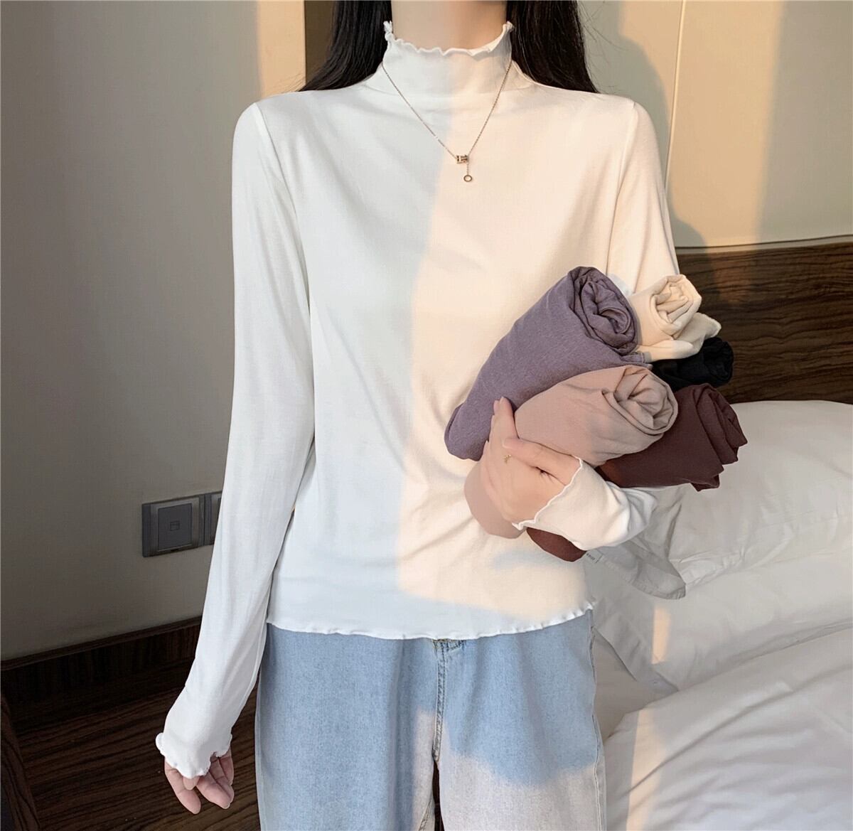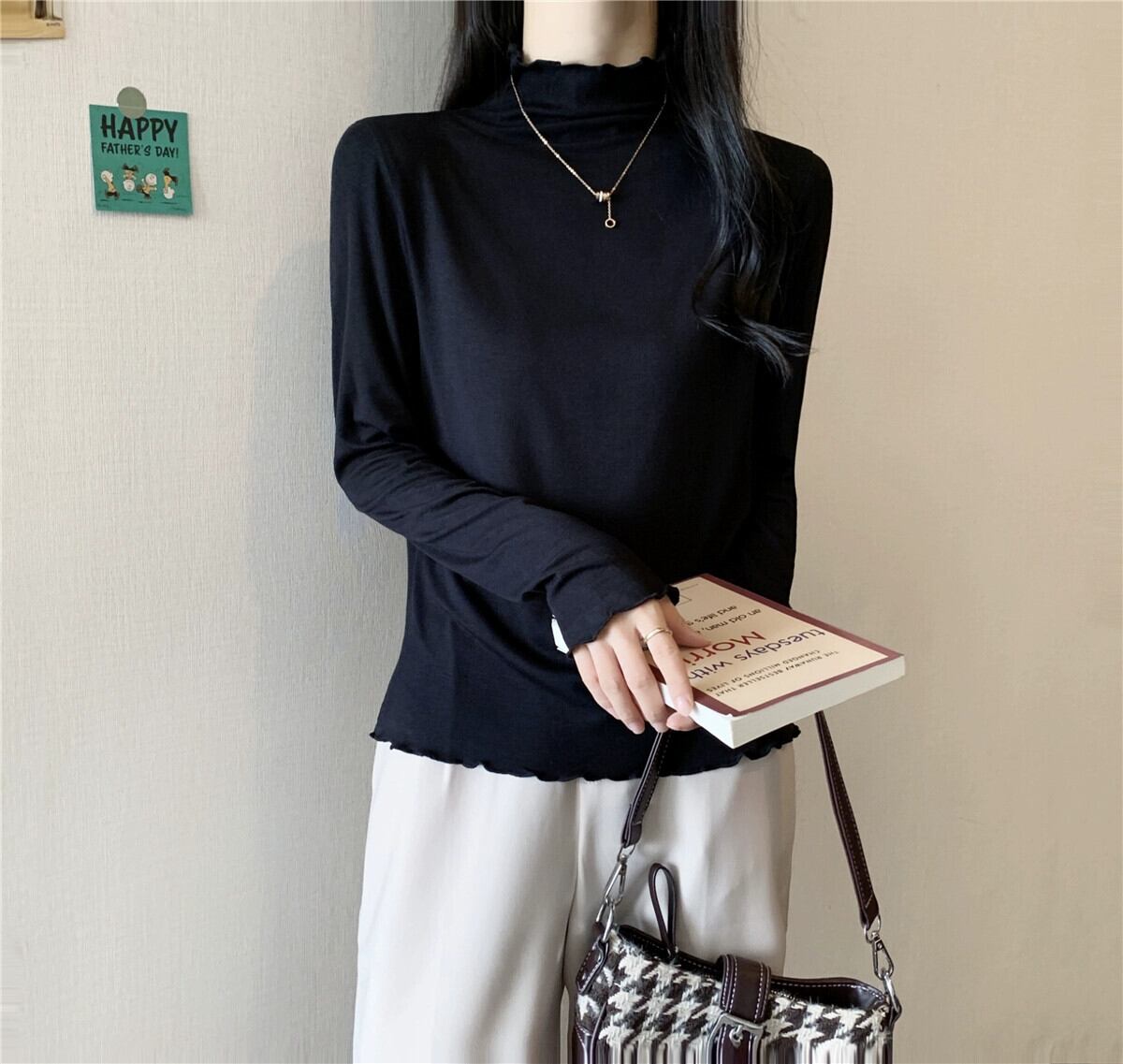 モーダルハーフタートルネックボトムシャツレディース、春秋インナートップ、イヤリング付きスリムでスタイリッシュな長袖Tシャツ ロング スプリング 春物 オータム 秋物 指輪 7460018841293007 | framboise21