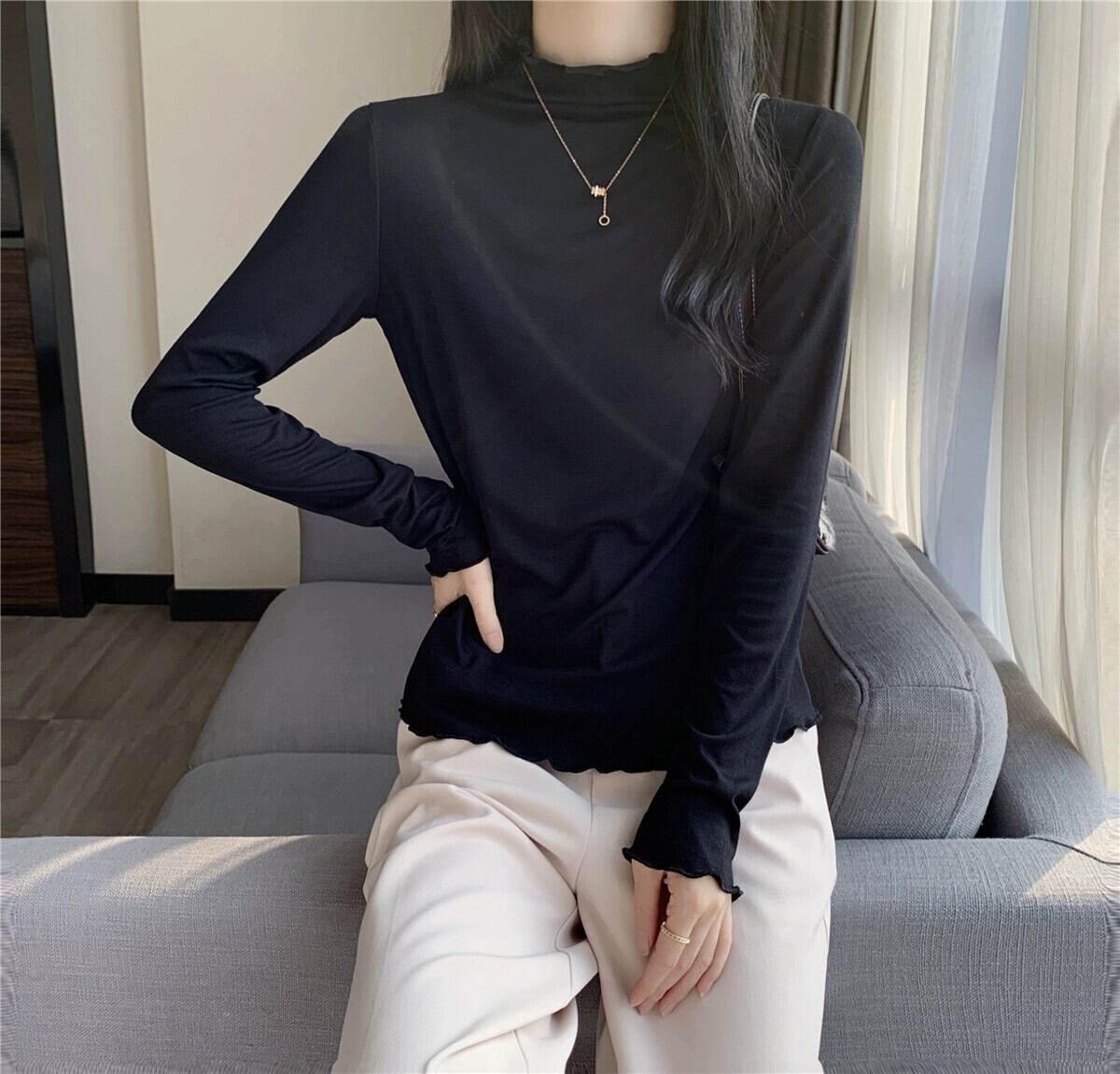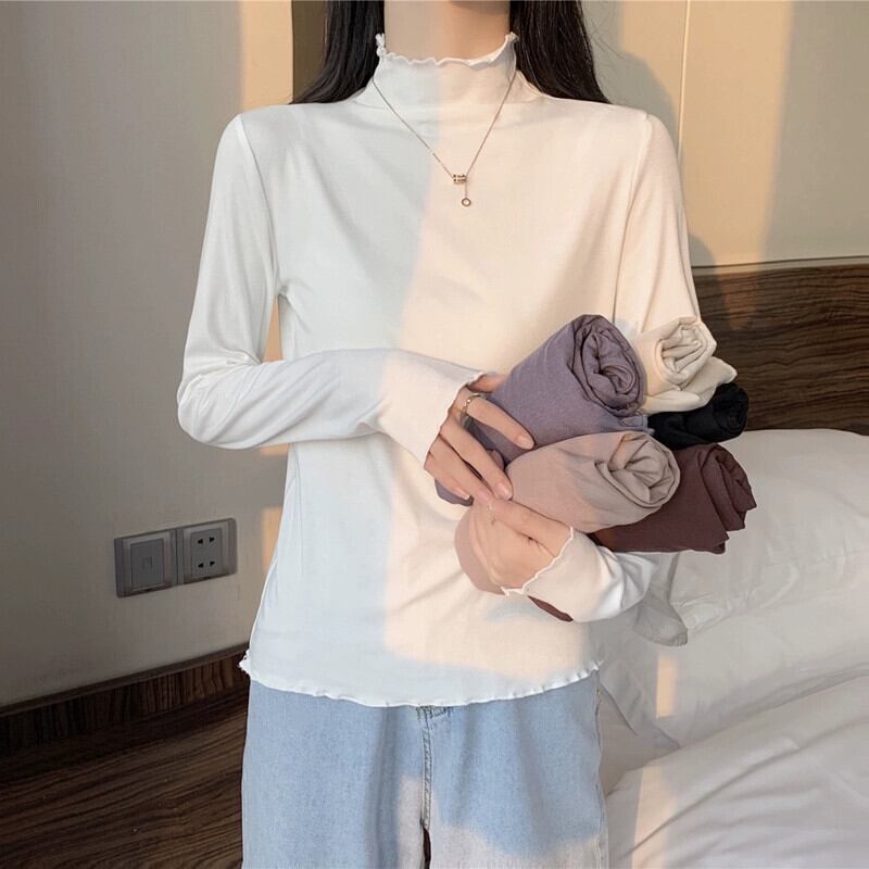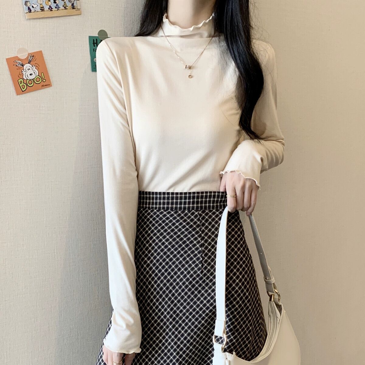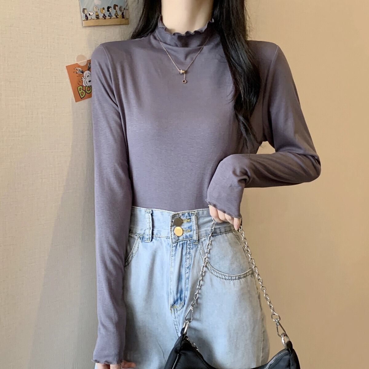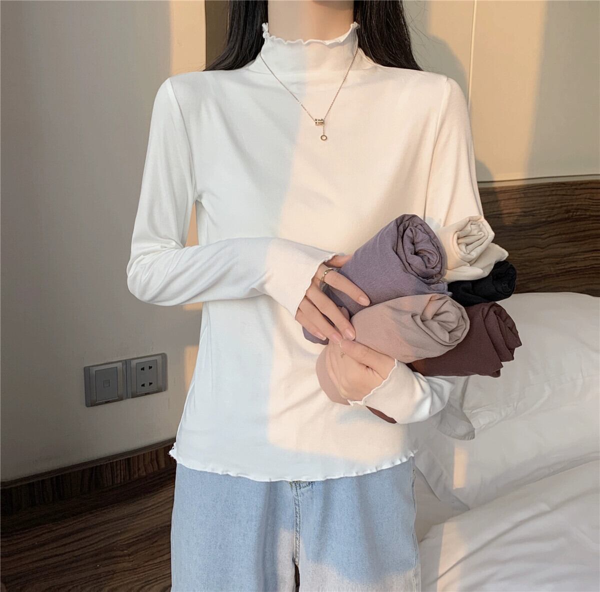 モーダルハーフタートルネックボトムシャツレディース、春秋インナートップ、イヤリング付きスリムでスタイリッシュな長袖Tシャツ ロング スプリング 春物 オータム 秋物 指輪 7460018841293007 | framboise21