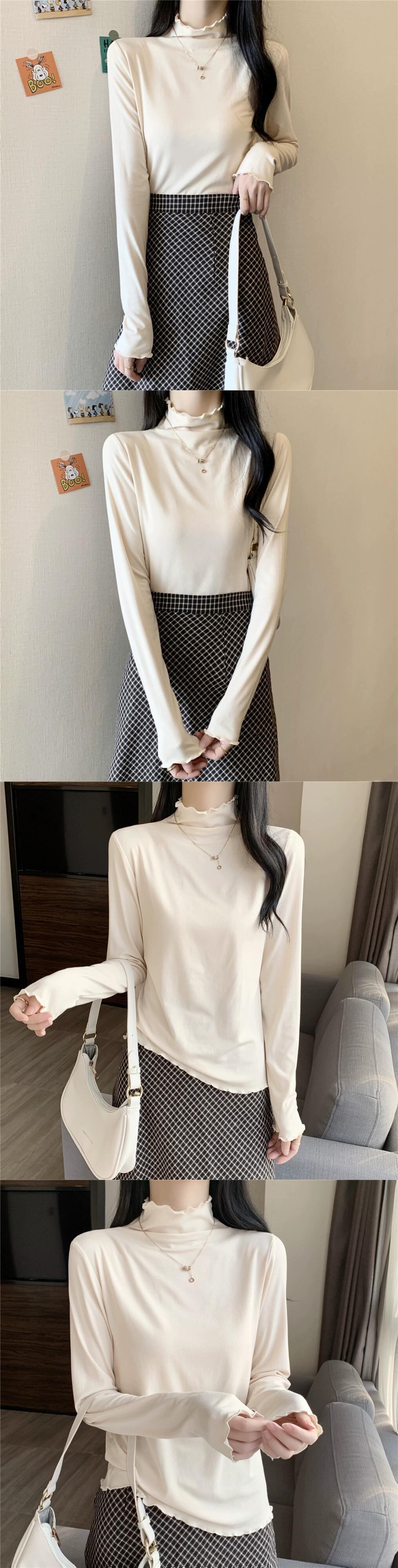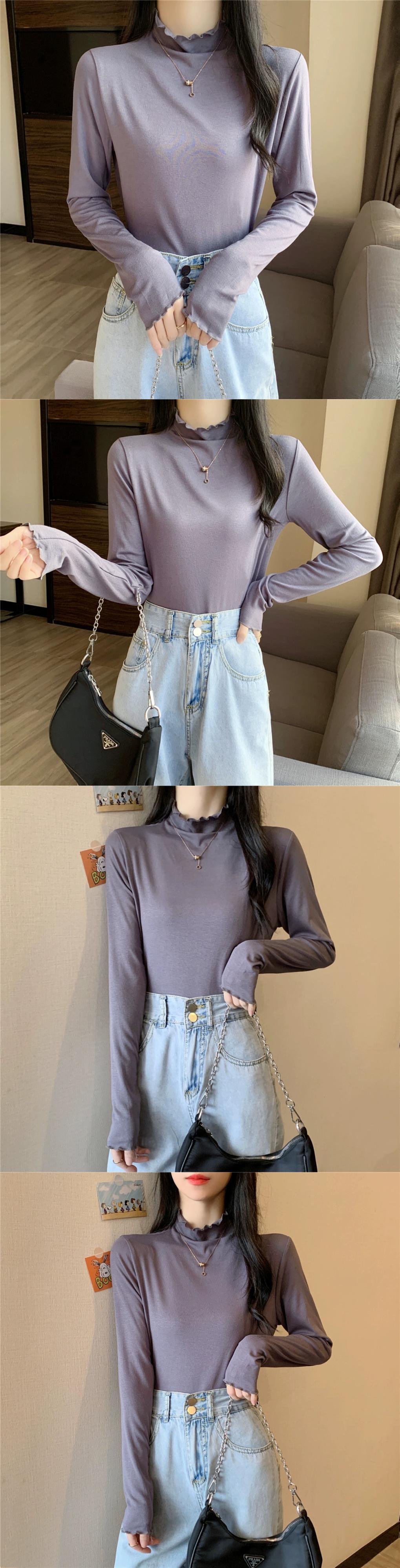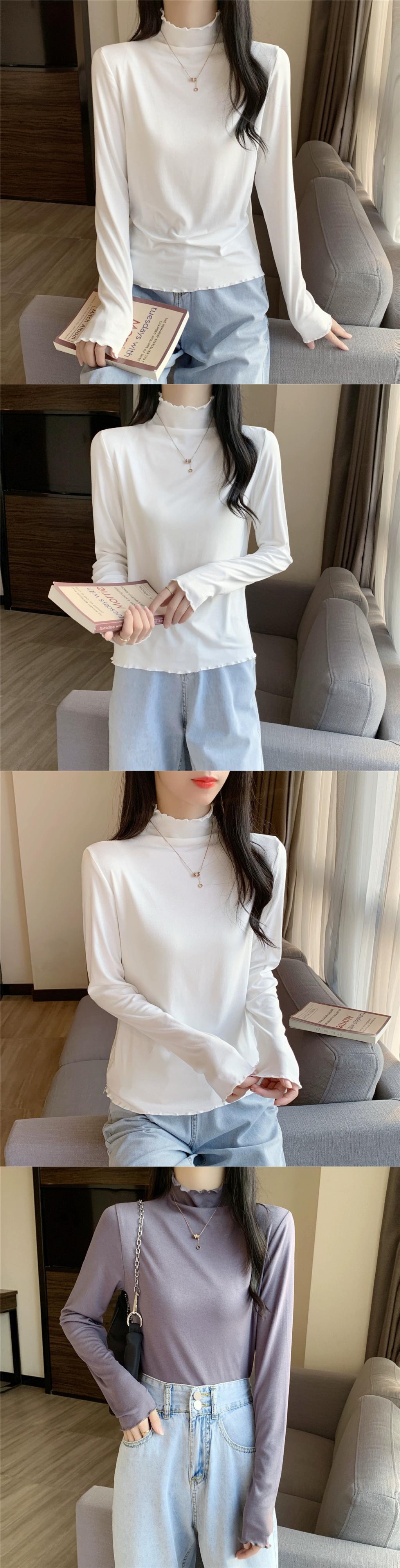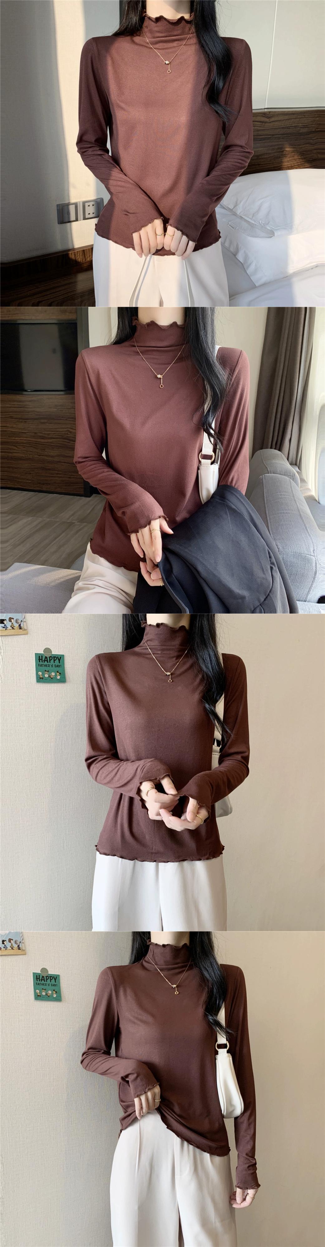 モーダルハーフタートルネックボトムシャツレディース、春秋インナートップ、イヤリング付きスリムでスタイリッシュな長袖Tシャツ ロング スプリング 春物 オータム 秋物 指輪 7460018841293007 | framboise21