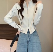 コーデュロイジッパースタンドカラーカーディガントレーナージャケット女性春と秋のデザインスリムフィット多目的不規則なショートトップ スプリング 春物 オータム 秋物 7460028479781459