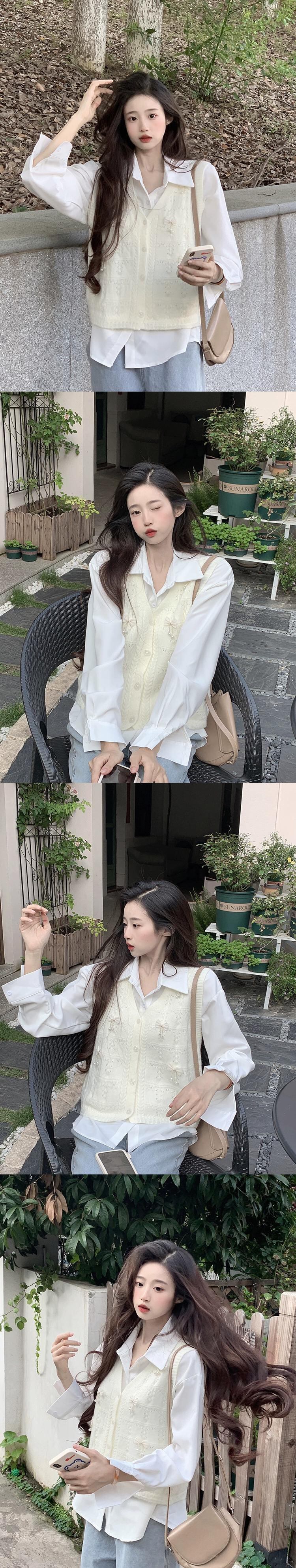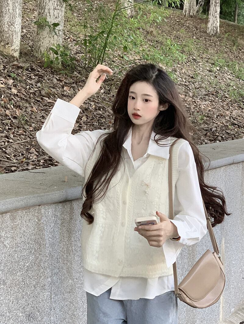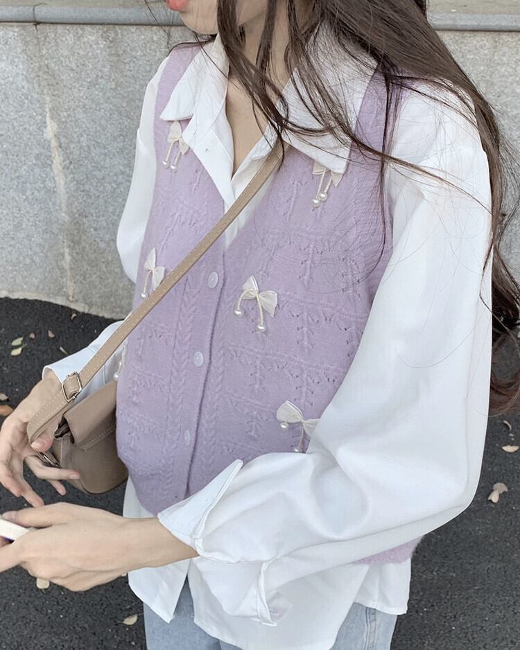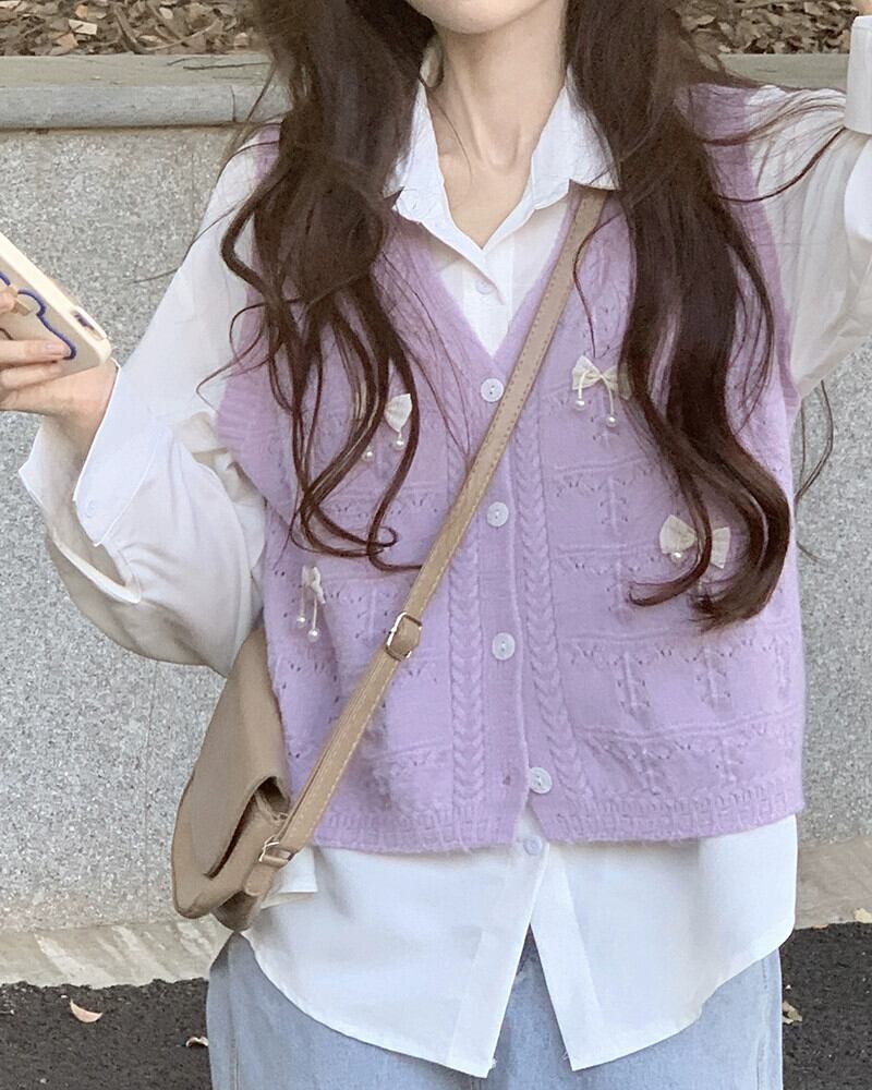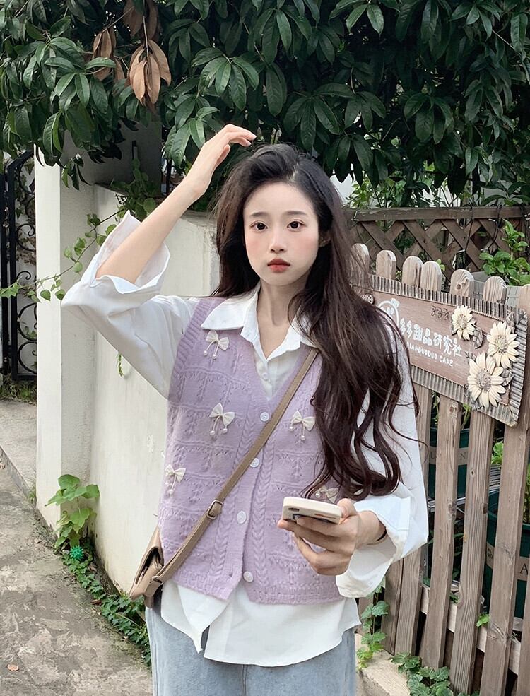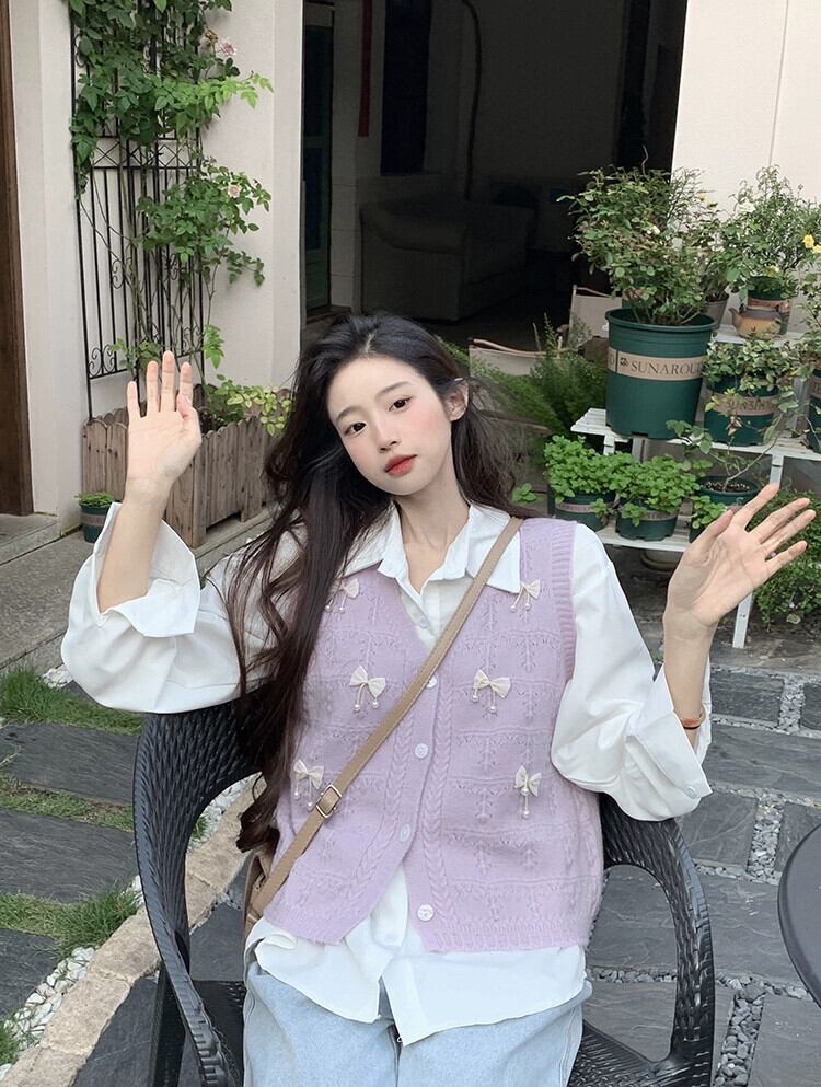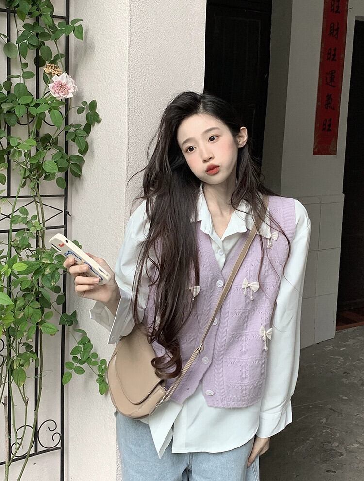 色:ピンクのベスト,パープルベスト,白いベスト,白のシャツ