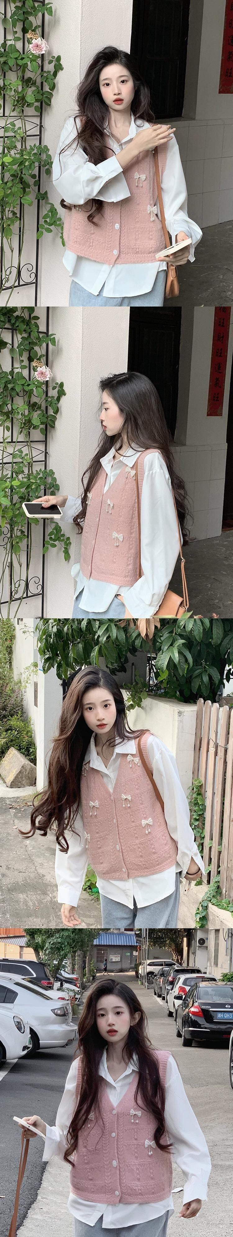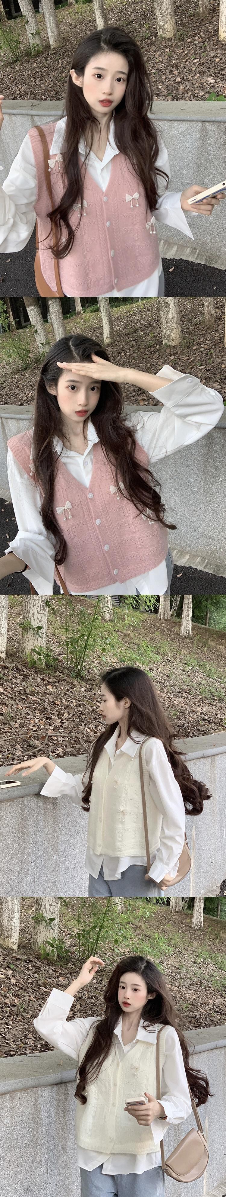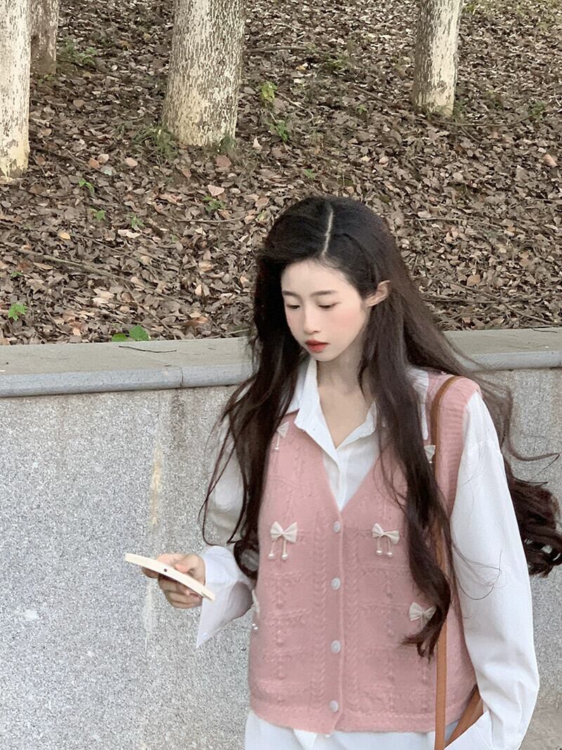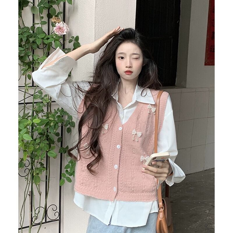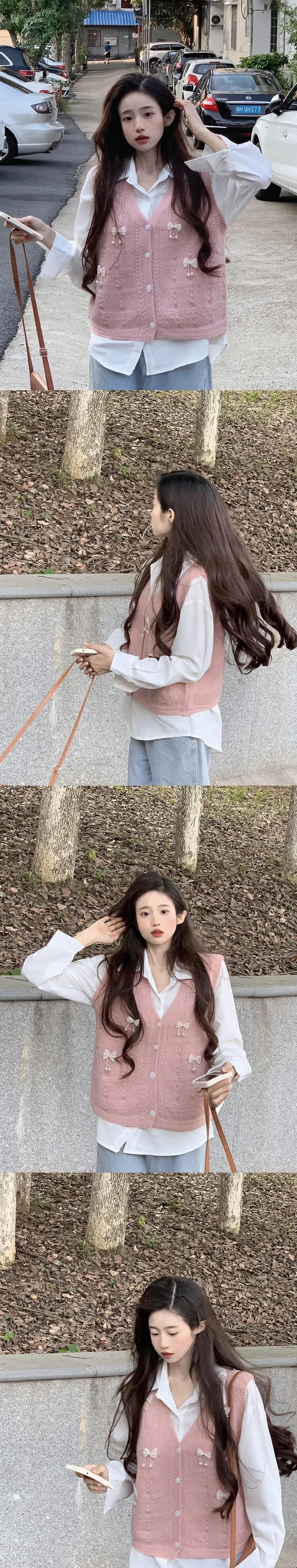 ピンクのノースリーブニットベストベスト女性秋と冬甘いルーズアウターショート V ネックカーディガンセータージャケット 大人ガーリー スウィート キュート カジュアル オータム 秋物 ウィンター 冬物 Vネック 7460084890364692 | framboise21