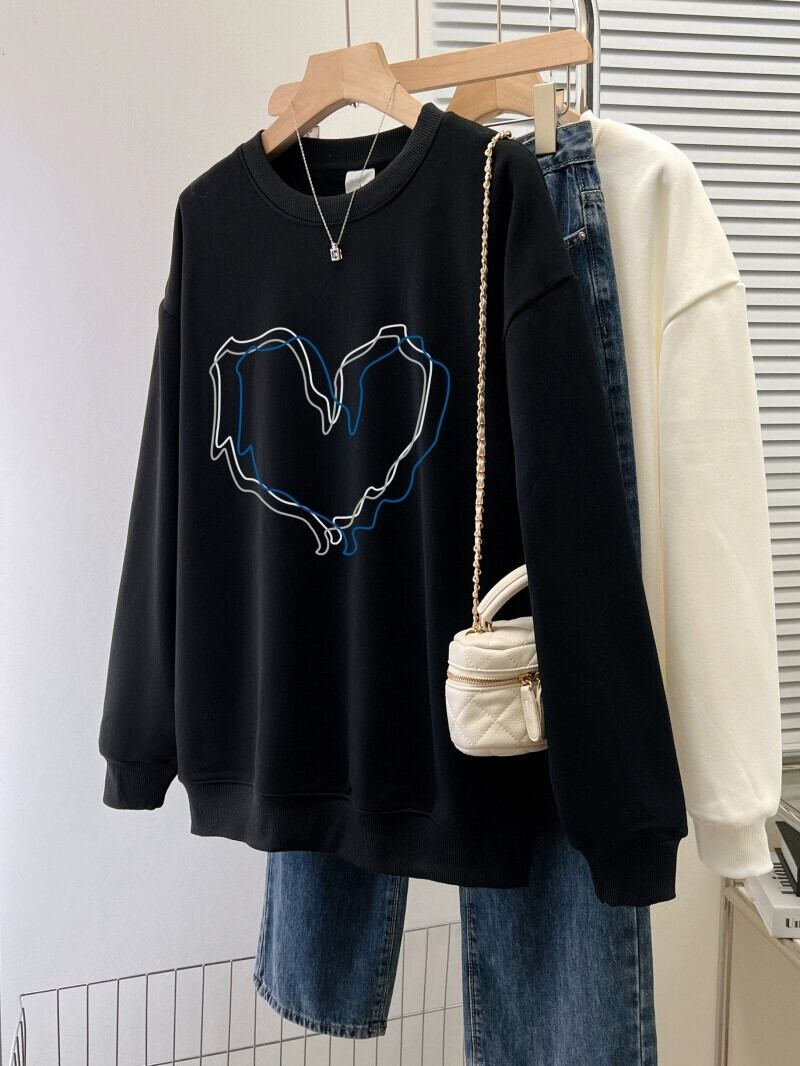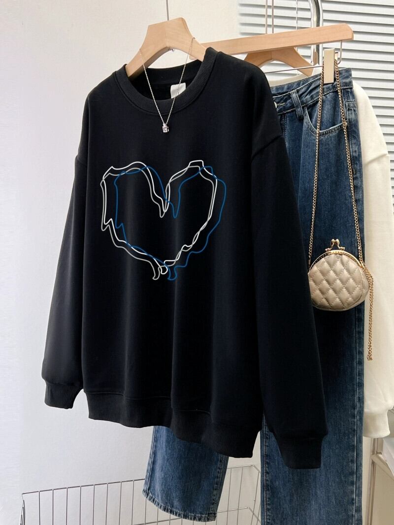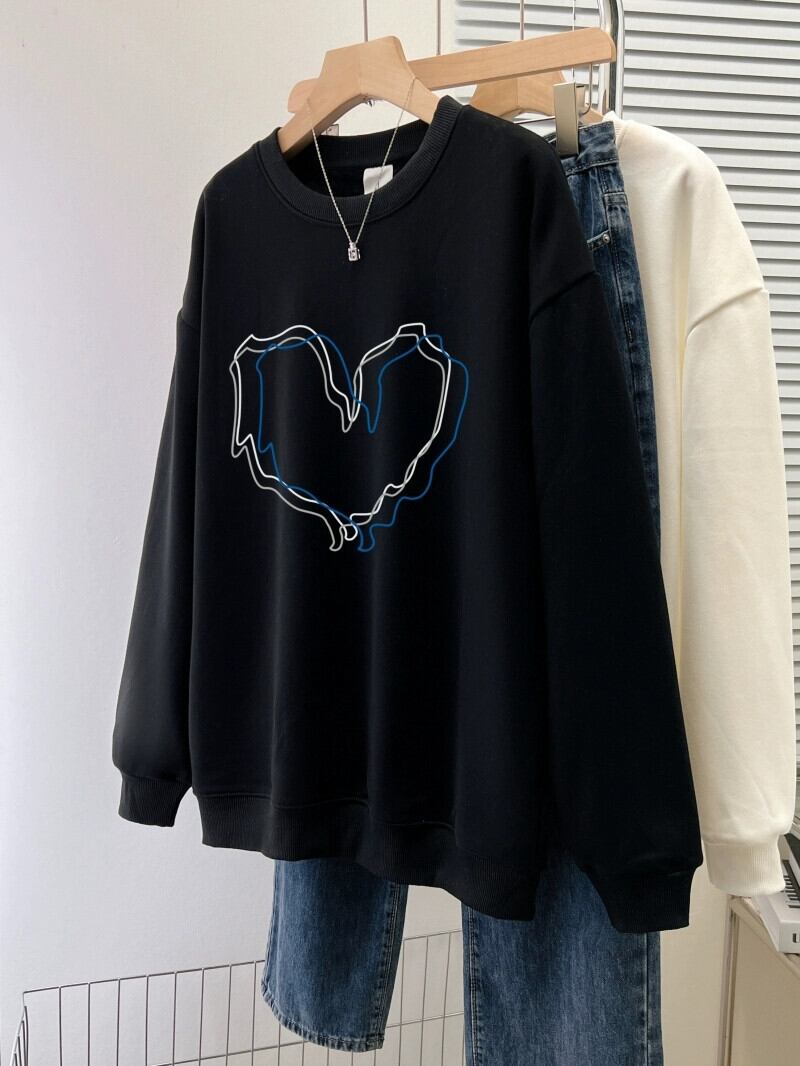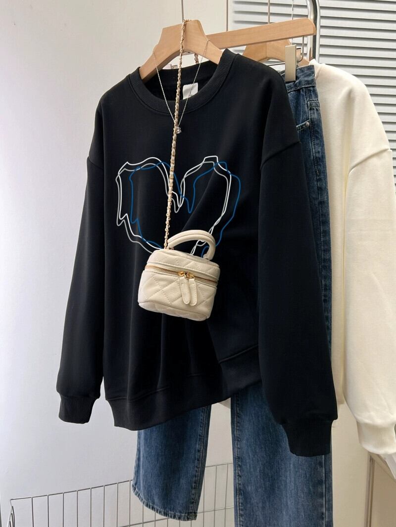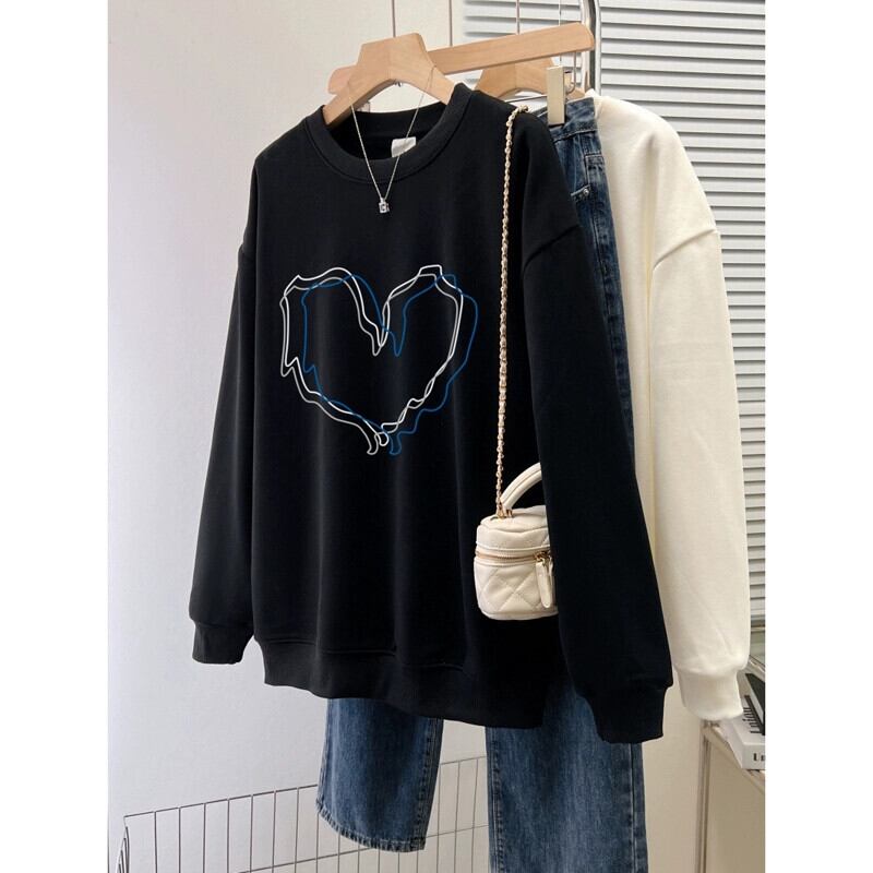 ミッドレングスのベルベットの厚みのあるスウェットシャツの女性の秋と冬のアメリカンルーズスタイル怠惰なスタイルのプリントプルオーバー長袖トップ ロング オータム 秋物 ウィンター 冬物 7460027129910552 | framboise21