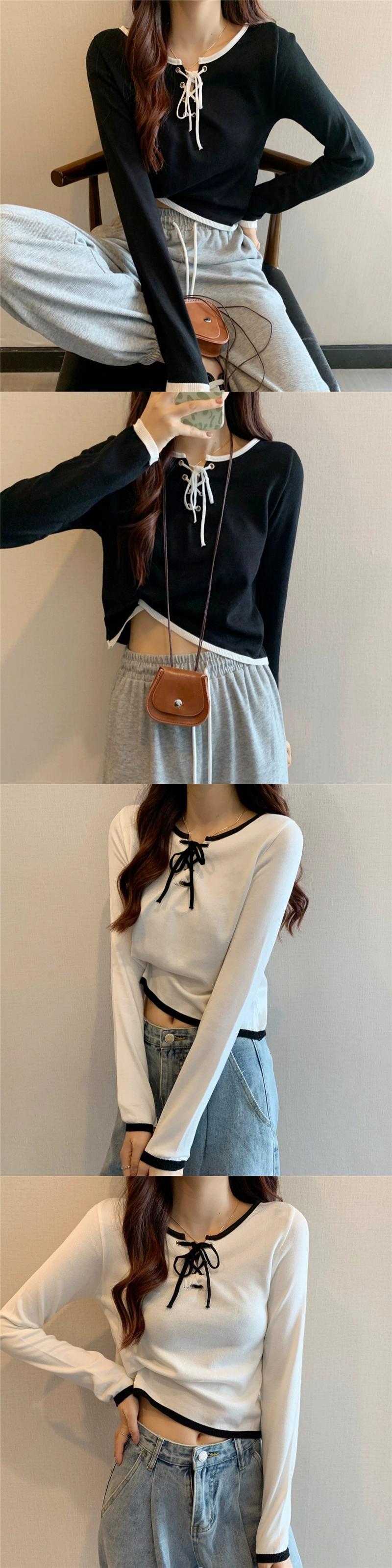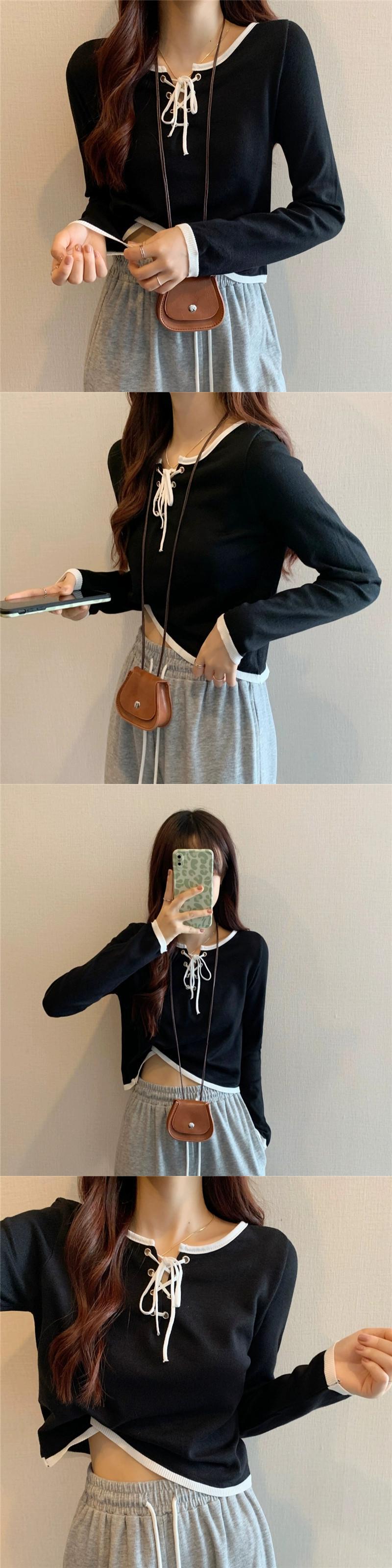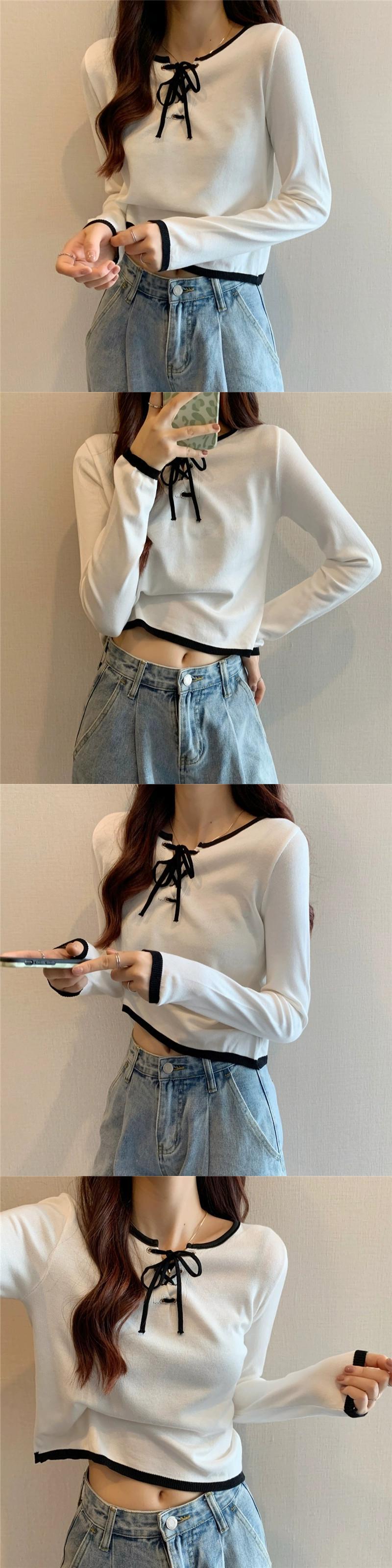 秋と冬のレースアップVネック長袖ボトリングシャツ女性、ファッショナブルで西洋風のデザイン、短いニットセーターとスリムフィット ショート ロング オータム 秋物 ウィンター 冬物 7460069197360339 | framboise21