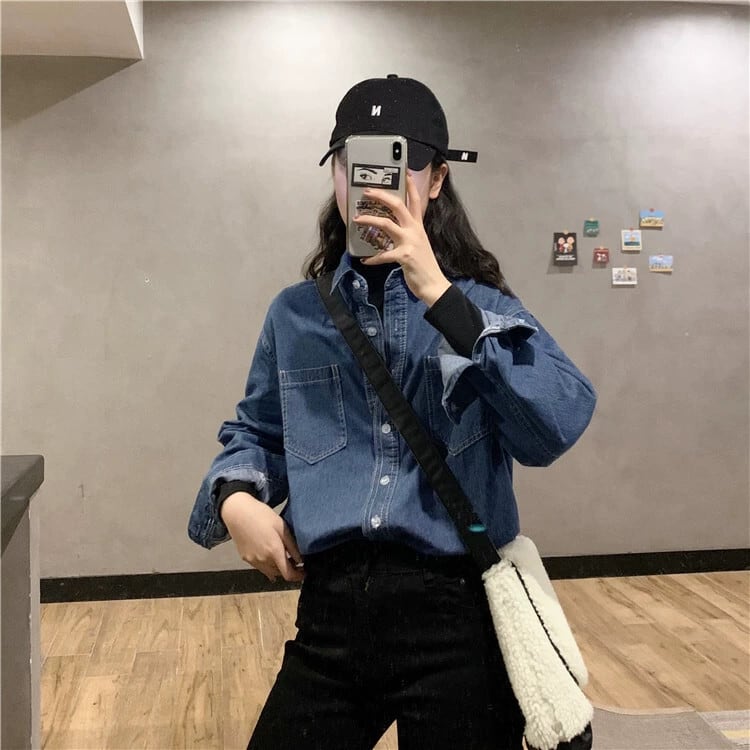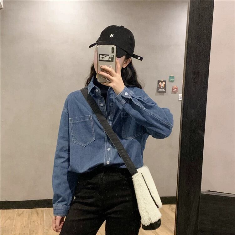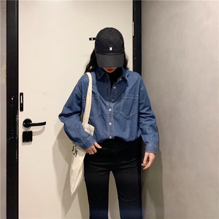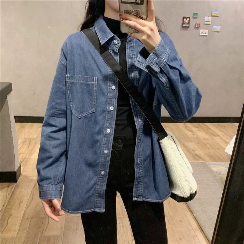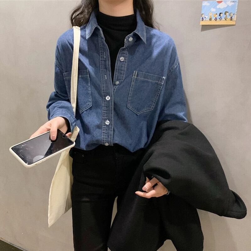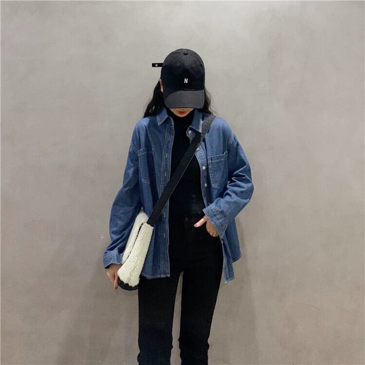 ミドル丈デニムジャケットの女性、2023春と秋の新しい香港スタイルのレトロなルーズカジュアル多用途長袖デニムジャケット ロング スプリング 春物 オータム 秋物 7460014261752520 | framboise21