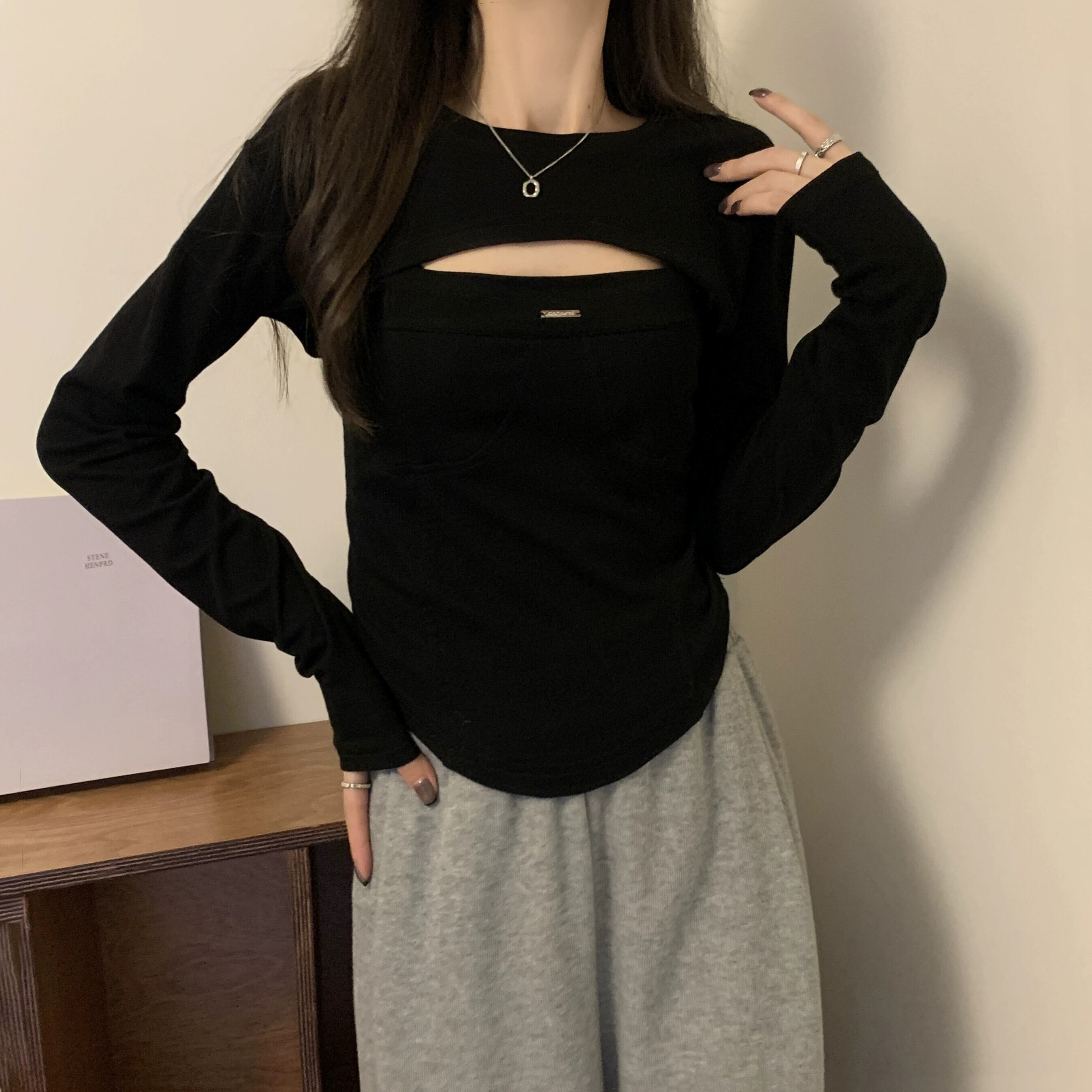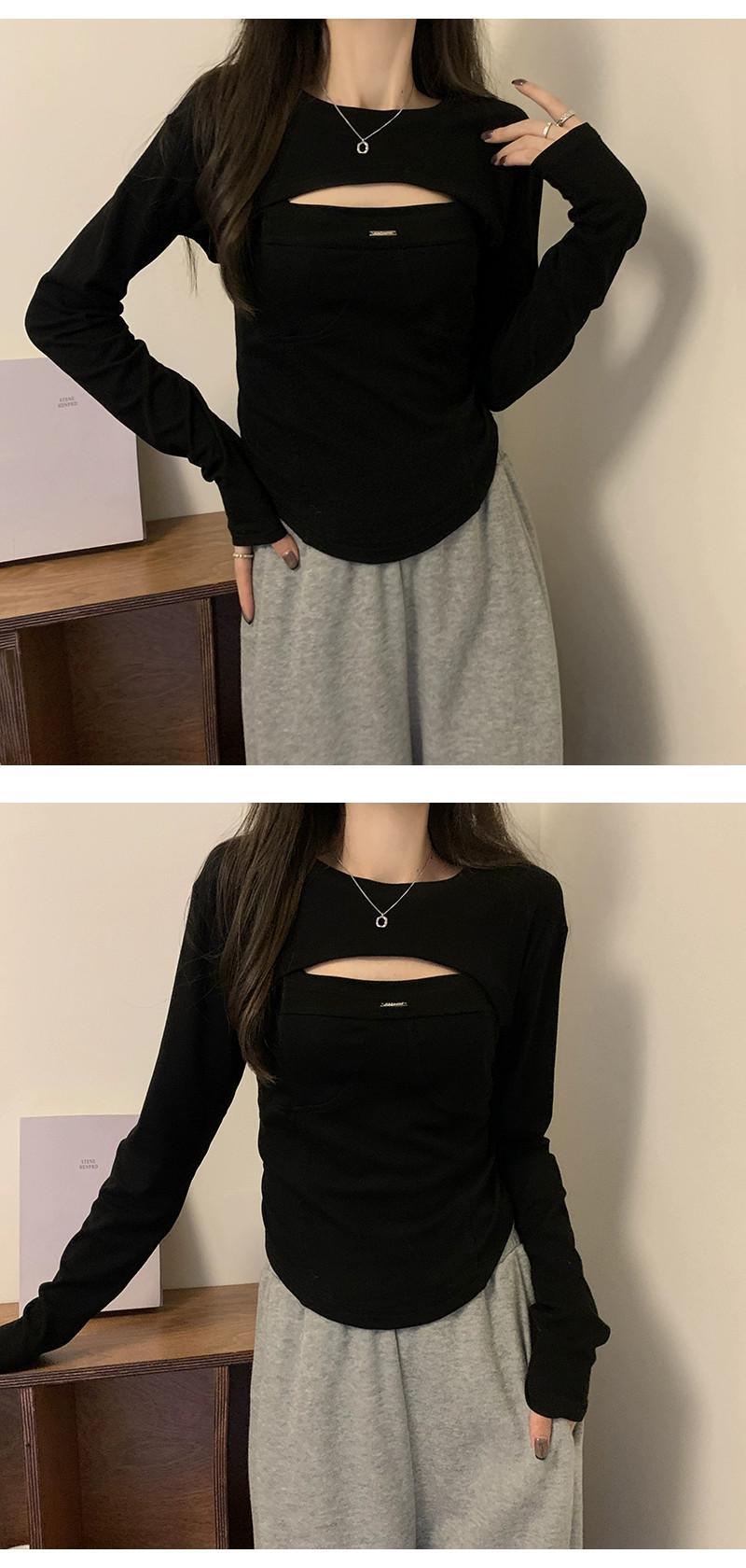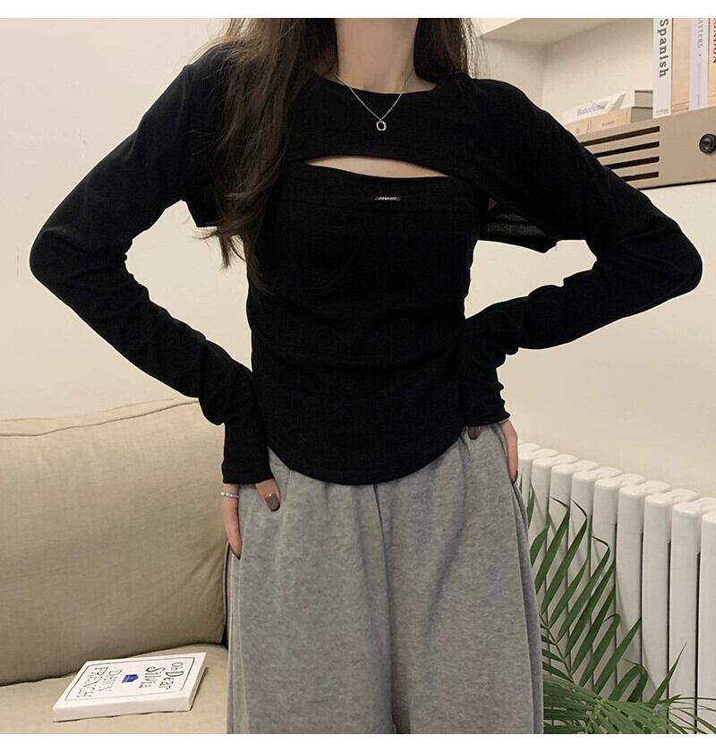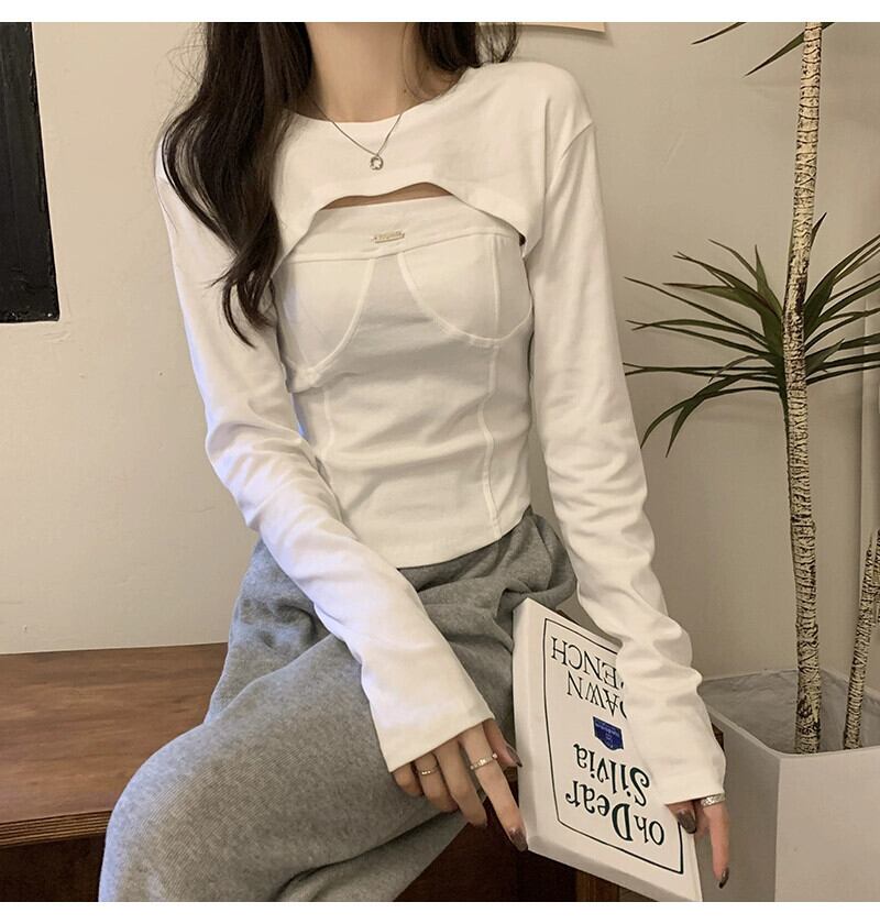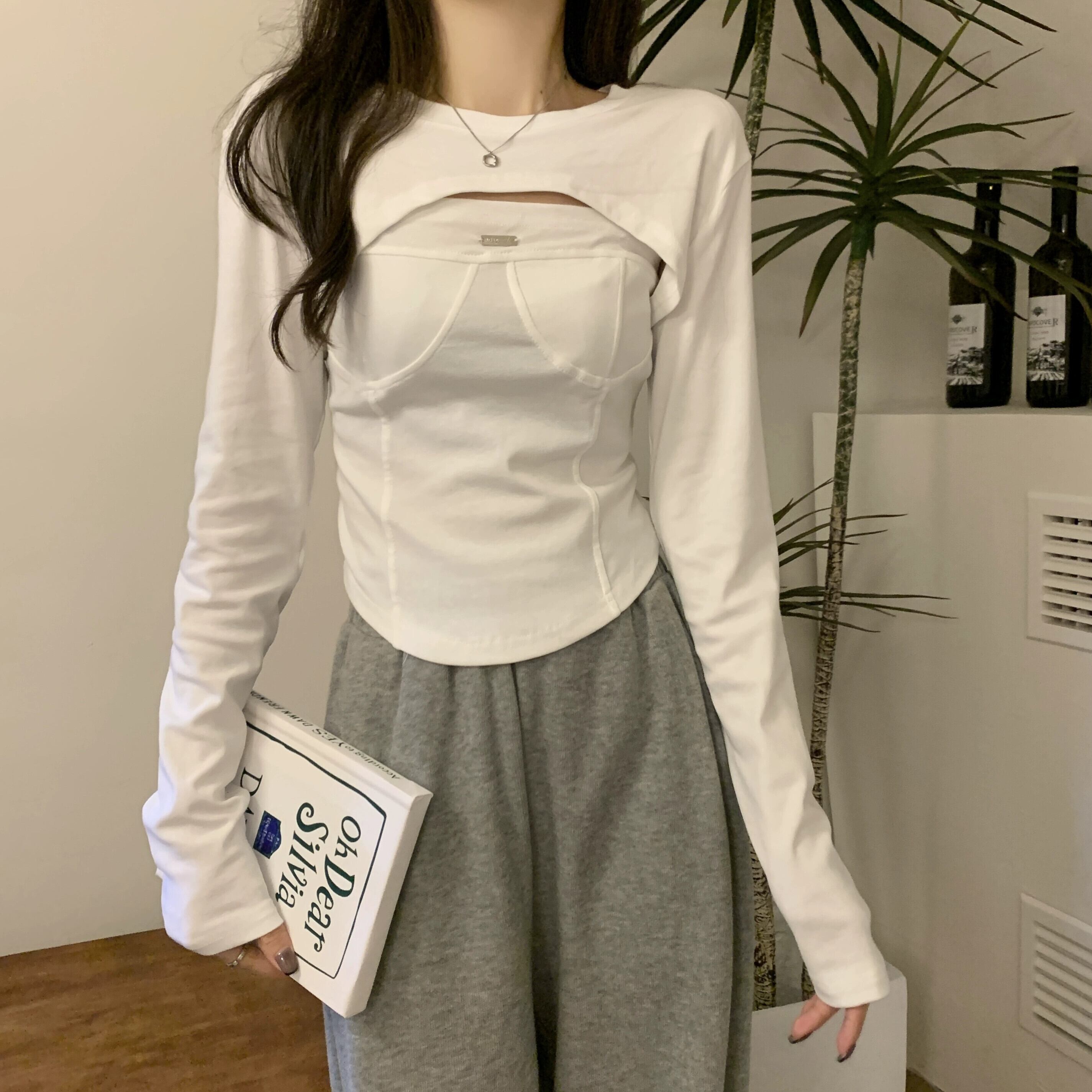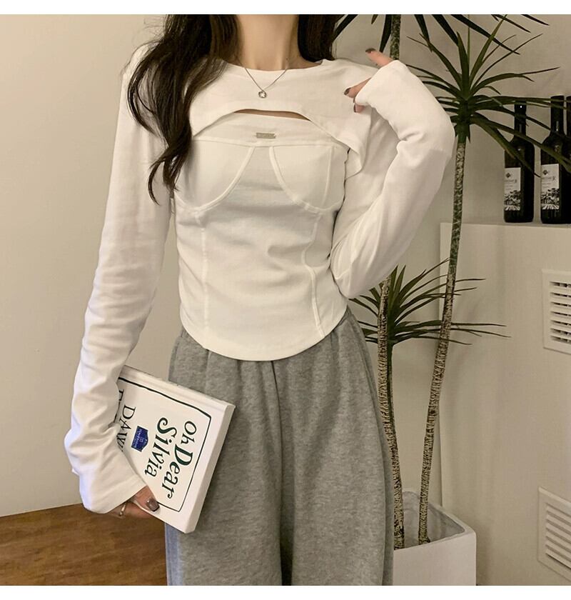 不規則なショート長袖トップスレディース、春と秋のデザイン、カーブした裾のスリムフィット、ボトムTシャツ2点セット ロング スプリング 春物 オータム 秋物 746005144345171 | framboise21