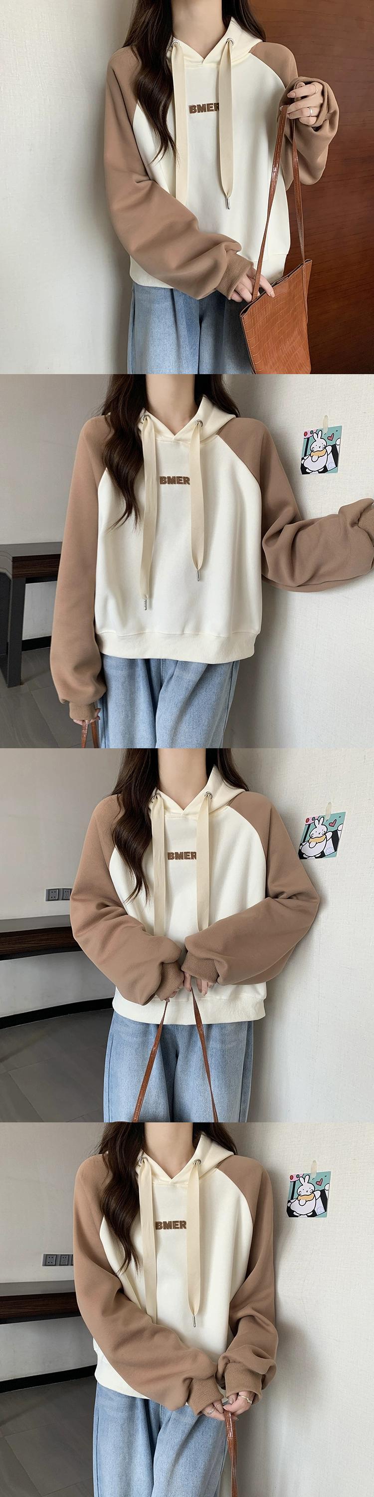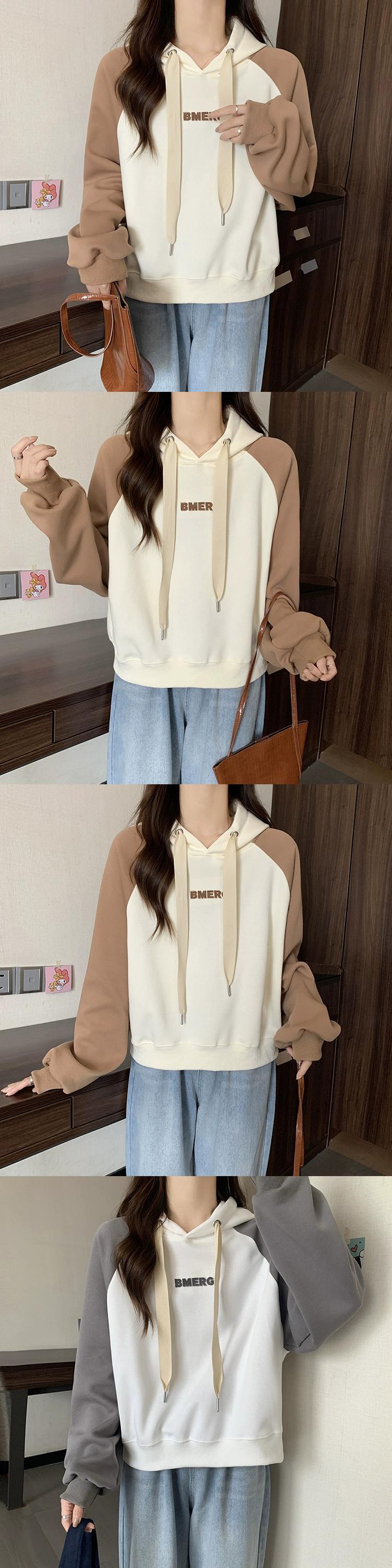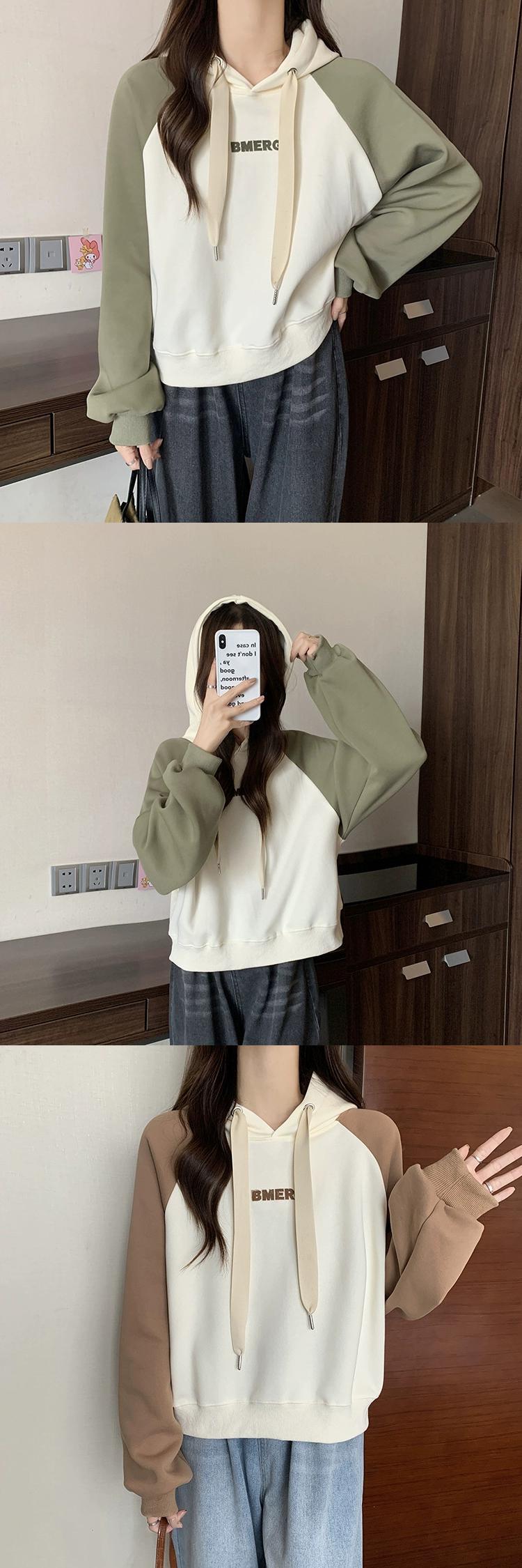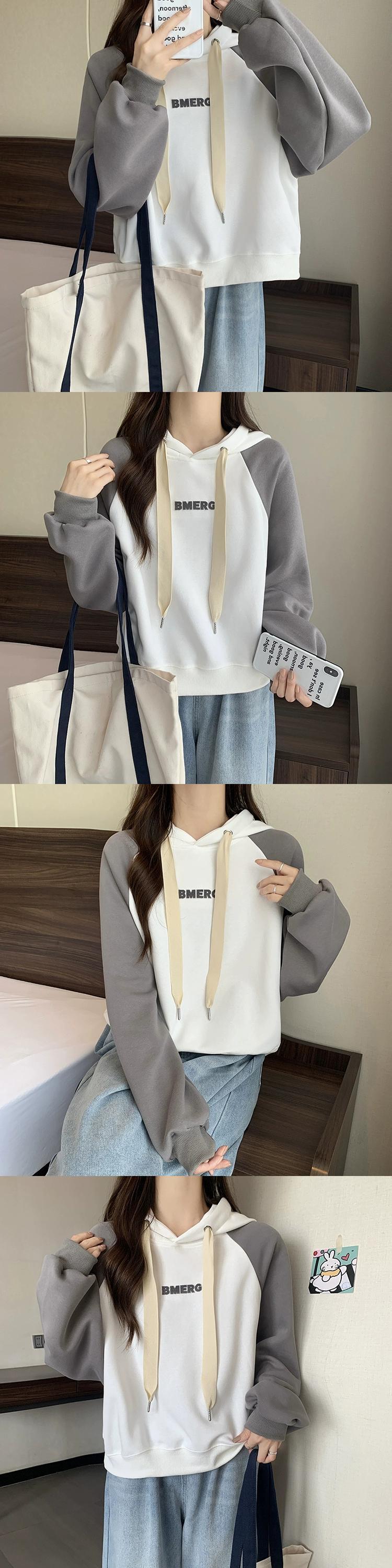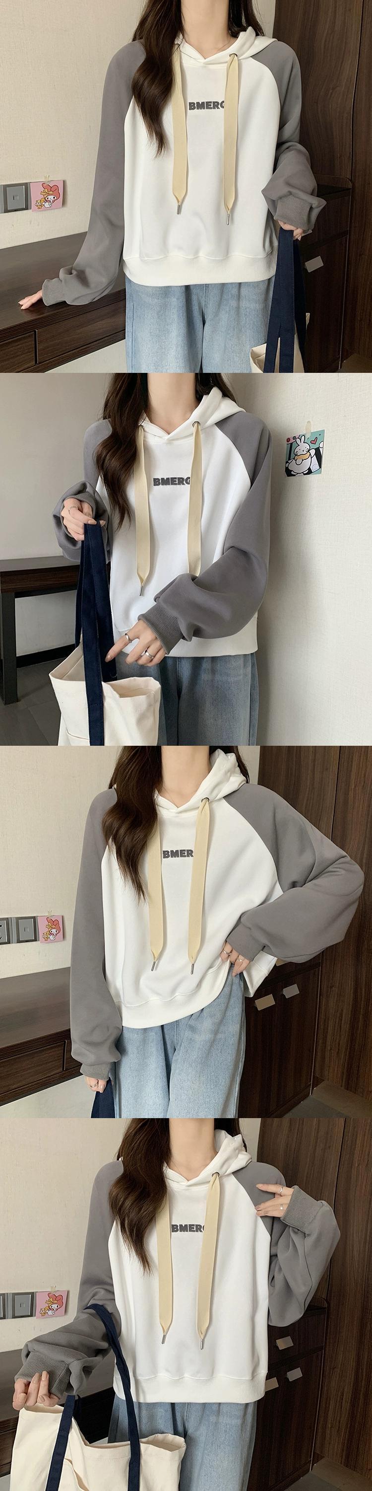 コントラストカラーのフード付きラグランスリーブスウェットシャツの女性の2023春、秋、冬の新しい人気のデザイン、ゆったりと多用途の長袖トップ ロング スプリング 春物 オータム 秋物 ウィンター 冬物 7460030129545440 | framboise21