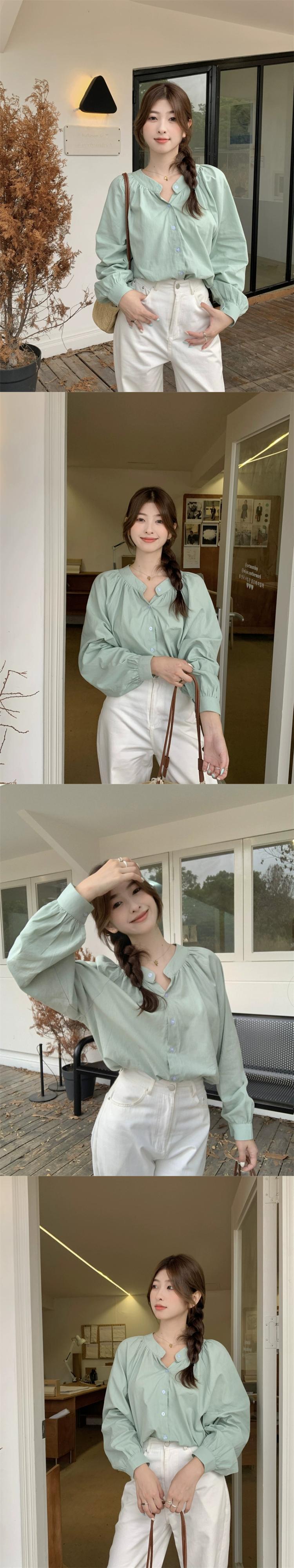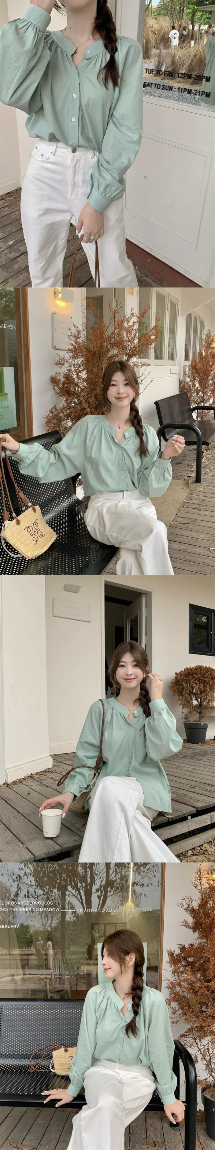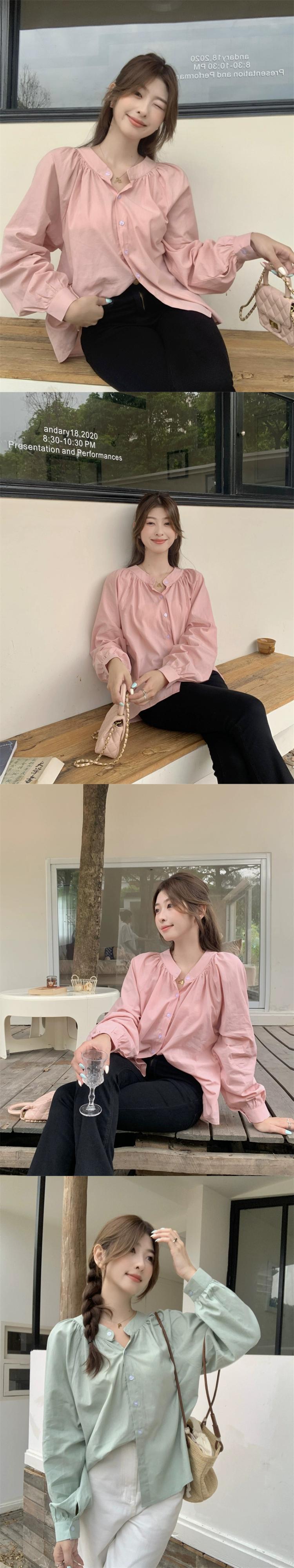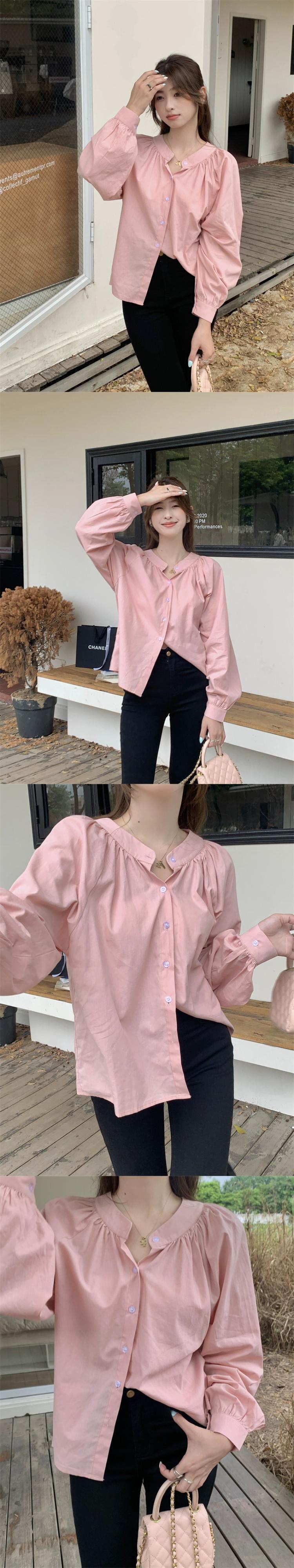 白いスタンドアップカラーランタンスリーブシャツレディース、春と秋のフレンチデザイン、ゆったりとした通勤用長袖トップ、ショートジャケット ロング ホワイト スプリング 春物 オータム 秋物 7460095996480739 | framboise21
