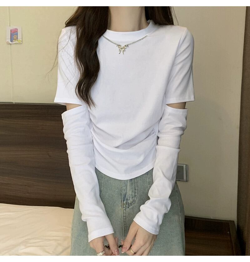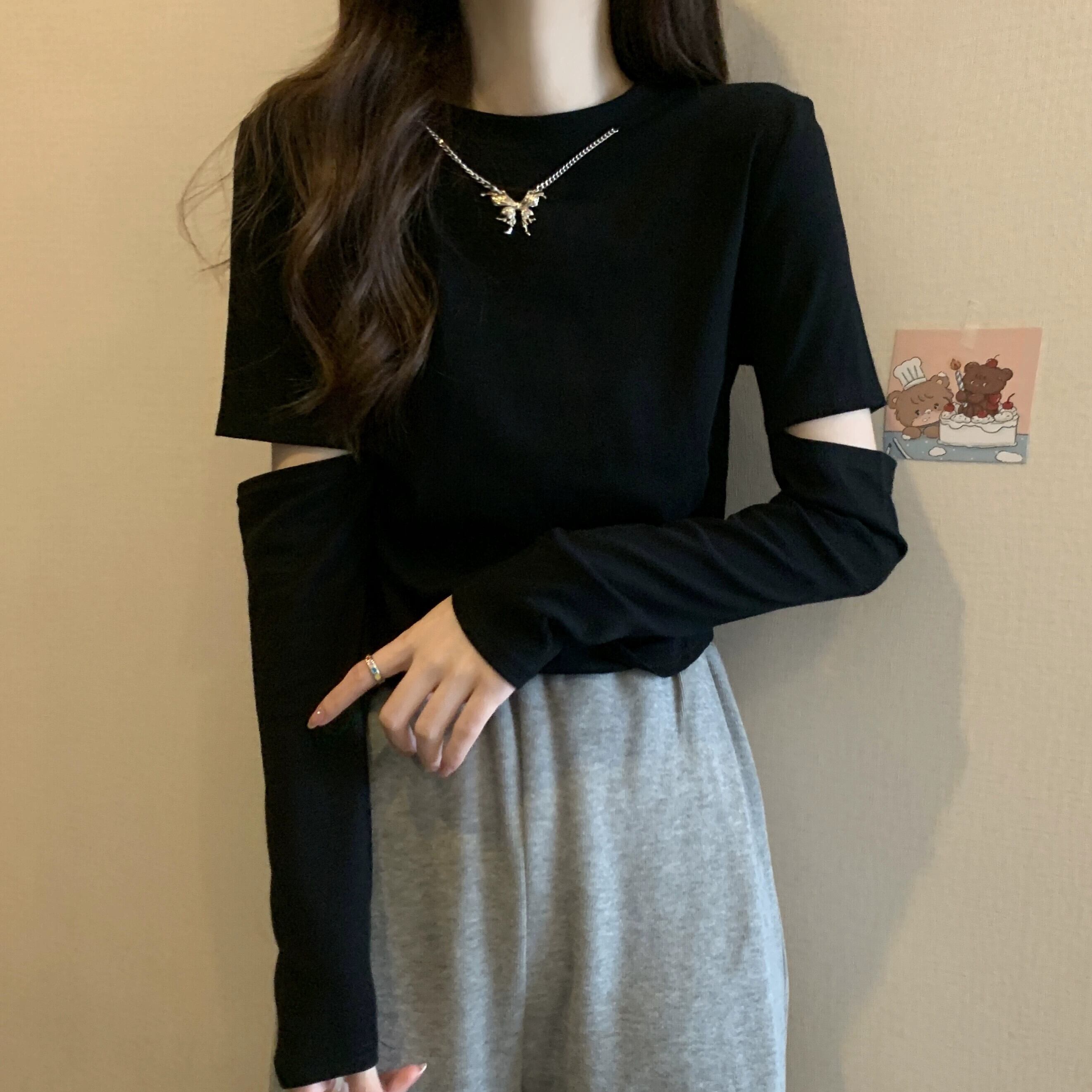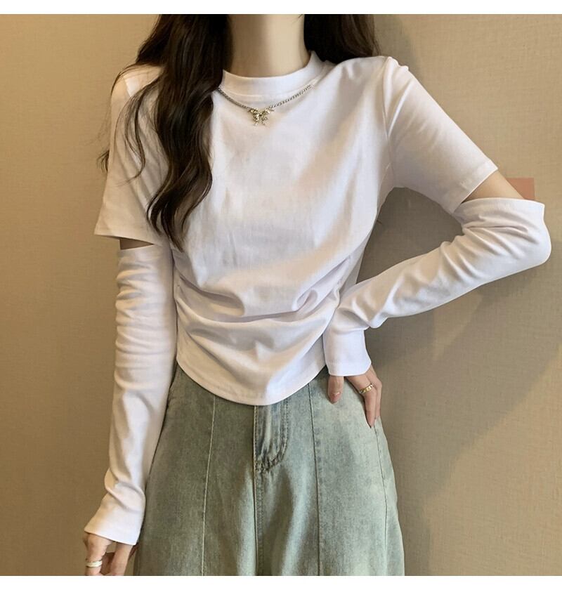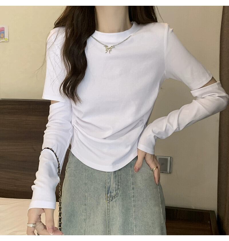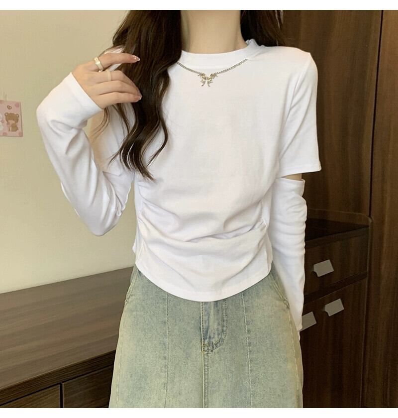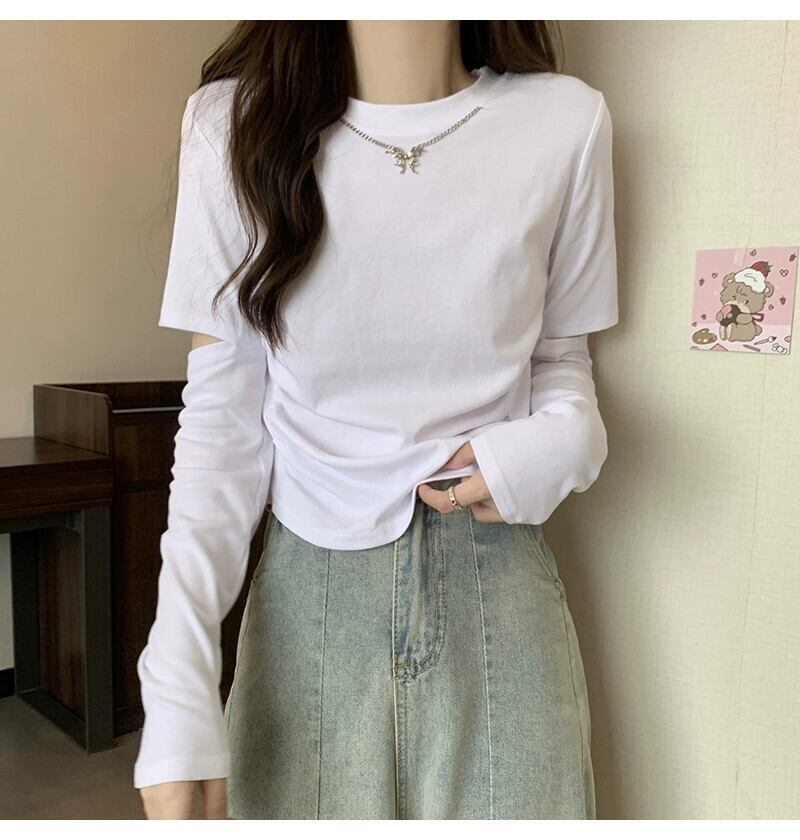 中空長袖ボトムトップ女性、春と秋のデザイン、洋風のインナー、不規則な短い純粋な綿のカットスリーブTシャツ ショート ロング コットン スプリング 春物 オータム 秋物 ピュア 7460096817675056 | framboise21