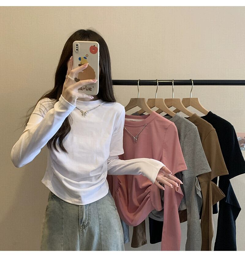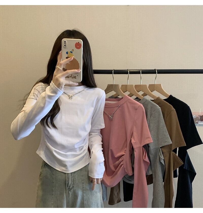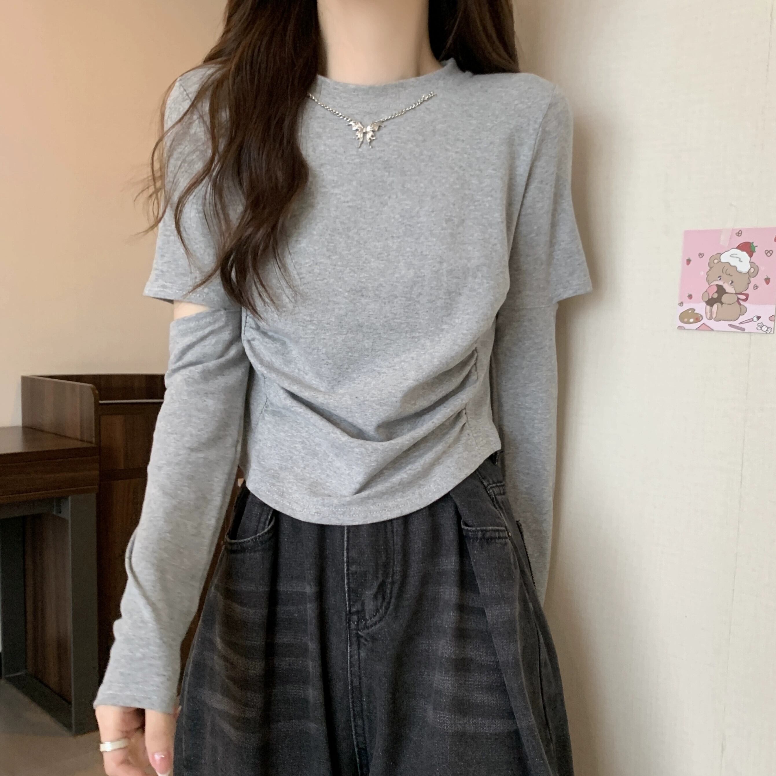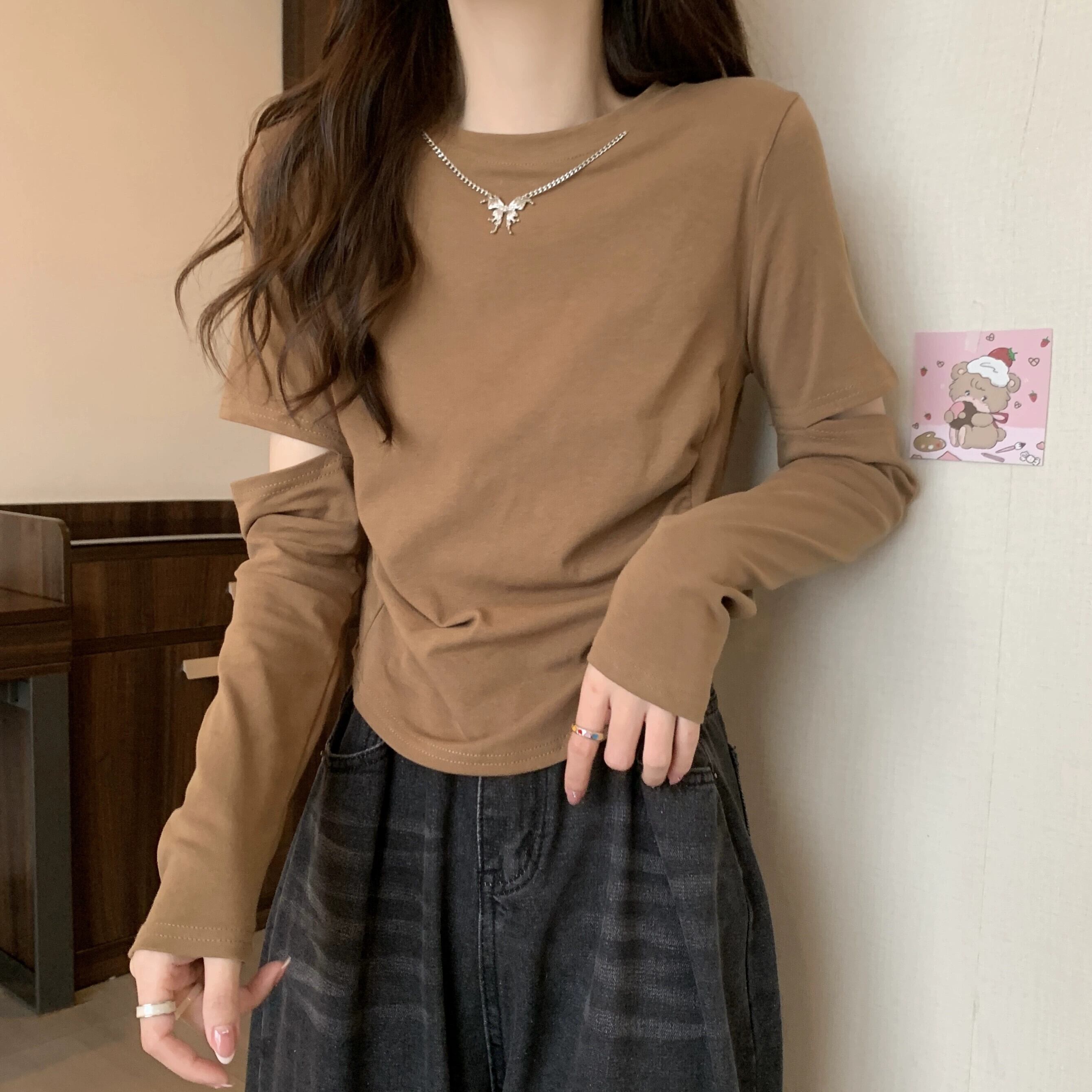 中空長袖ボトムトップ女性、春と秋のデザイン、洋風のインナー、不規則な短い純粋な綿のカットスリーブTシャツ ショート ロング コットン スプリング 春物 オータム 秋物 ピュア 7460096817675056 | framboise21