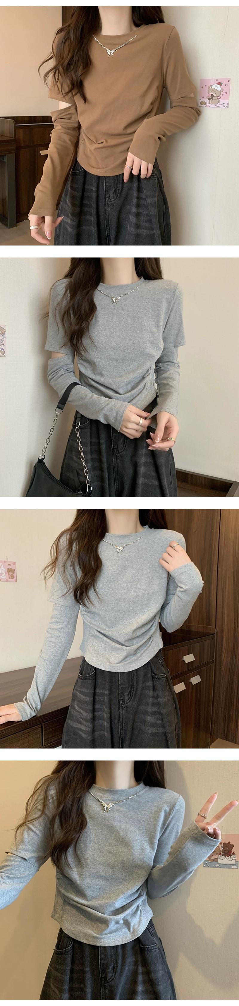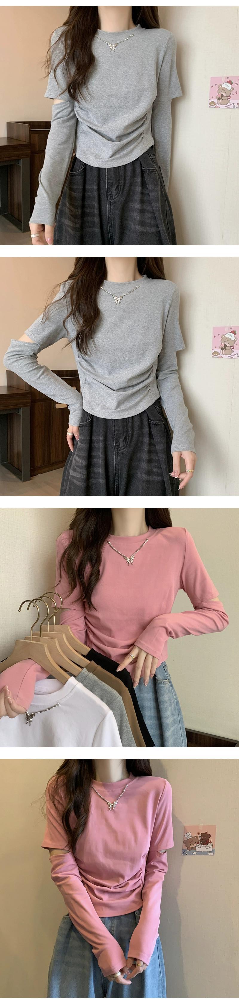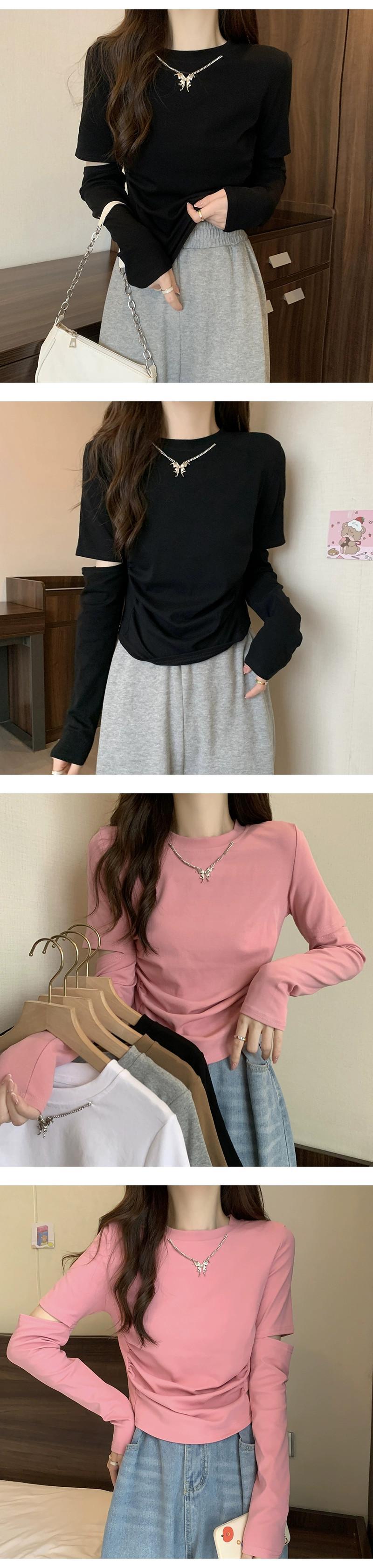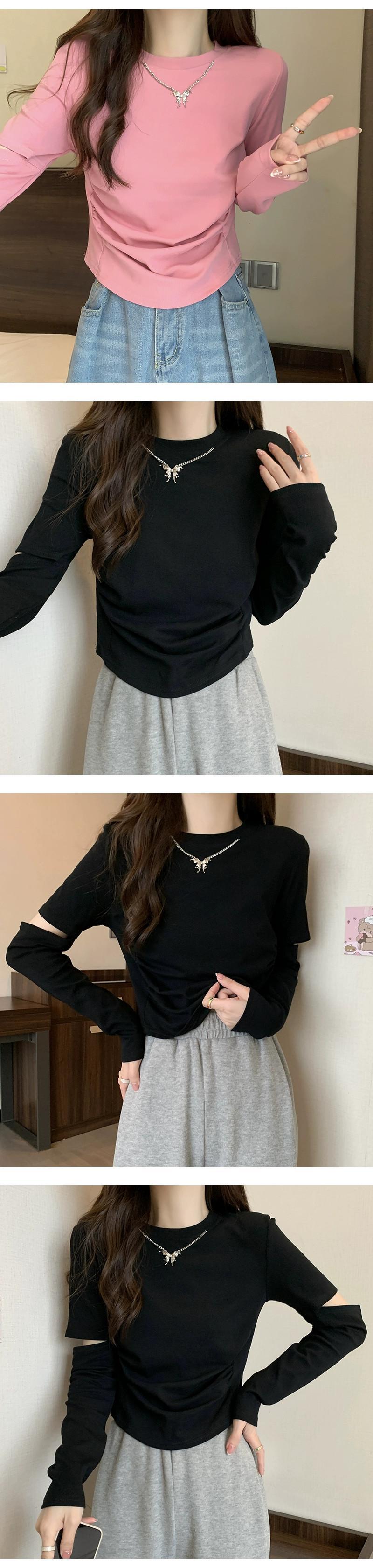 中空長袖ボトムトップ女性、春と秋のデザイン、洋風のインナー、不規則な短い純粋な綿のカットスリーブTシャツ ショート ロング コットン スプリング 春物 オータム 秋物 ピュア 7460096817675056 | framboise21