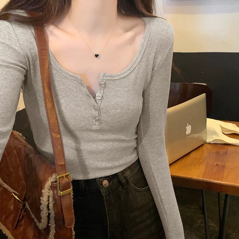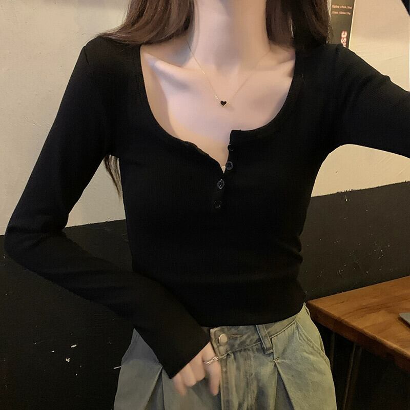 秋と冬の赤い長袖ボトムシャツの女性、ハイエンドの鎖骨が露出したスクエアネックトップ、ファッショナブルでスリムフィット、純綿のTシャツと組み合わせています ロング レッド コットン オータム 秋物 ウィンター 冬物 ピュア スクウェア 746002512832482 | framboise21