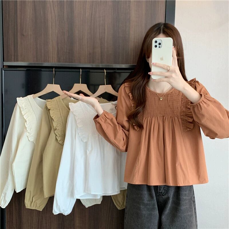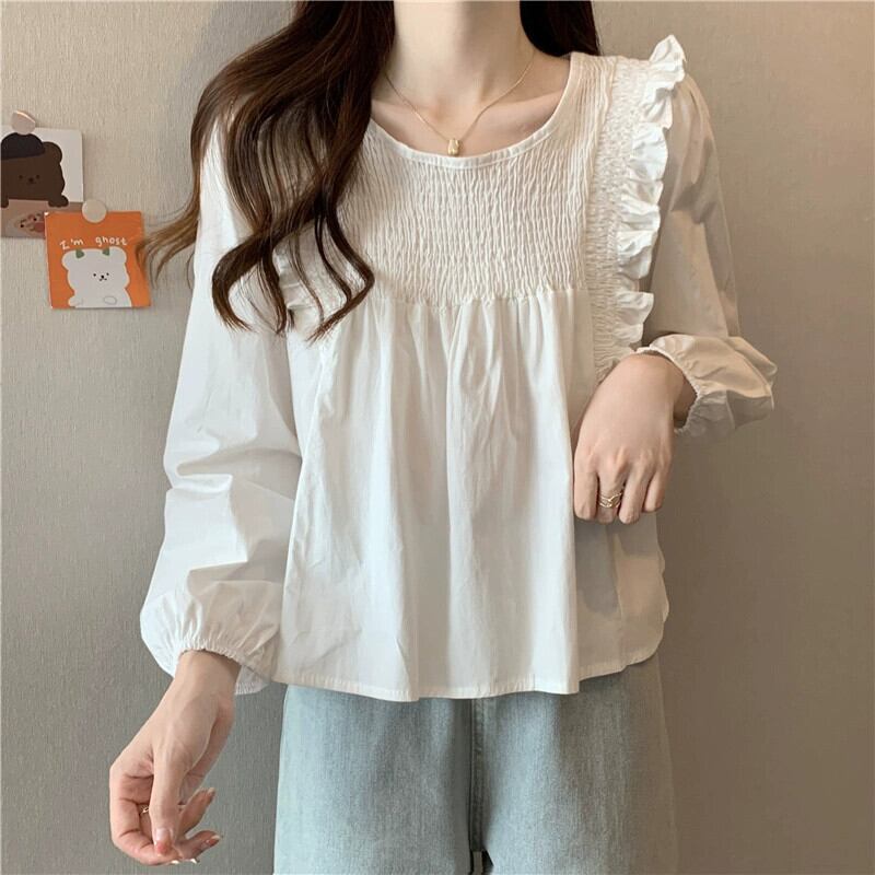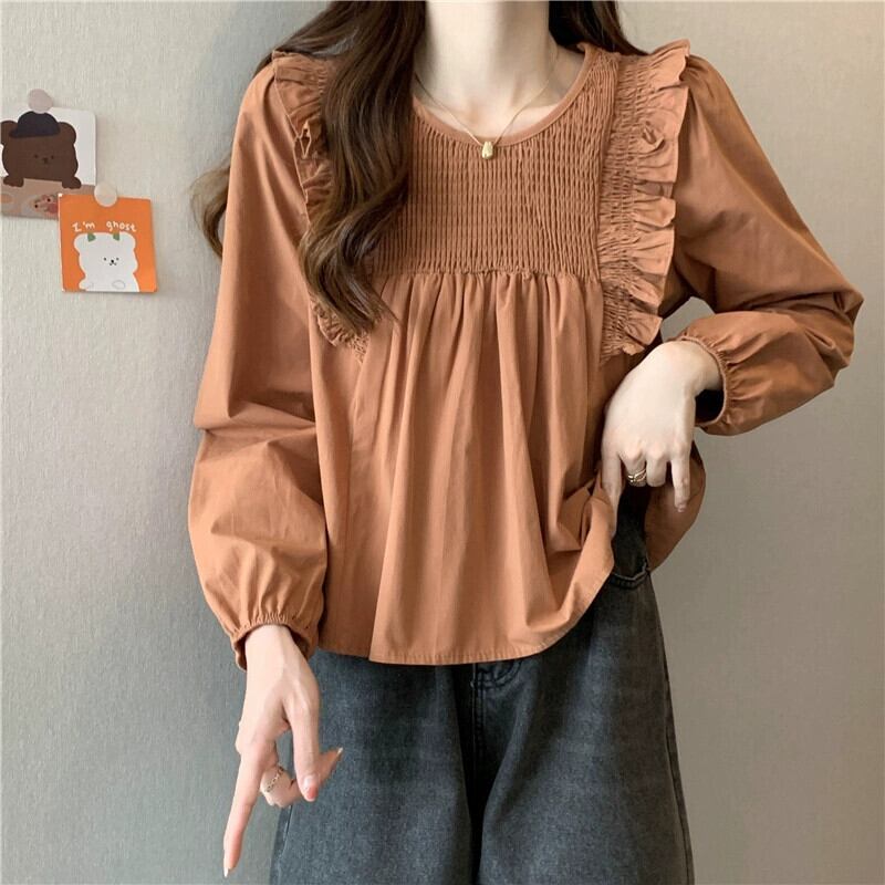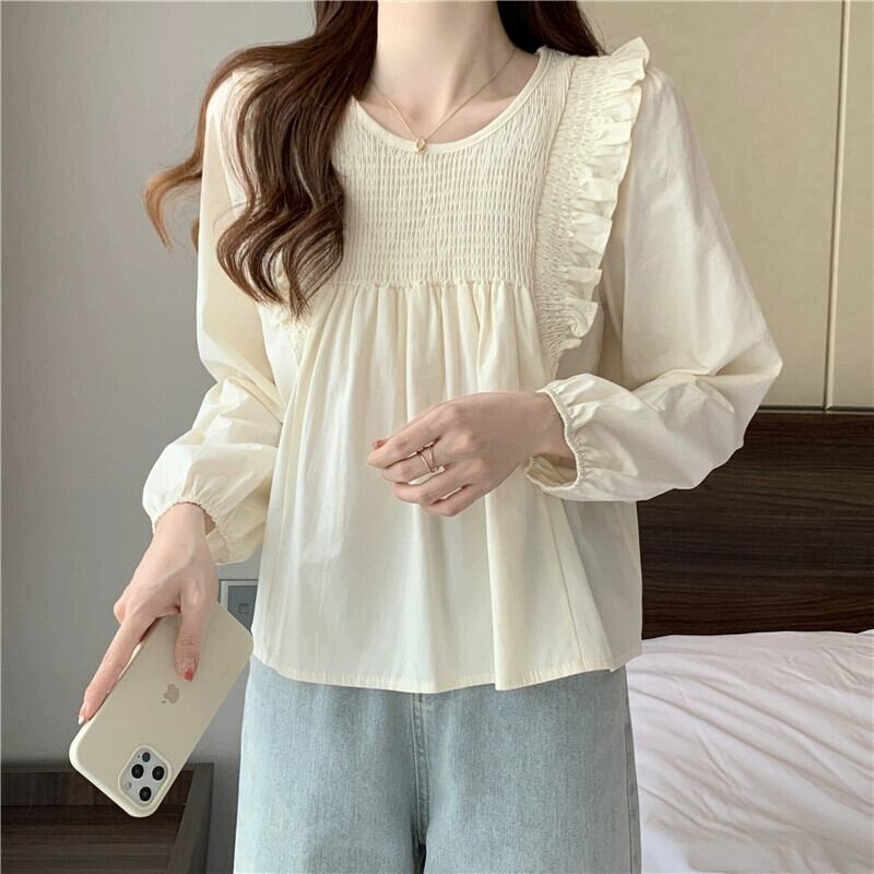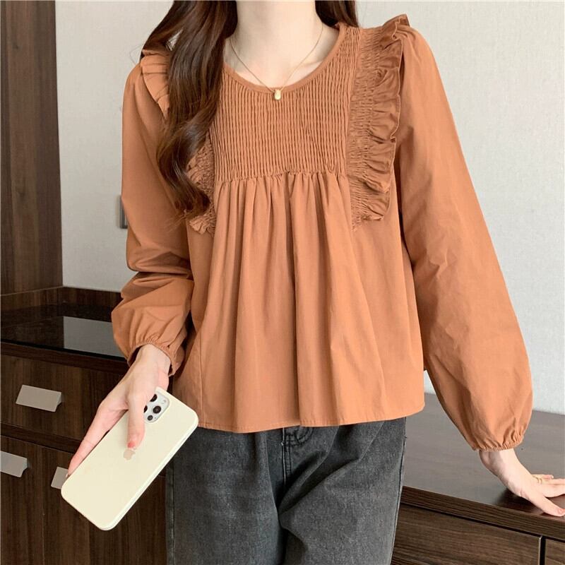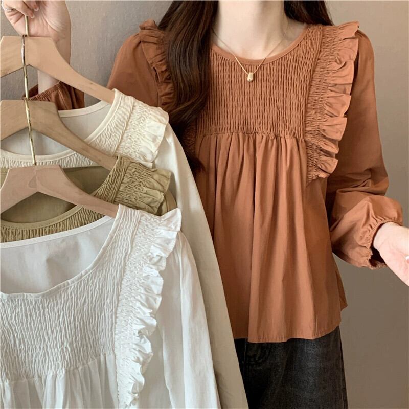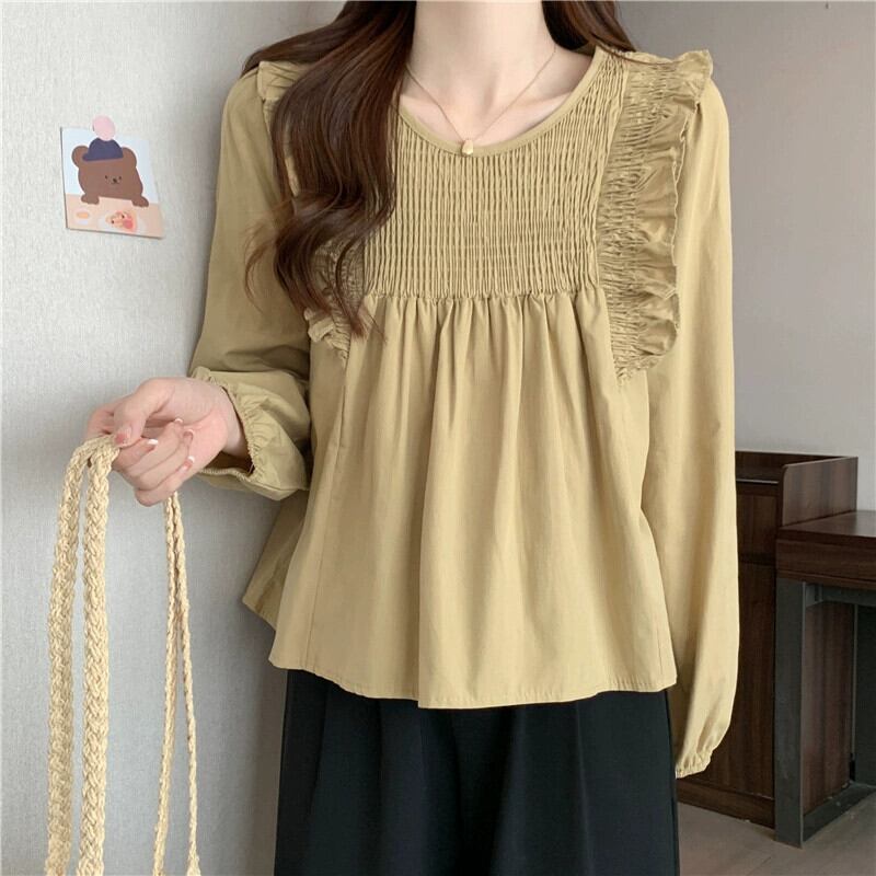 スプライスフリルシャツの女性の2023年春と秋の新しいファッションデザイン、ルーズで多用途なプリーツ長袖トップ ロング スプリング 春物 オータム 秋物 7460085242675395 | framboise21