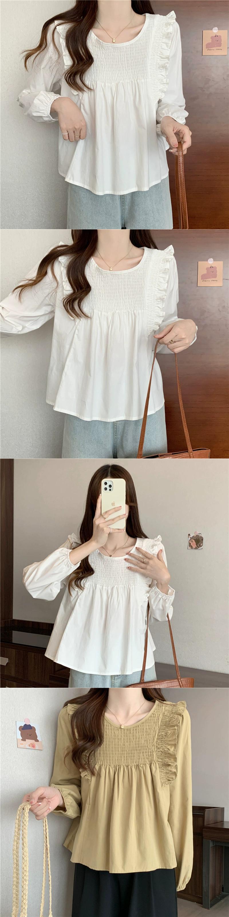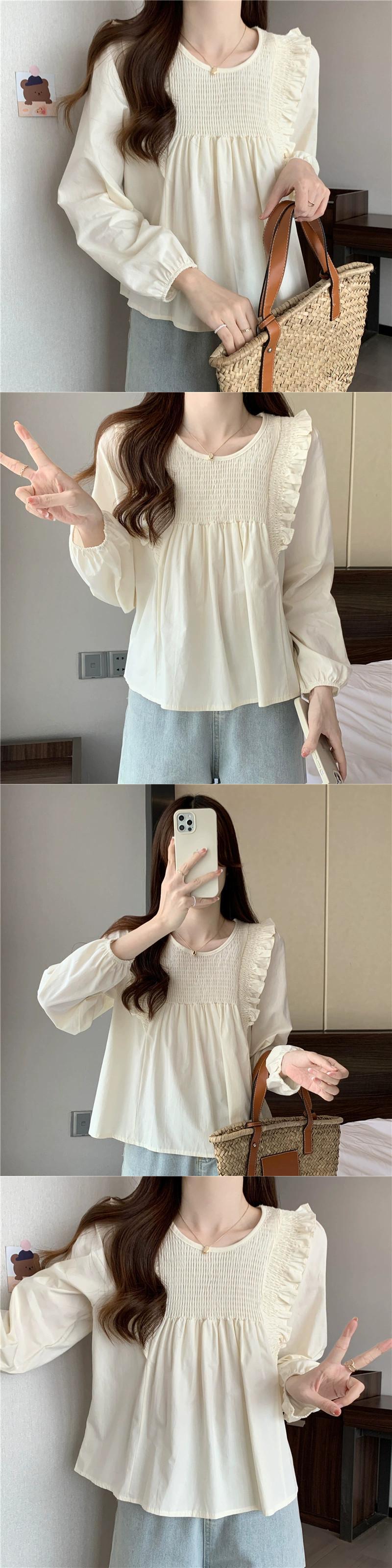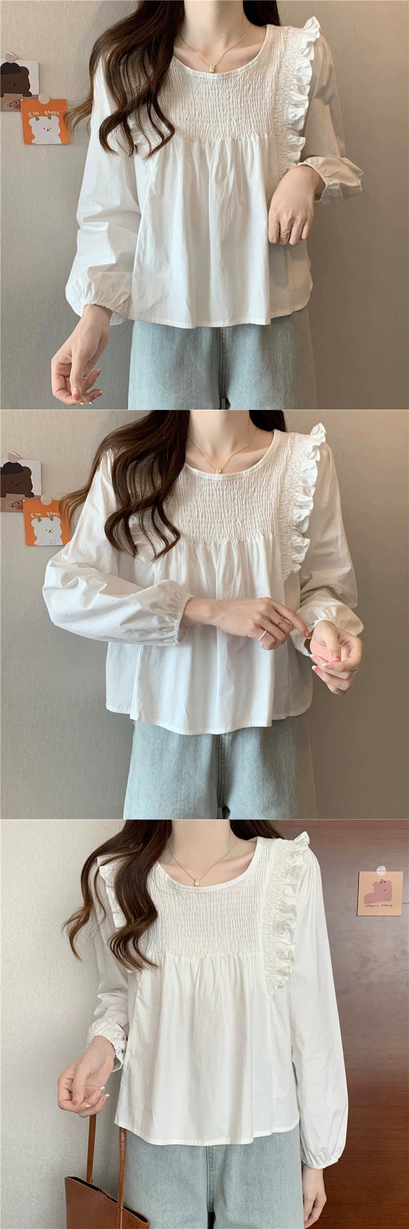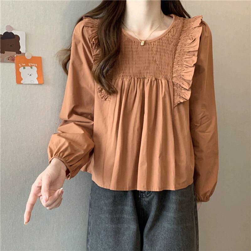 スプライスフリルシャツの女性の2023年春と秋の新しいファッションデザイン、ルーズで多用途なプリーツ長袖トップ ロング スプリング 春物 オータム 秋物 7460085242675395 | framboise21
