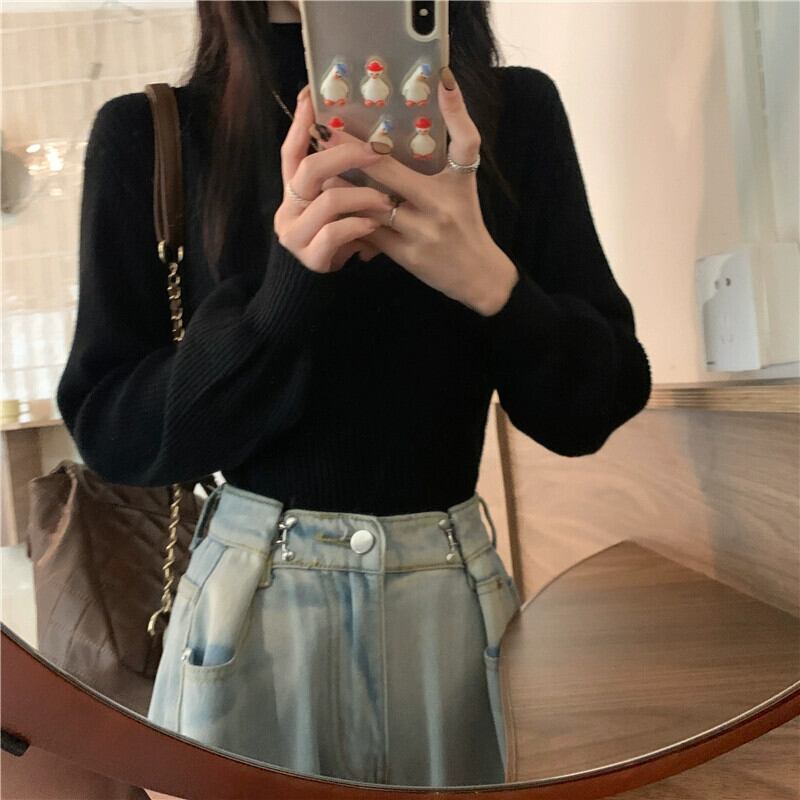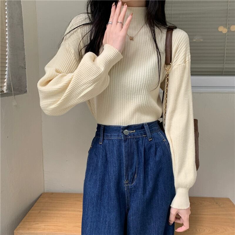 秋と冬のブルゴーニュのハーフタートルネックボトリングシャツの女性、スリムな長袖ニットセーターを備えたレトロ、ハイエンド、西洋スタイルのインテリア ロング オータム 秋物 ウィンター 冬物 7460070863409574 | framboise21