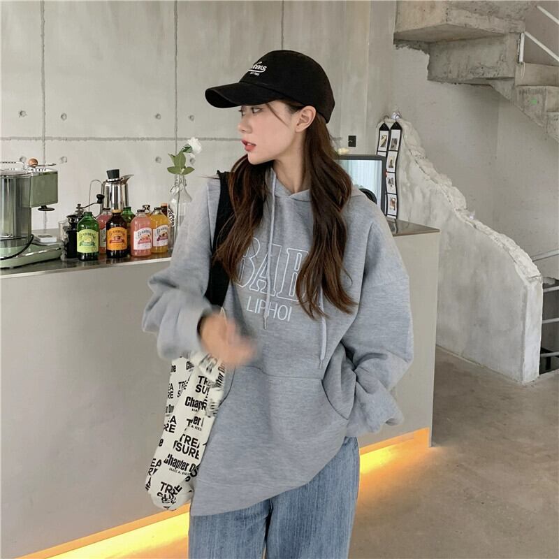 オーバーサイズフード付きスウェットシャツ女性 2023 新作人気春と秋のデザインゆるいカジュアルなミドル丈コート スプリング 春物 オータム 秋物 7460093469074986 | framboise21