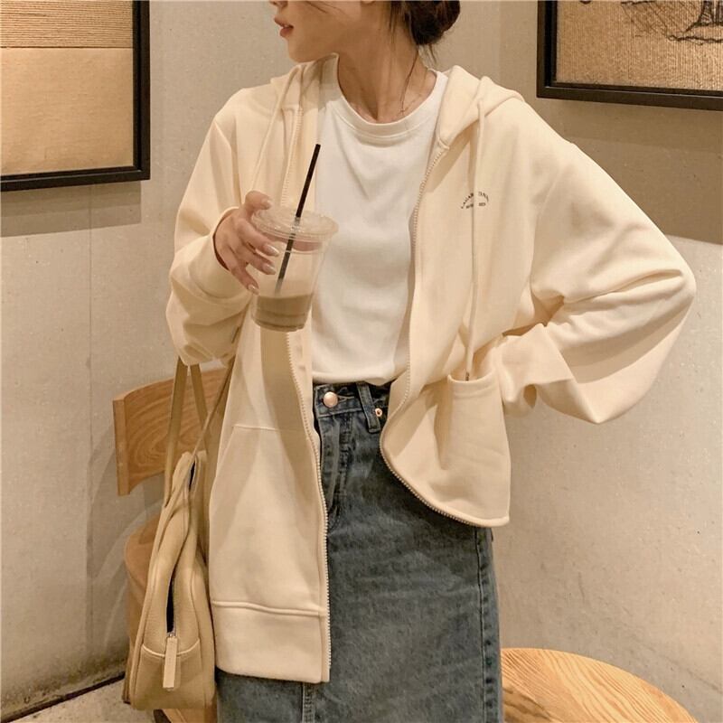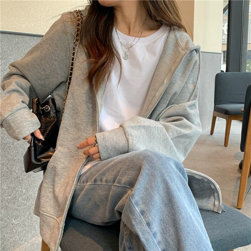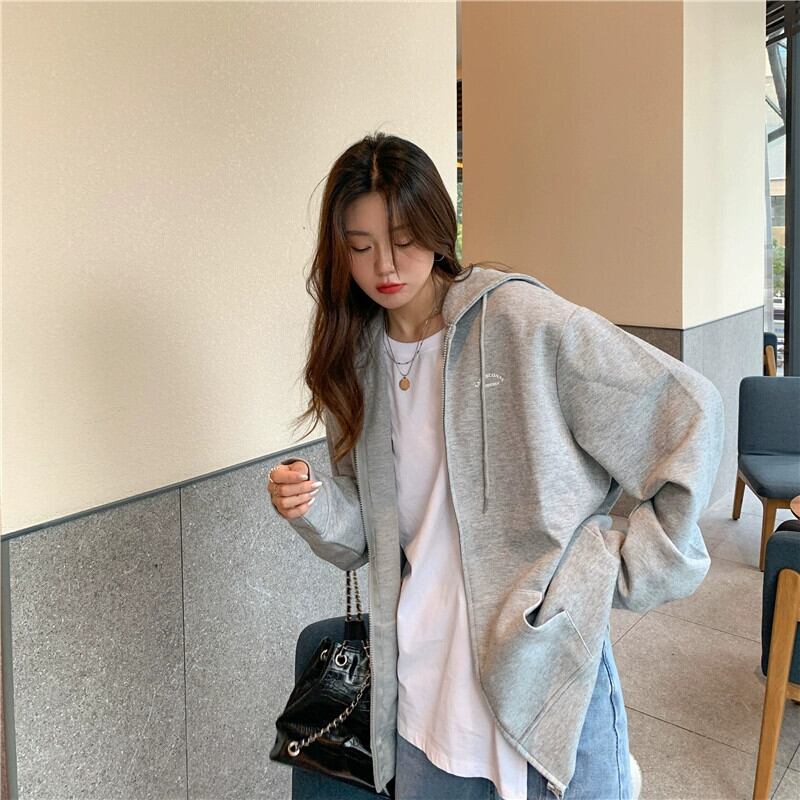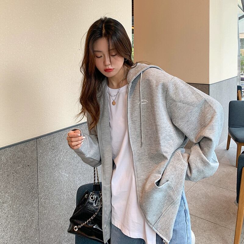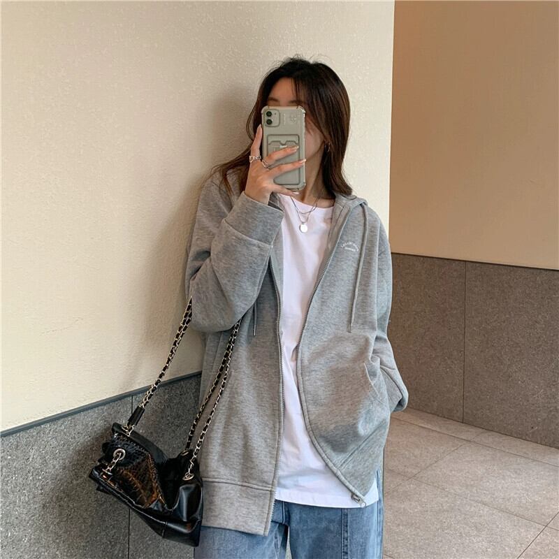 ミッドレングスのフード付きスウェットシャツの女性、春と秋のスタイルのルーズなBF怠惰なスタイルのデザインのニッチな多目的ジッパージャケット スプリング 春物 オータム 秋物 7460031215369275 | framboise21