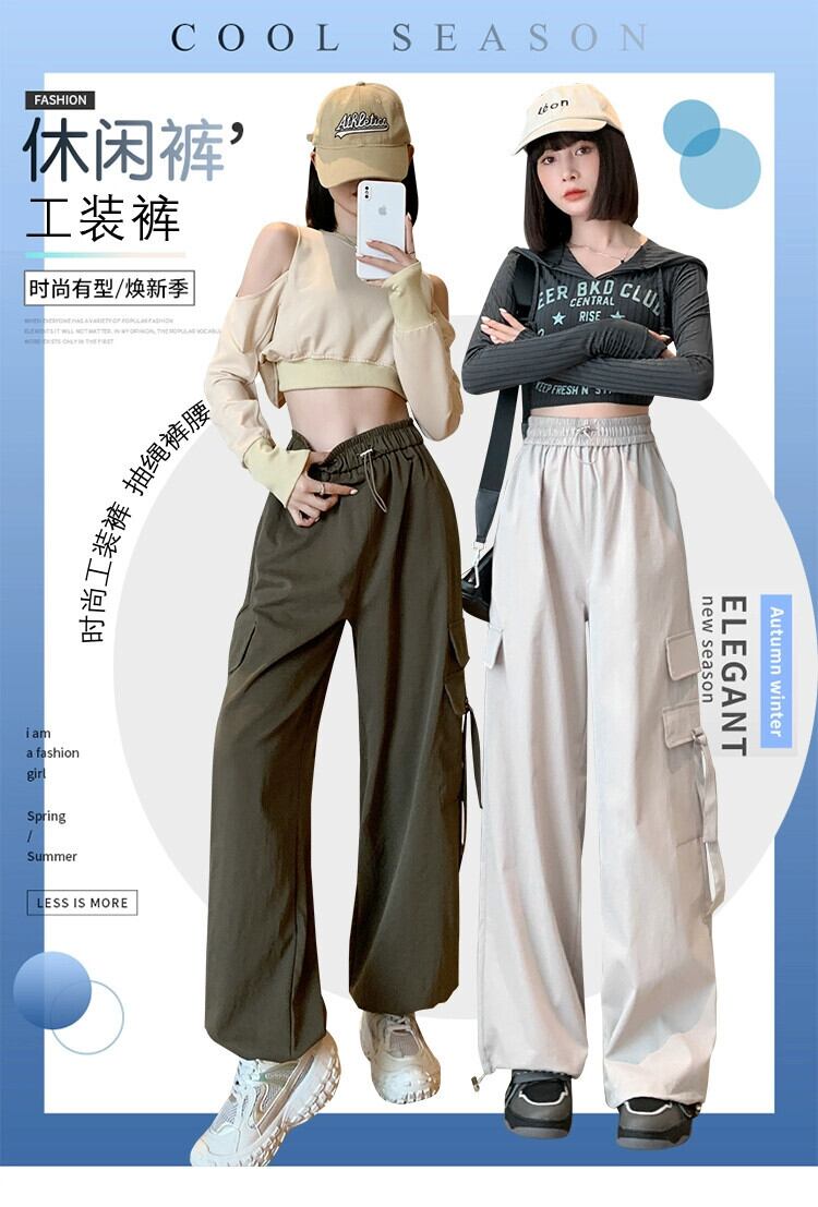 アメリカンスタイルの足首結びオーバーオールレディース、2023年春秋の新作スポーツワイドレッグパンツ、スリム、ハイウエスト、カジュアルストレートパンツ、トレンディ スプリング 春物 オータム 秋物 7460035458645306 | framboise21