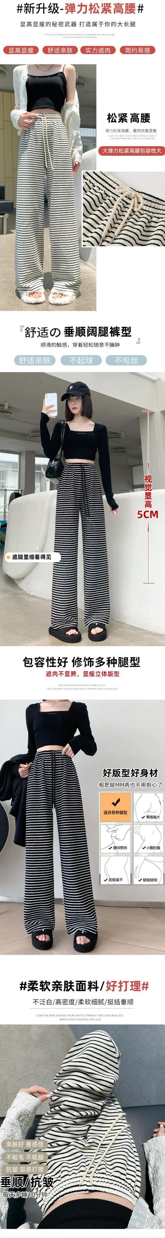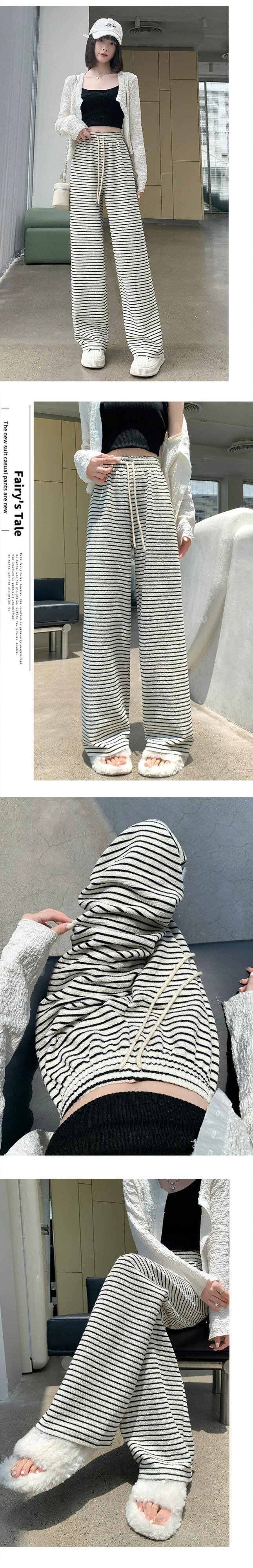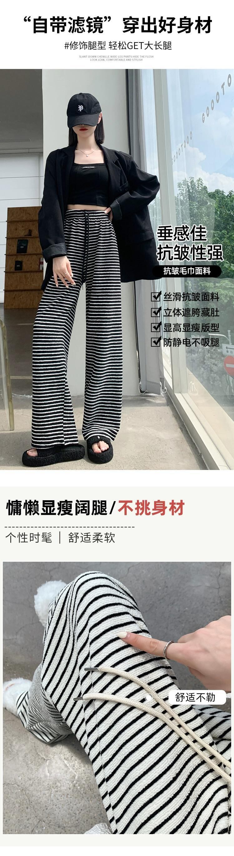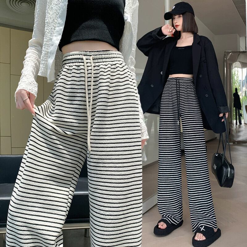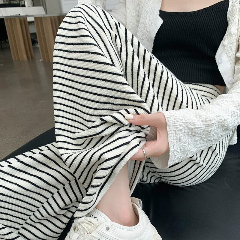 ナローバージョンストライプワイドレッグパンツ新しいスタイル2023女性の春と秋の痩身ハイウエストドレープフロアレングスストレートカジュアルパンツ スプリング 春物 オータム 秋物 7460058716345016 | framboise21