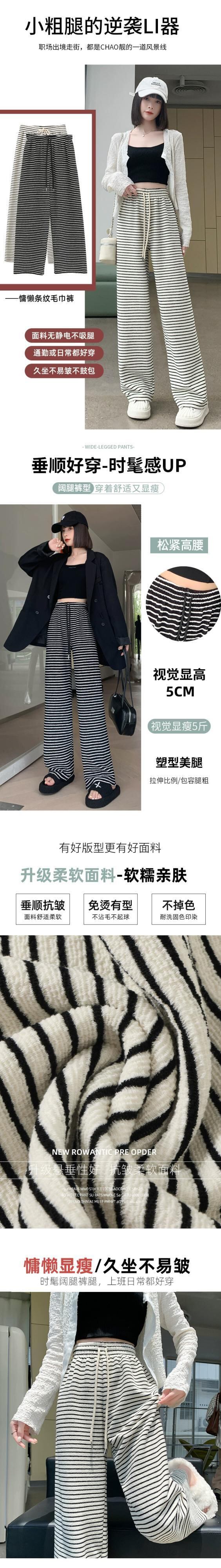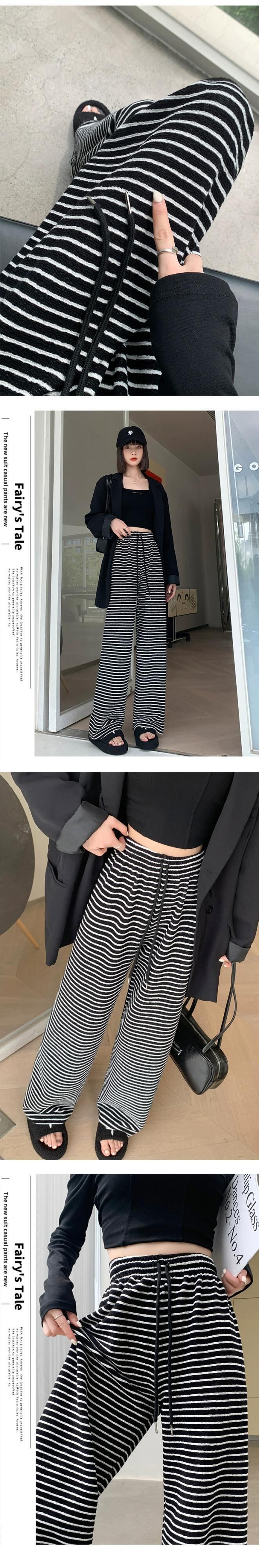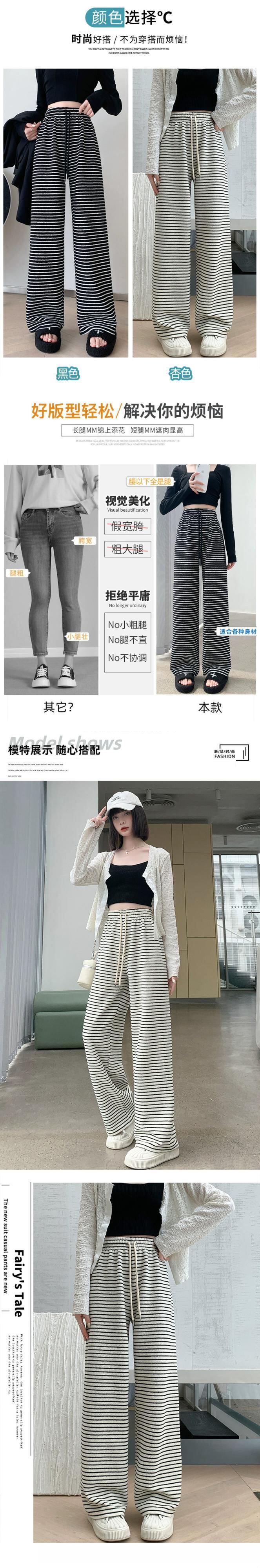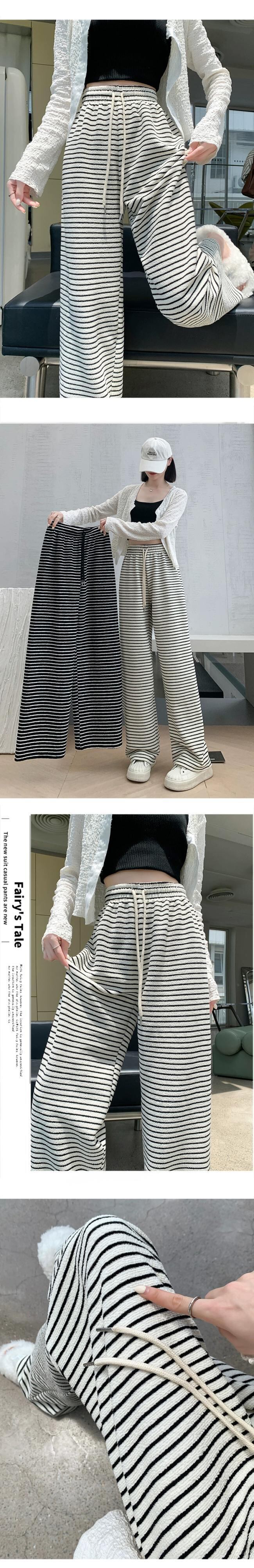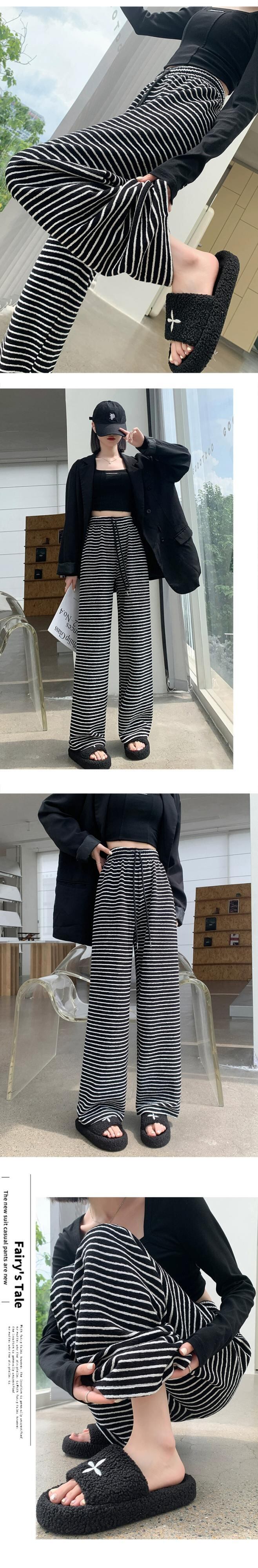 ナローバージョンストライプワイドレッグパンツ新しいスタイル2023女性の春と秋の痩身ハイウエストドレープフロアレングスストレートカジュアルパンツ スプリング 春物 オータム 秋物 7460058716345016 | framboise21