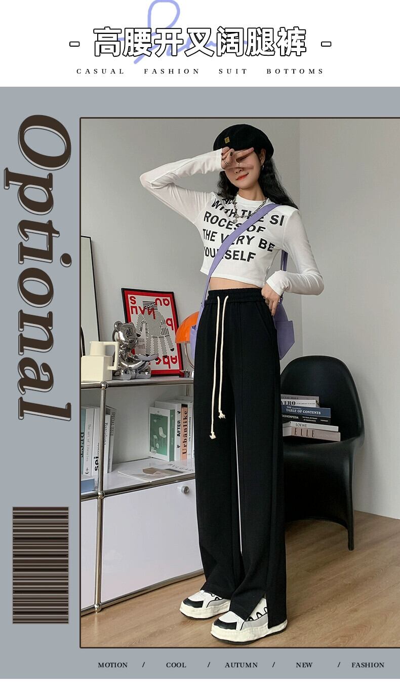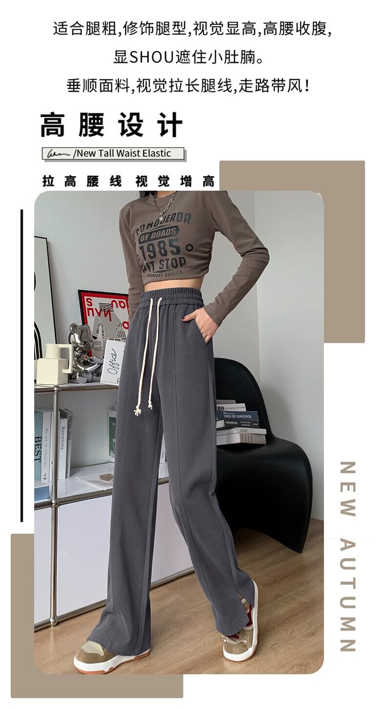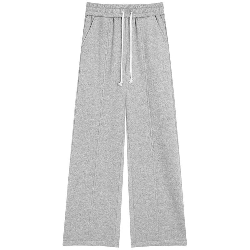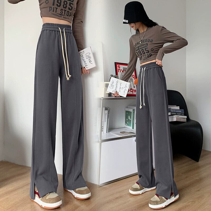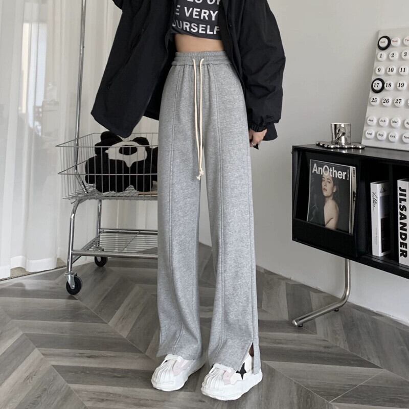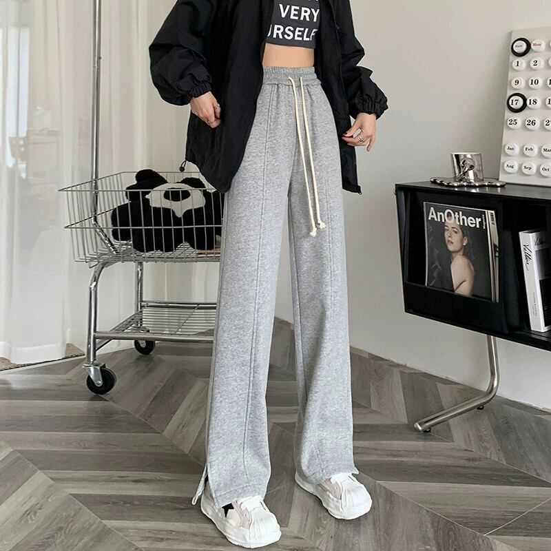 グレーのベルベットスウェットパンツの女性、秋と冬の狭いスリットワイドレッグパンツ、スリム、ハイウエスト、カジュアル、ルーズ、ストレートスポーツパンツ オータム 秋物 ウィンター 冬物 746005850222413 | framboise21