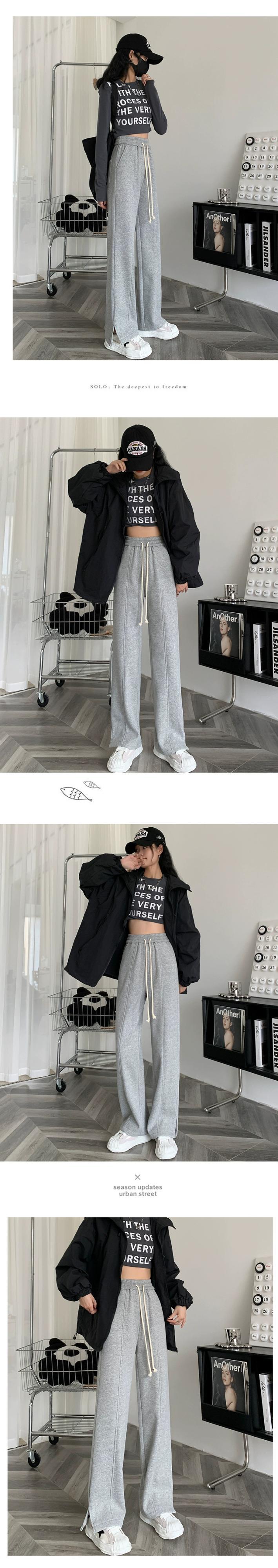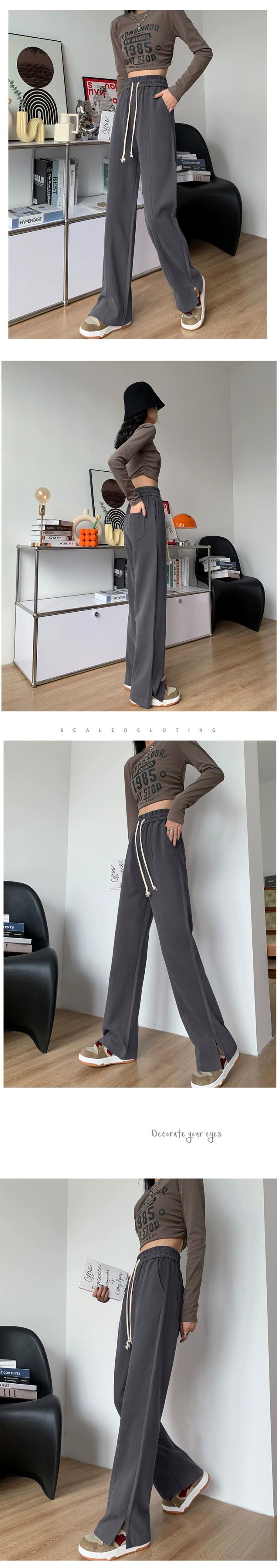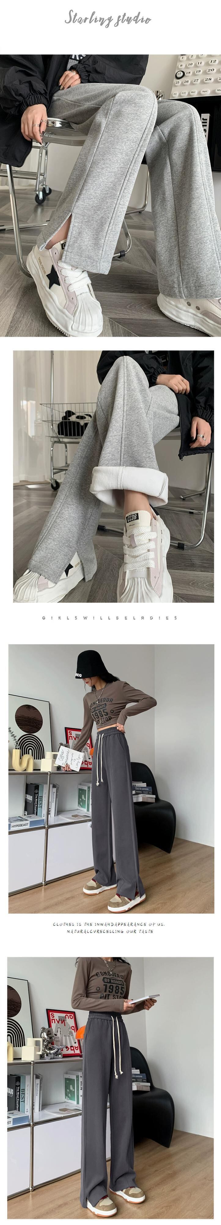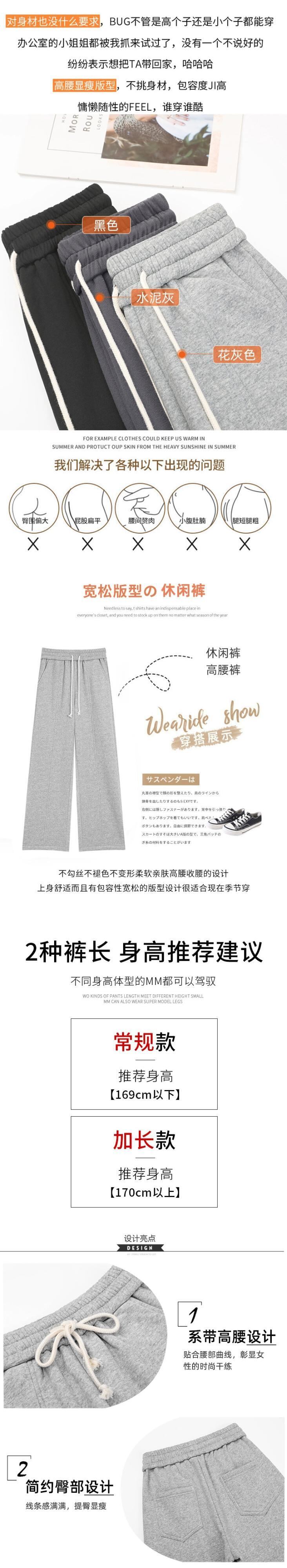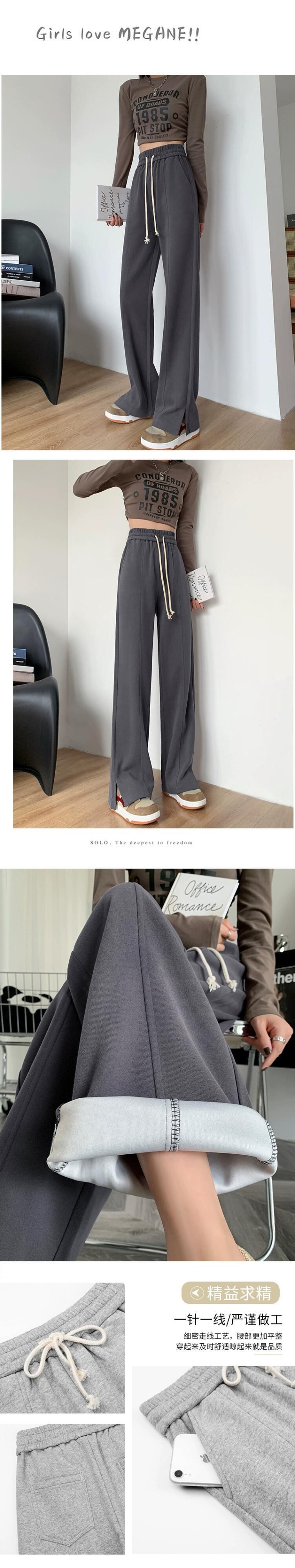 グレーのベルベットスウェットパンツの女性、秋と冬の狭いスリットワイドレッグパンツ、スリム、ハイウエスト、カジュアル、ルーズ、ストレートスポーツパンツ オータム 秋物 ウィンター 冬物 746005850222413 | framboise21