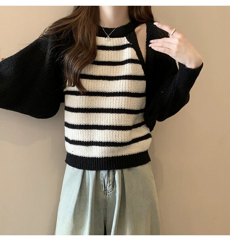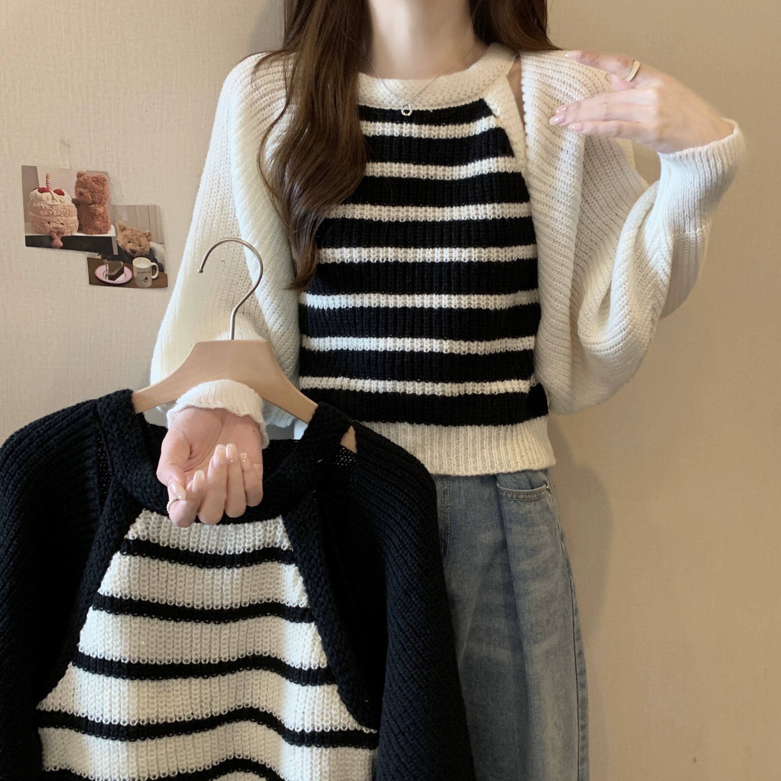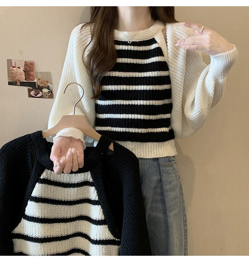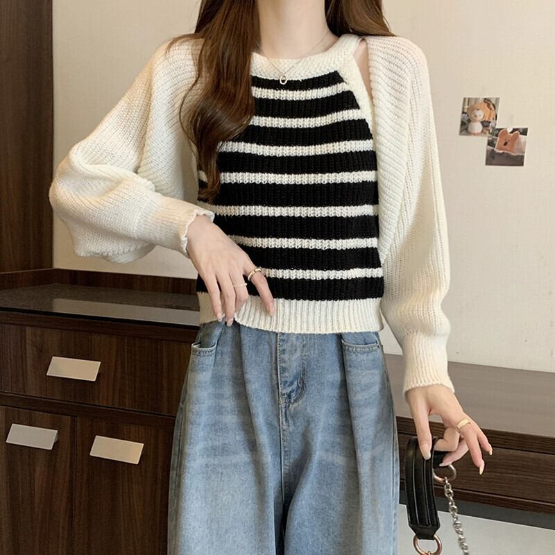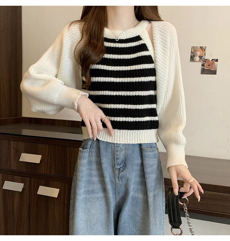 カーディガンセータージャケット女性 2023 新しい春と秋のスタイルのフレンチルーズアウターショートツーピースニットトップ スプリング 春物 オータム 秋物 7460082329192660 | framboise21