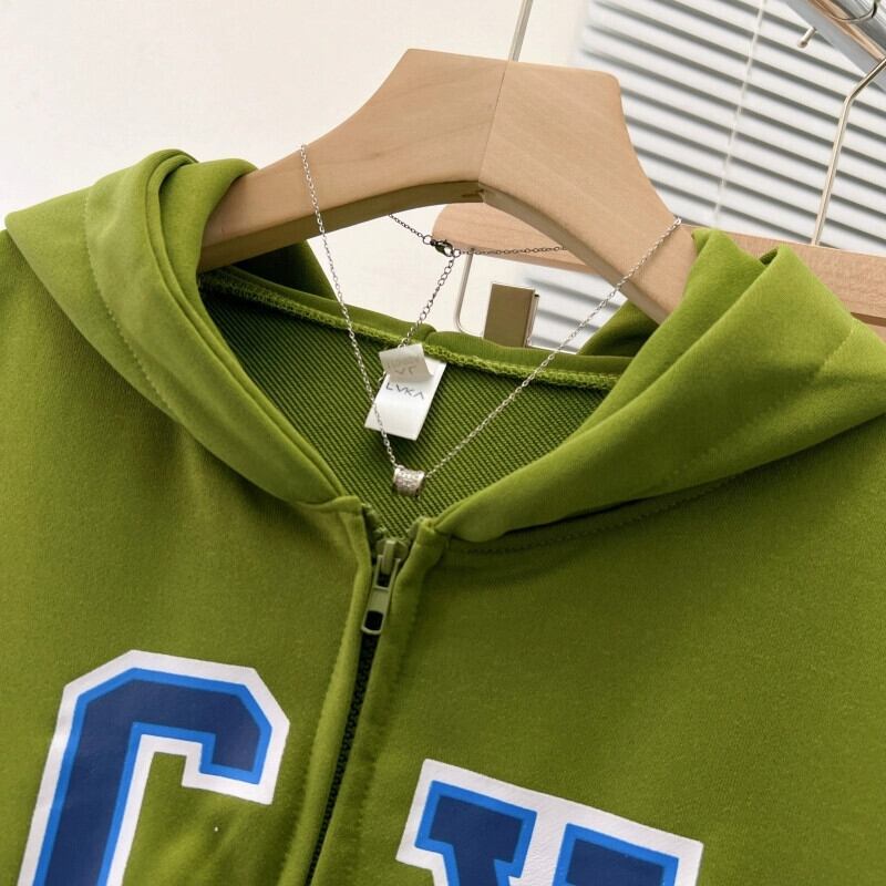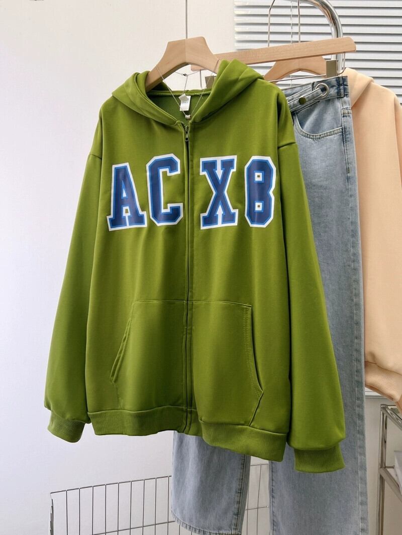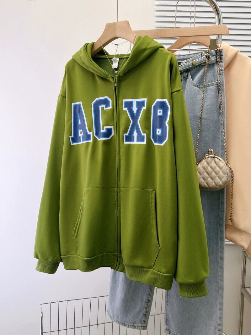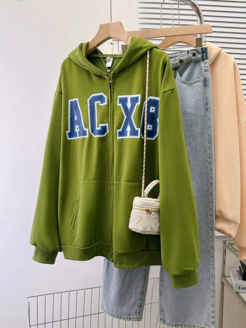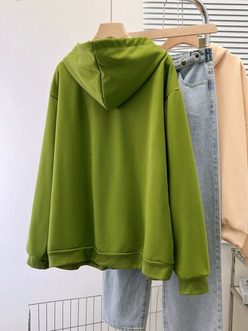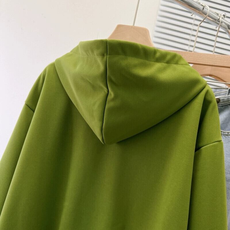 アメリカのミッドレングスのグリーンのフード付きスウェットシャツの女性、春と秋のデザイン、ルーズ、カジュアル、怠惰なスタイル、ジッパー付きフード付きジャケット レッド スプリング 春物 オータム 秋物 7460067783948002 | framboise21