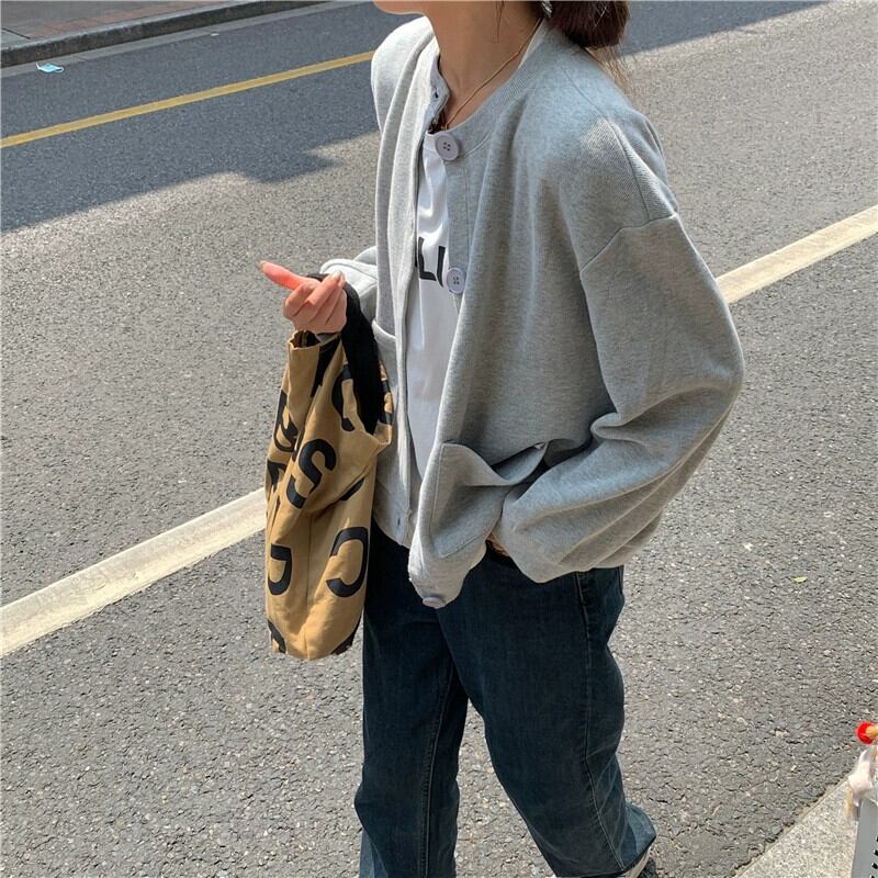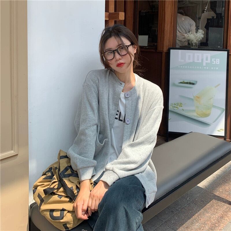 ミドル丈カーディガントレーナージャケット女性春と秋 2023 新しいルーズスタイル怠惰なスタイルカジュアル長袖トップグレー ロング スプリング 春物 オータム 秋物 7460075151139716 | framboise21