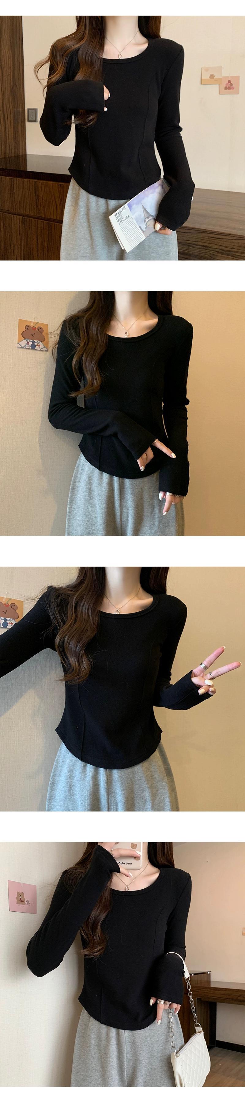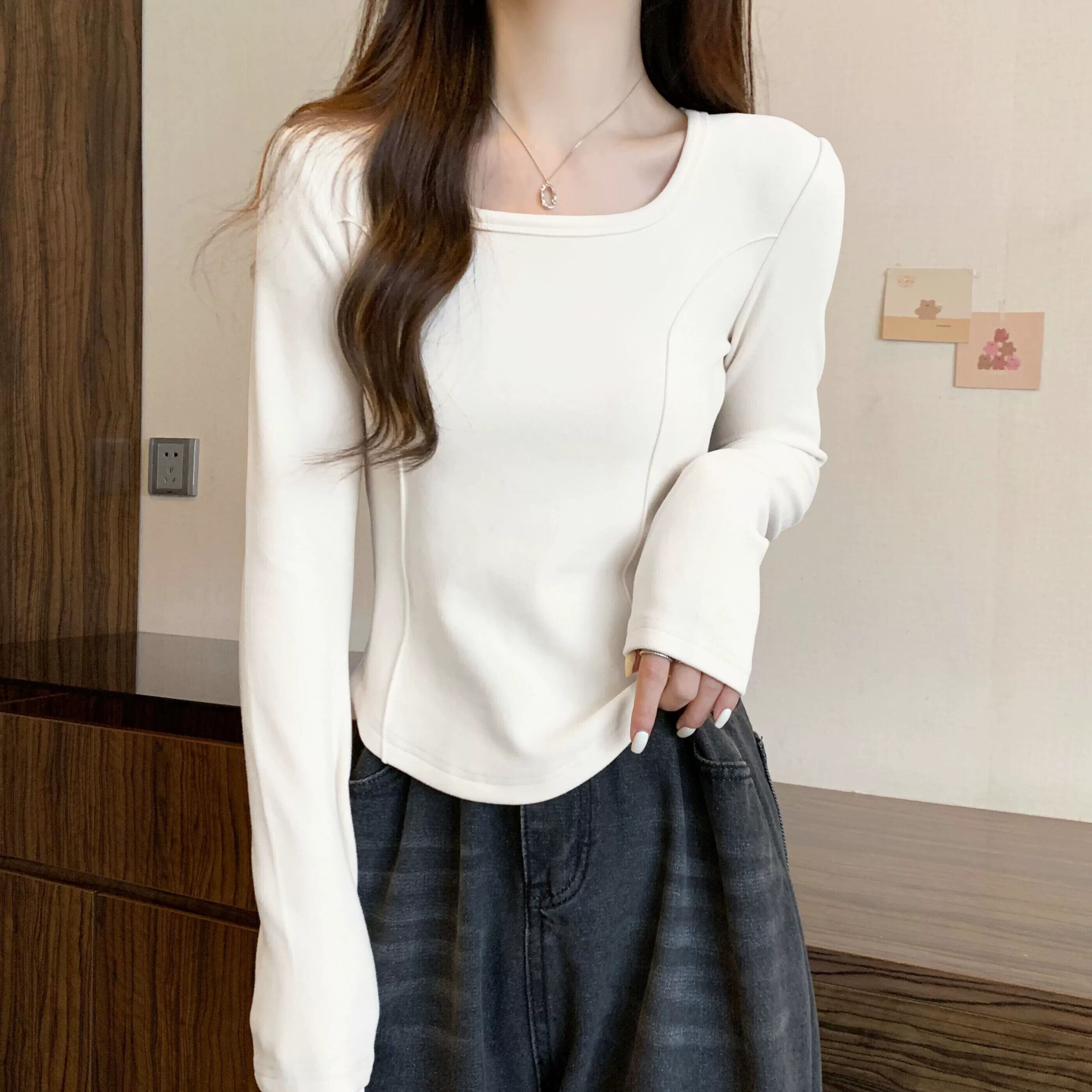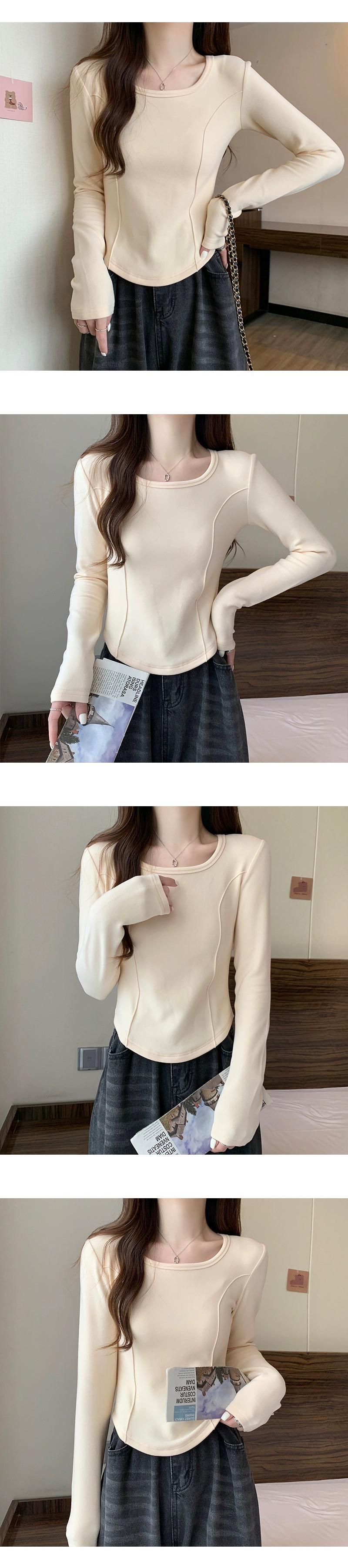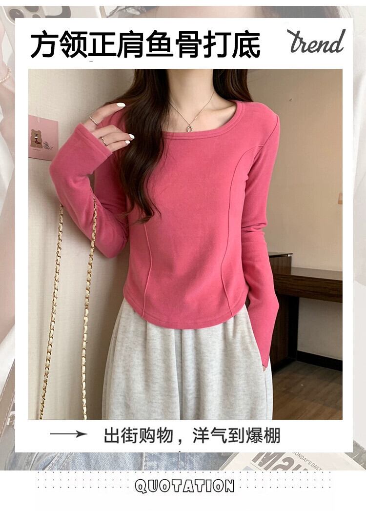 右肩長袖Tシャツレディース、春と秋のファッション、スリムフィット、スクエアネックボトムシャツ、不規則なショートインナートップ ロング スプリング 春物 オータム 秋物 スクウェア 7460055635262442 | framboise21
