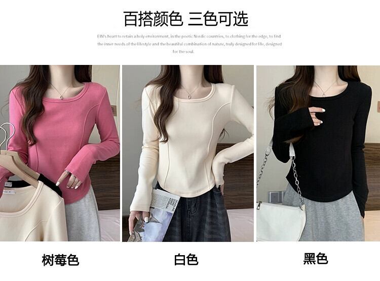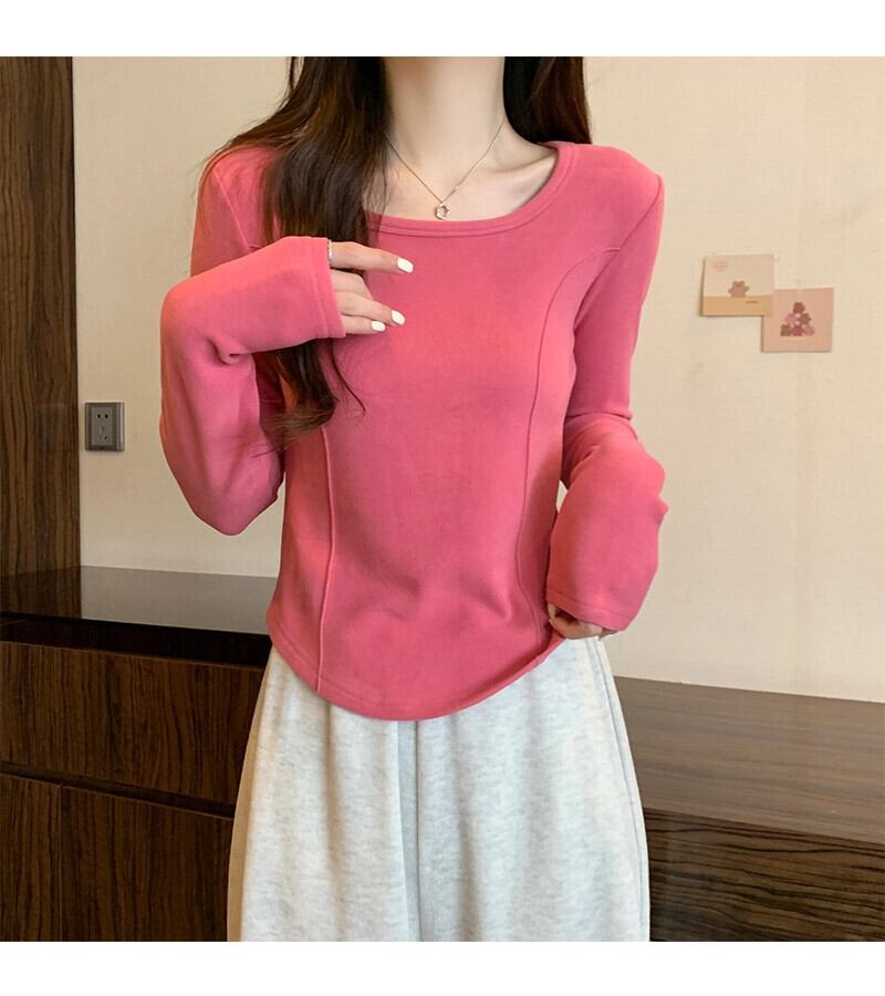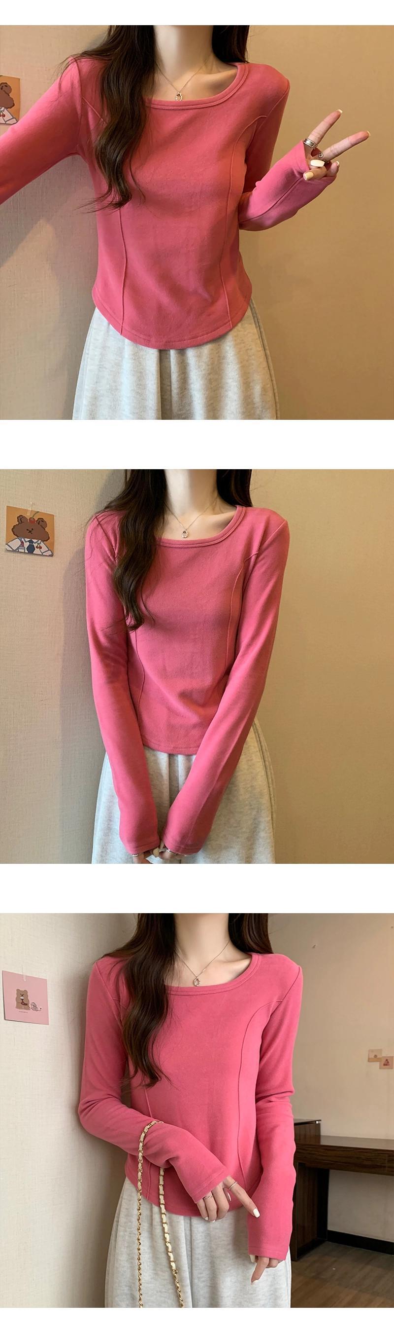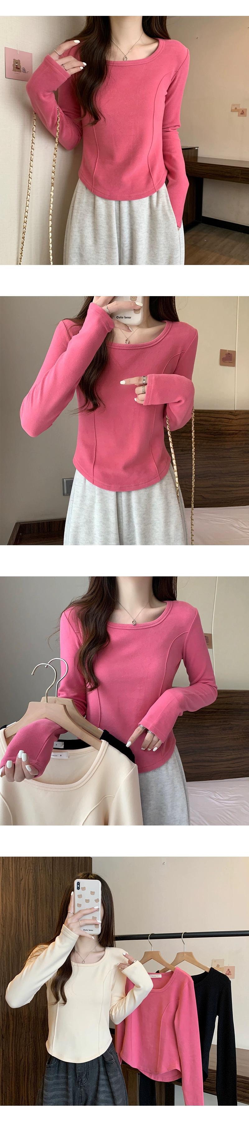 右肩長袖Tシャツレディース、春と秋のファッション、スリムフィット、スクエアネックボトムシャツ、不規則なショートインナートップ ロング スプリング 春物 オータム 秋物 スクウェア 7460055635262442 | framboise21