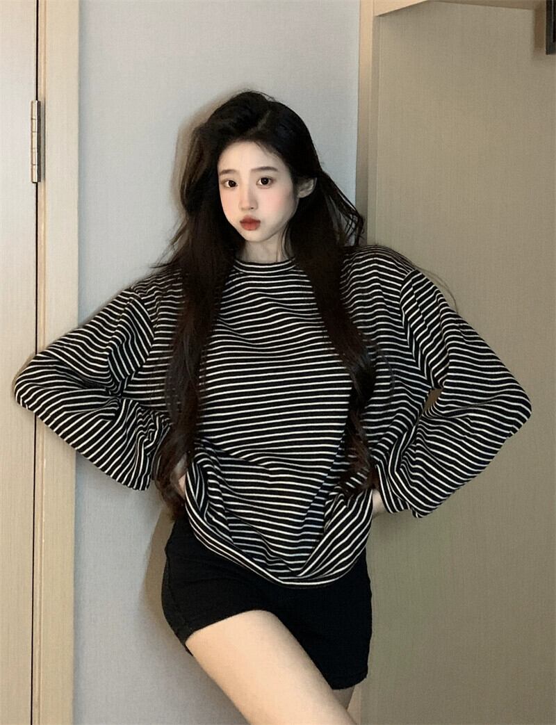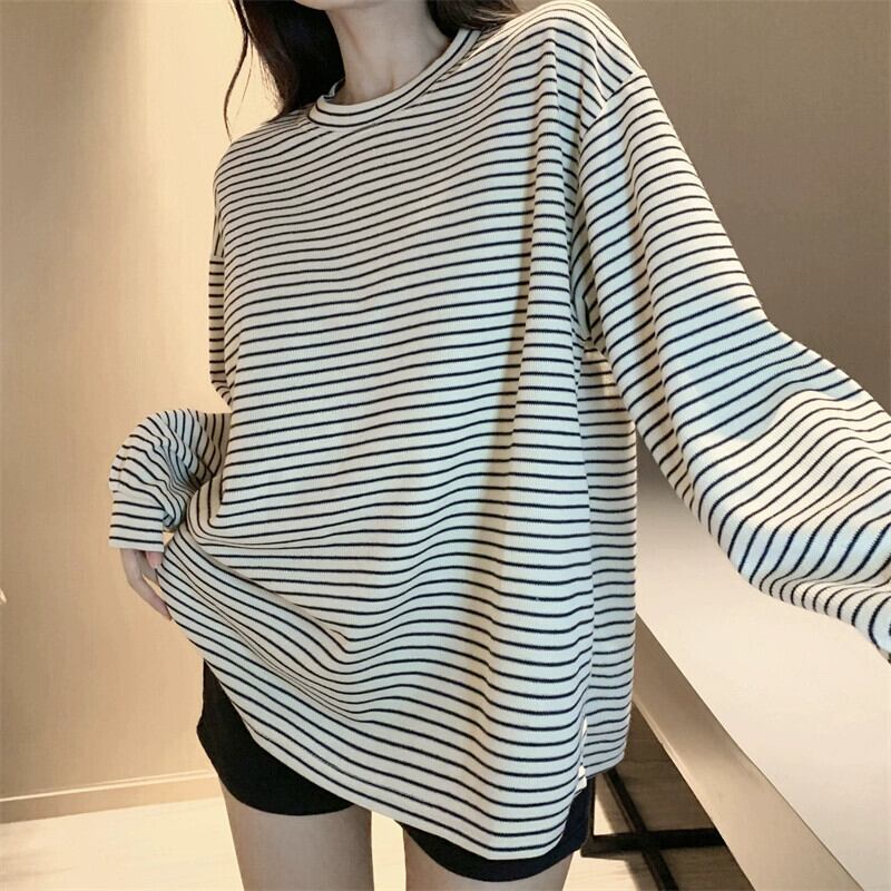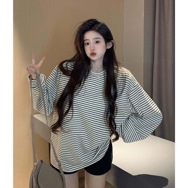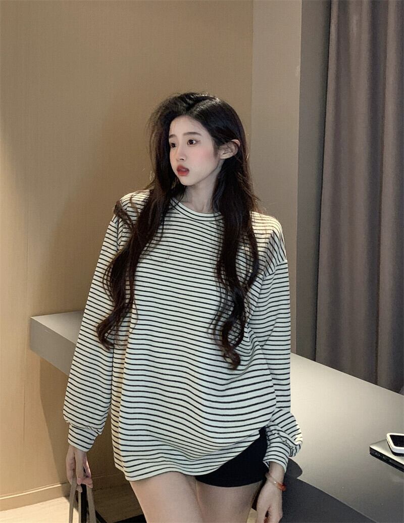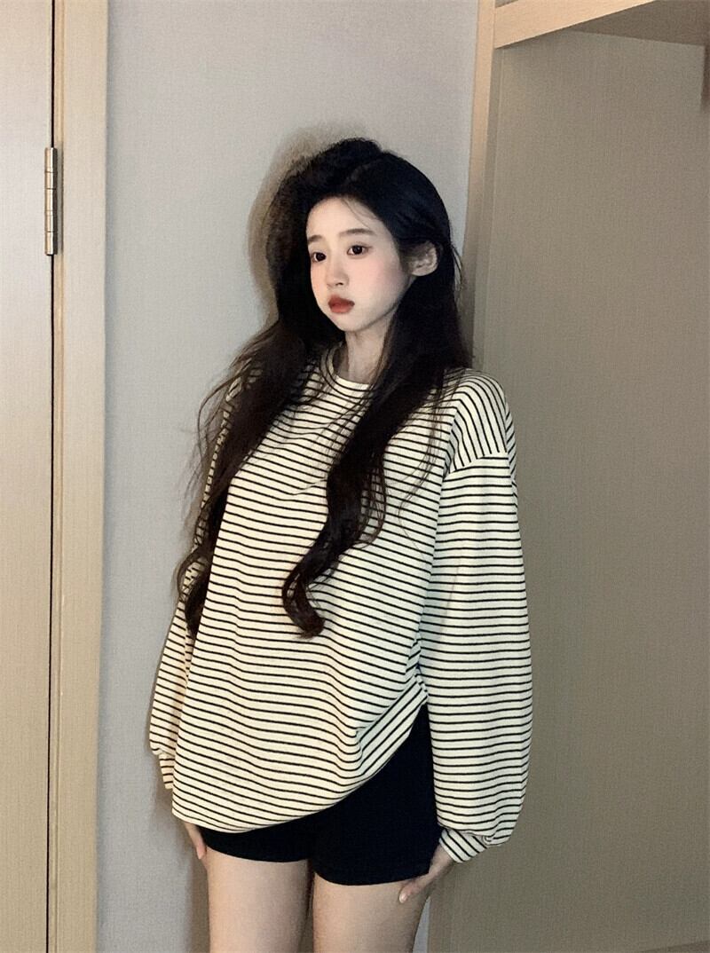 オーバーサイズストライプトレーナー女性春と秋 2023 新スタイルカジュアルルーズ怠惰なプルオーバー長袖ジャケット ロング スプリング 春物 オータム 秋物 7460081026265315 | framboise21