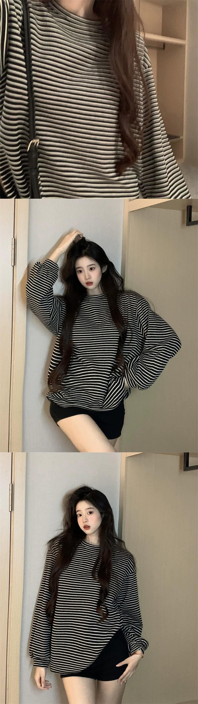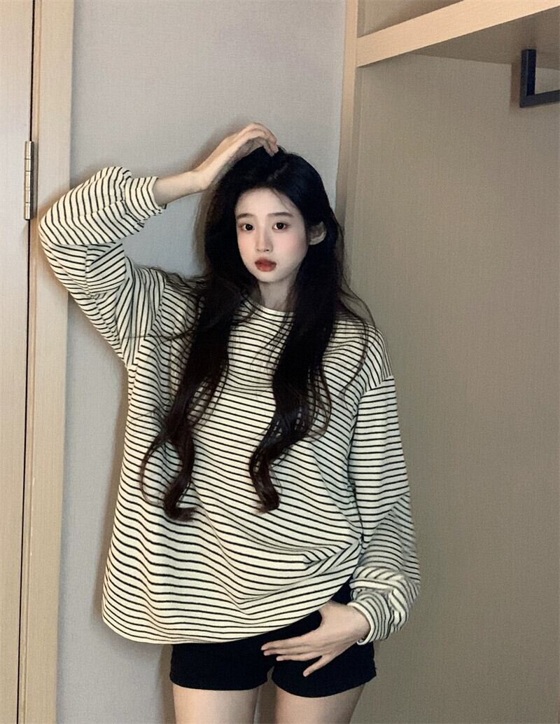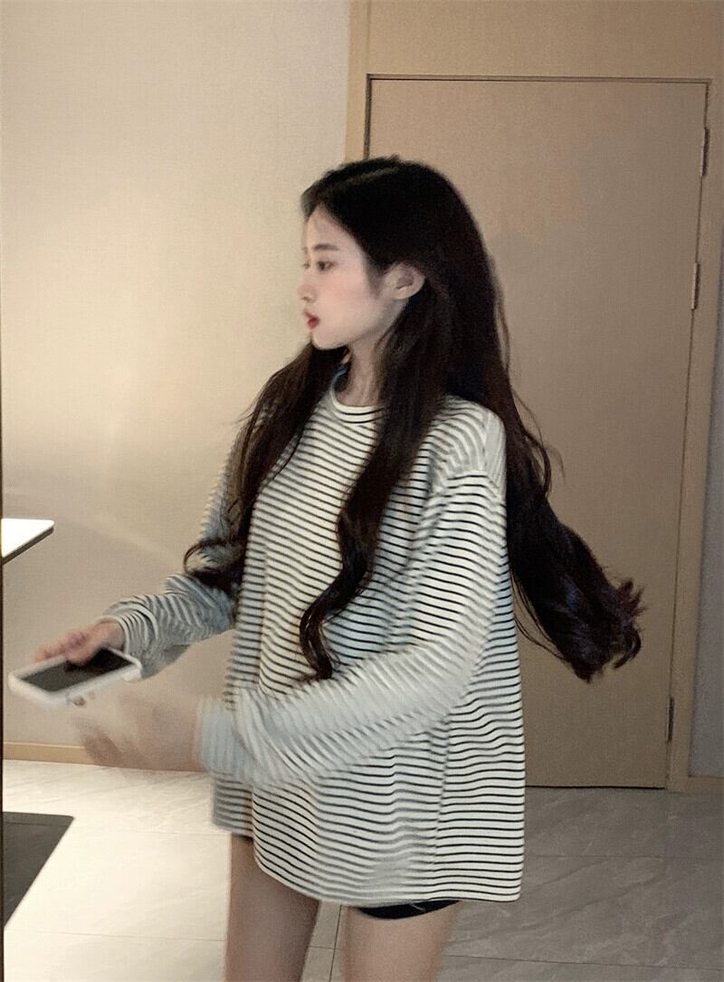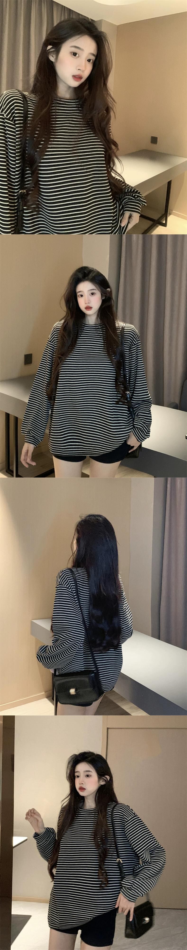オーバーサイズストライプトレーナー女性春と秋 2023 新スタイルカジュアルルーズ怠惰なプルオーバー長袖ジャケット ロング スプリング 春物 オータム 秋物 7460081026265315 | framboise21