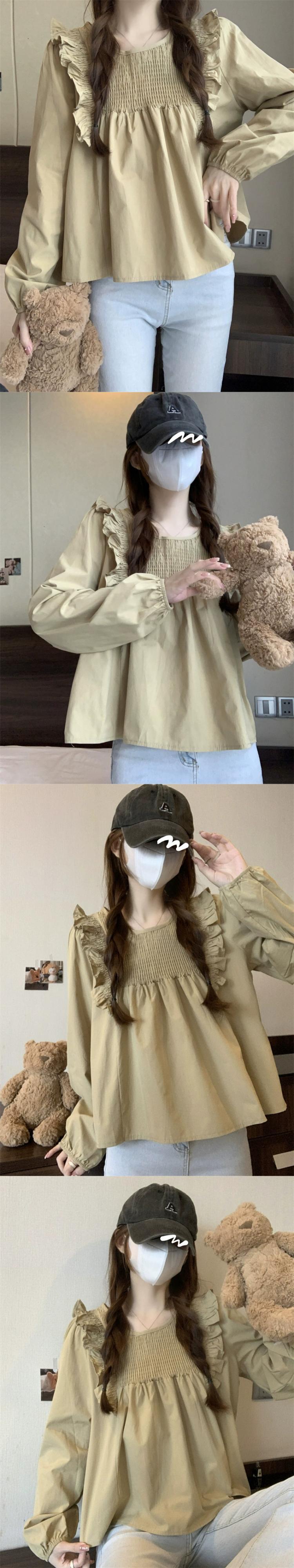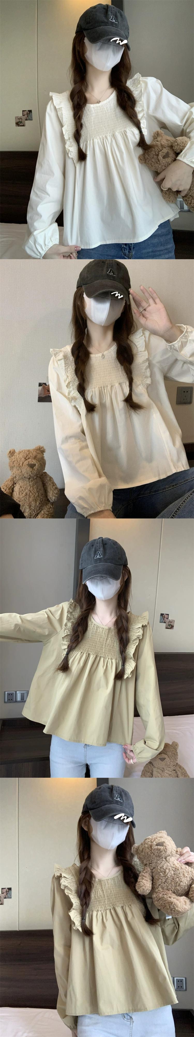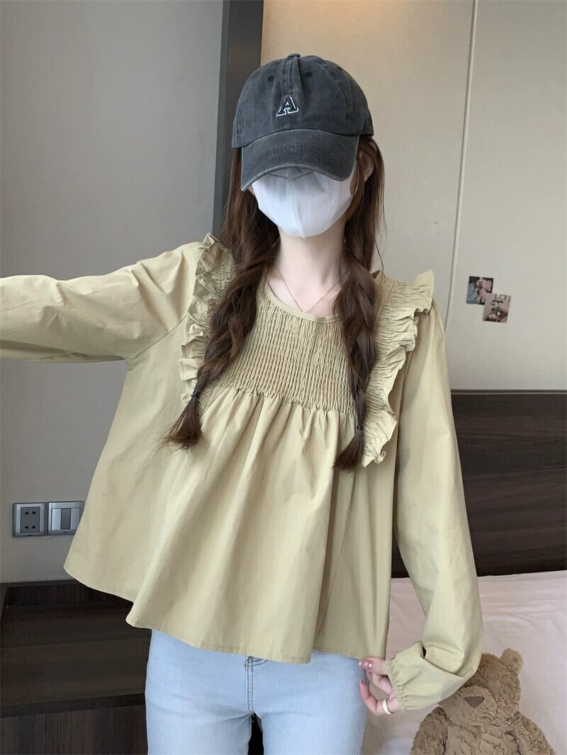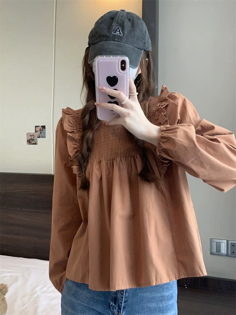 キノコエッジのベビードールトップ女性、春と秋のフランスのファッションデザイン、シックなルーズな白い長袖シャツ ロング ホワイト スプリング 春物 オータム 秋物 7460073895720191 | framboise21