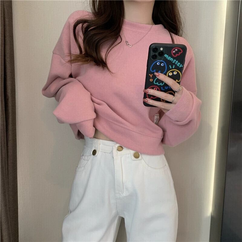 甘いハイウエストショートスウェットシャツの女性の春と秋の2023新しいスタイルのルーズデザイン長袖トップ小人 ロング 大人ガーリー スウィート キュート カジュアル スプリング 春物 オータム 秋物 7460033659135528 | framboise21