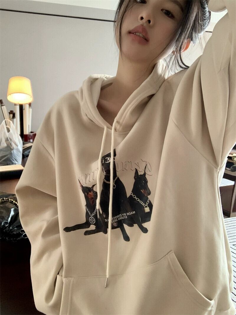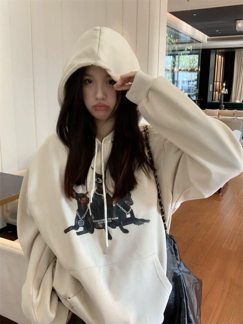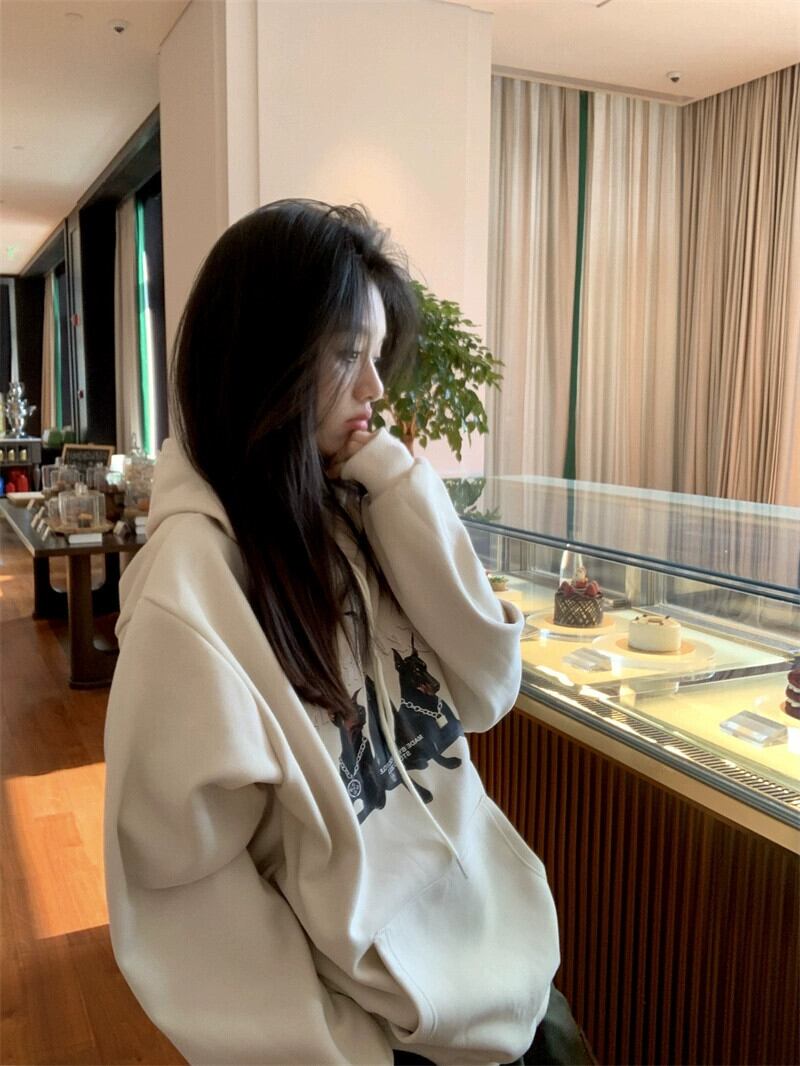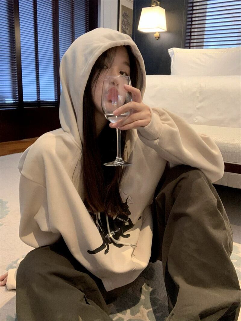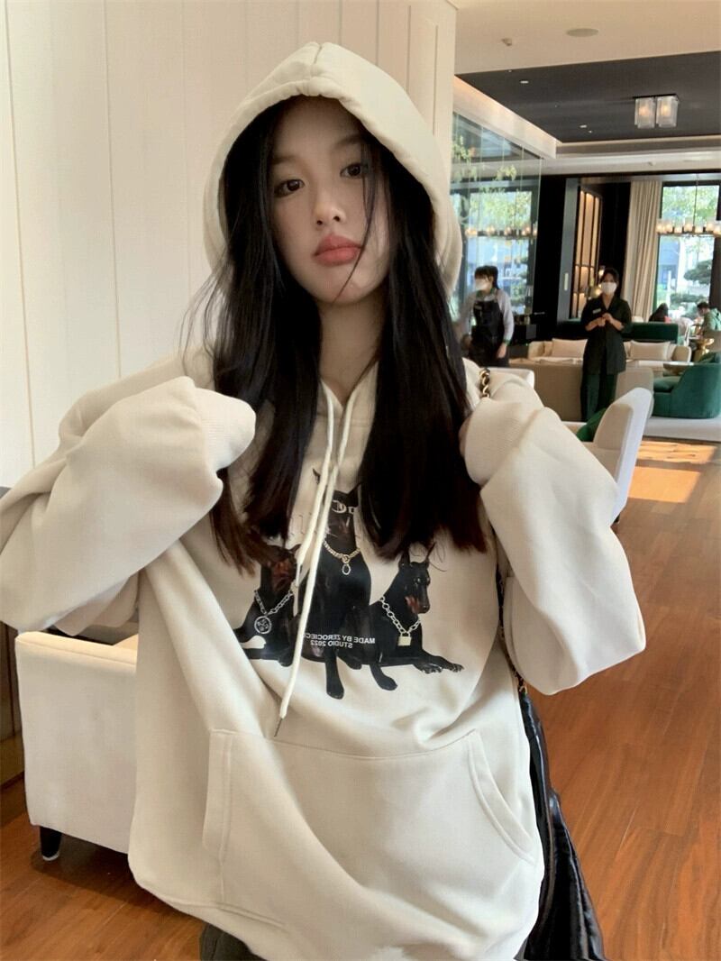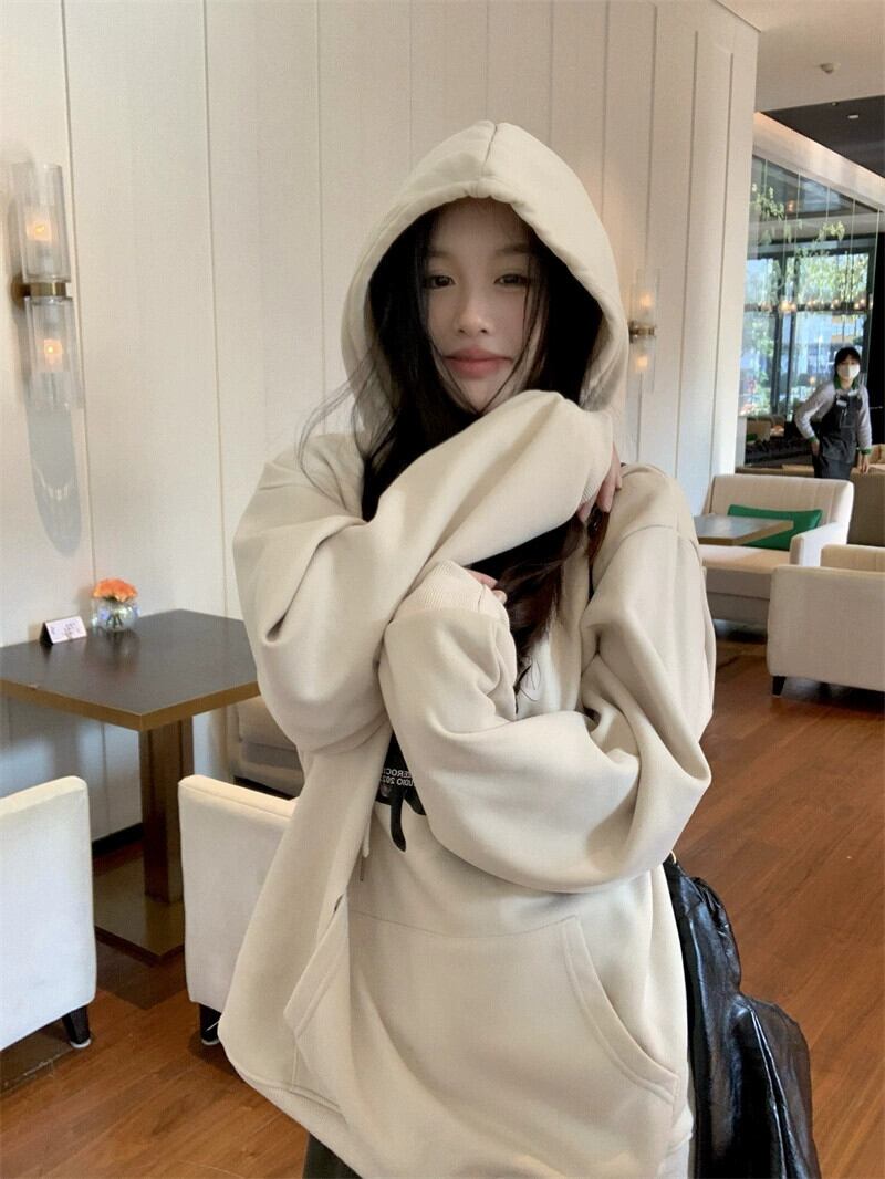 アメリカのハイストリートフード付きスウェットシャツの女性、春と秋のルーズスタイルオーバーサイズミッドレングスプルオーバーピュアコットントップトレンディ スプリング 春物 オータム 秋物 7460014363323253 | framboise21