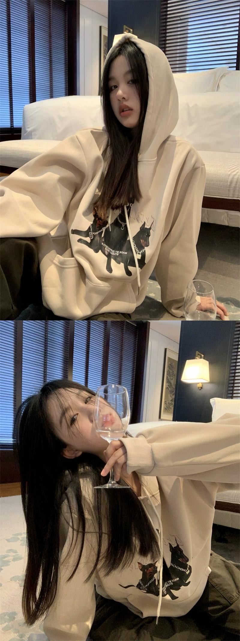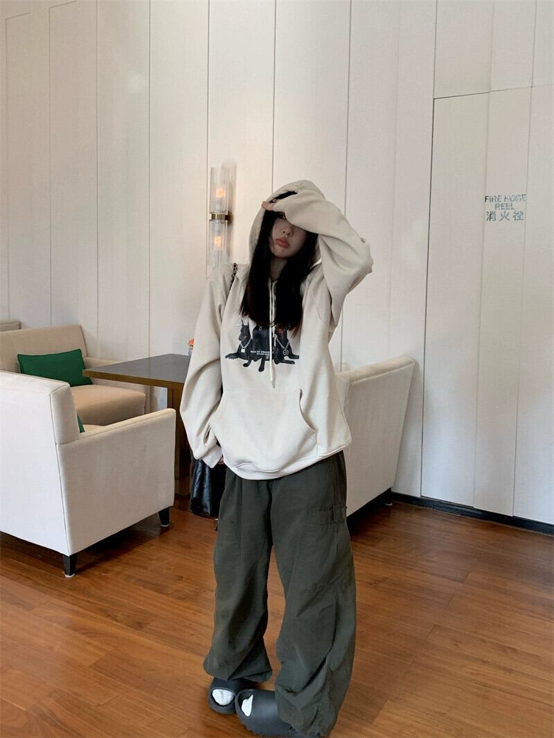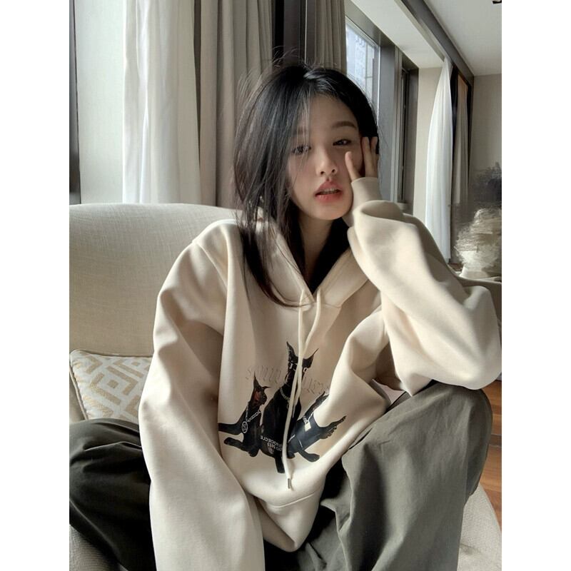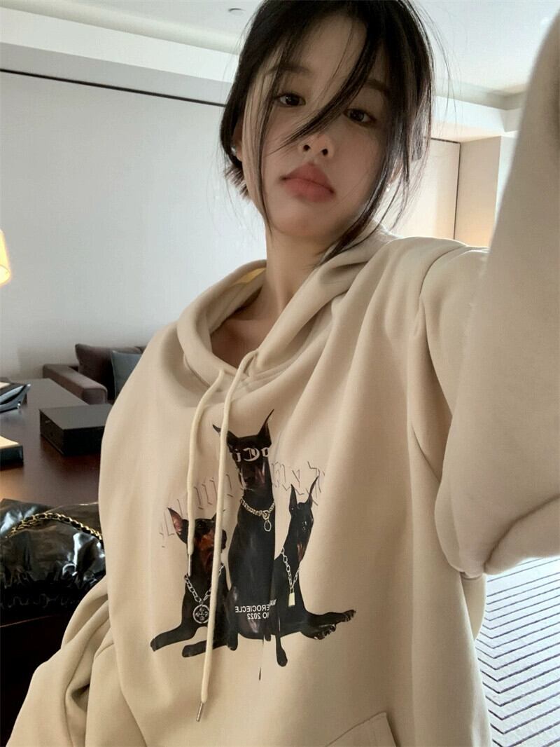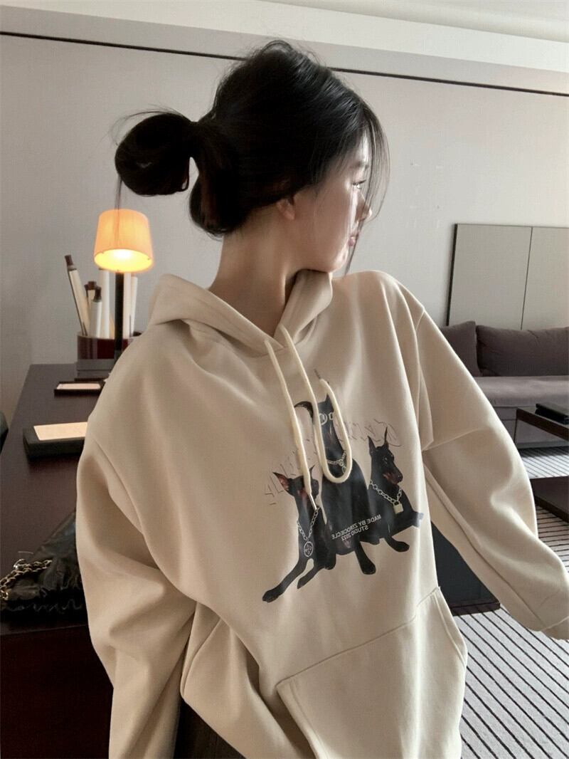 アメリカのハイストリートフード付きスウェットシャツの女性、春と秋のルーズスタイルオーバーサイズミッドレングスプルオーバーピュアコットントップトレンディ スプリング 春物 オータム 秋物 7460014363323253 | framboise21