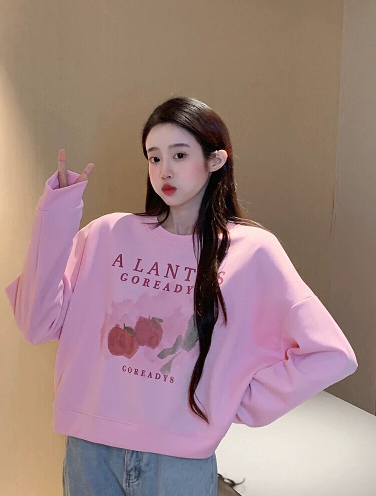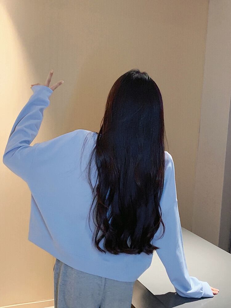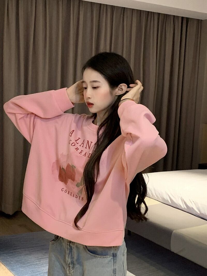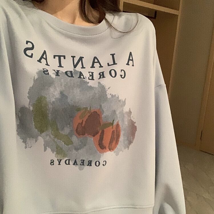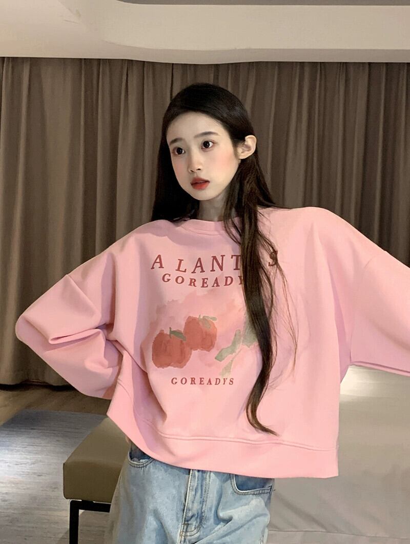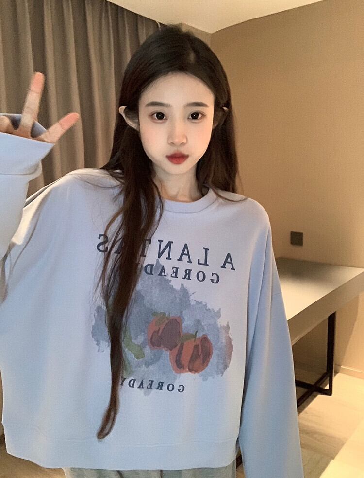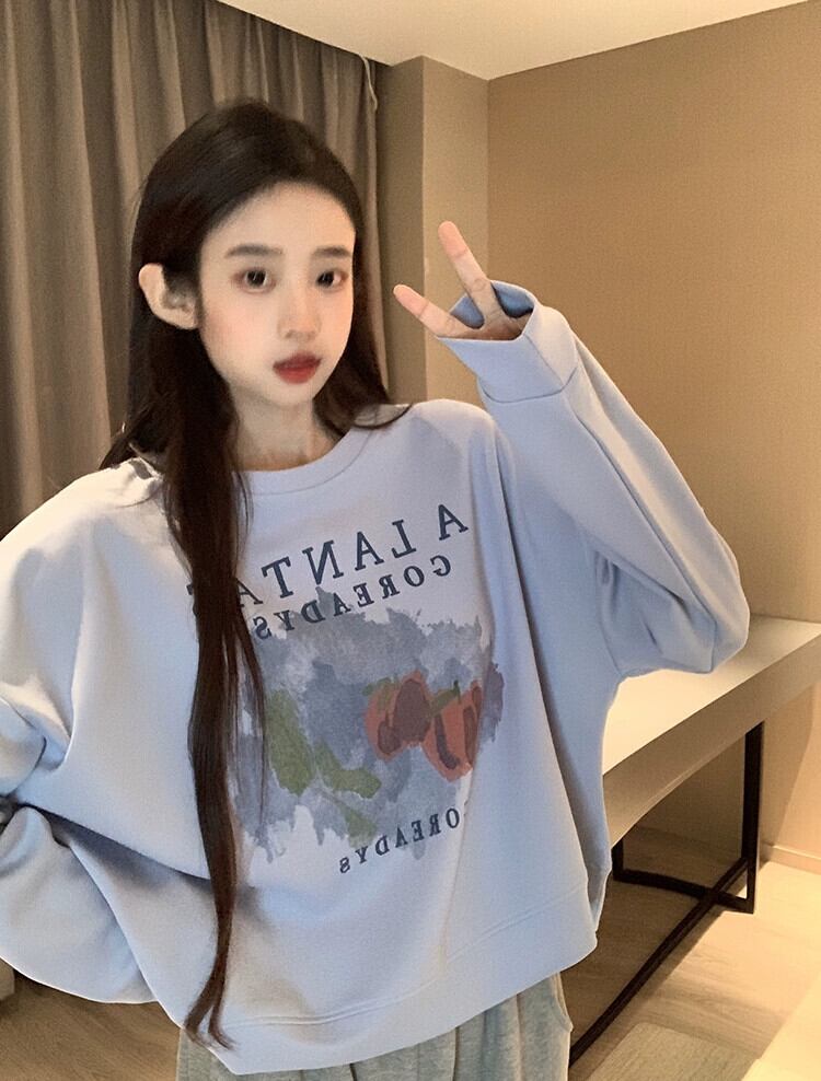 ブループリントショートスウェットシャツの女性の春と秋2023新しいスタイルの小さなルーズデザイン多目的ラウンドネックトップ スプリング 春物 オータム 秋物 Oネック 7460058383393555 | framboise21