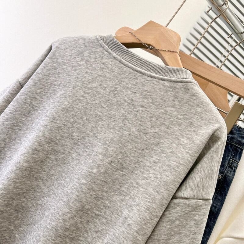 ミッドレングスのベルベット肥厚フード付きスウェットシャツの女性の秋と冬 2023 新しいカジュアルルーズ怠惰なグレーラウンドネックジャケット オータム 秋物 ウィンター 冬物 Oネック 7460010317750777 | framboise21