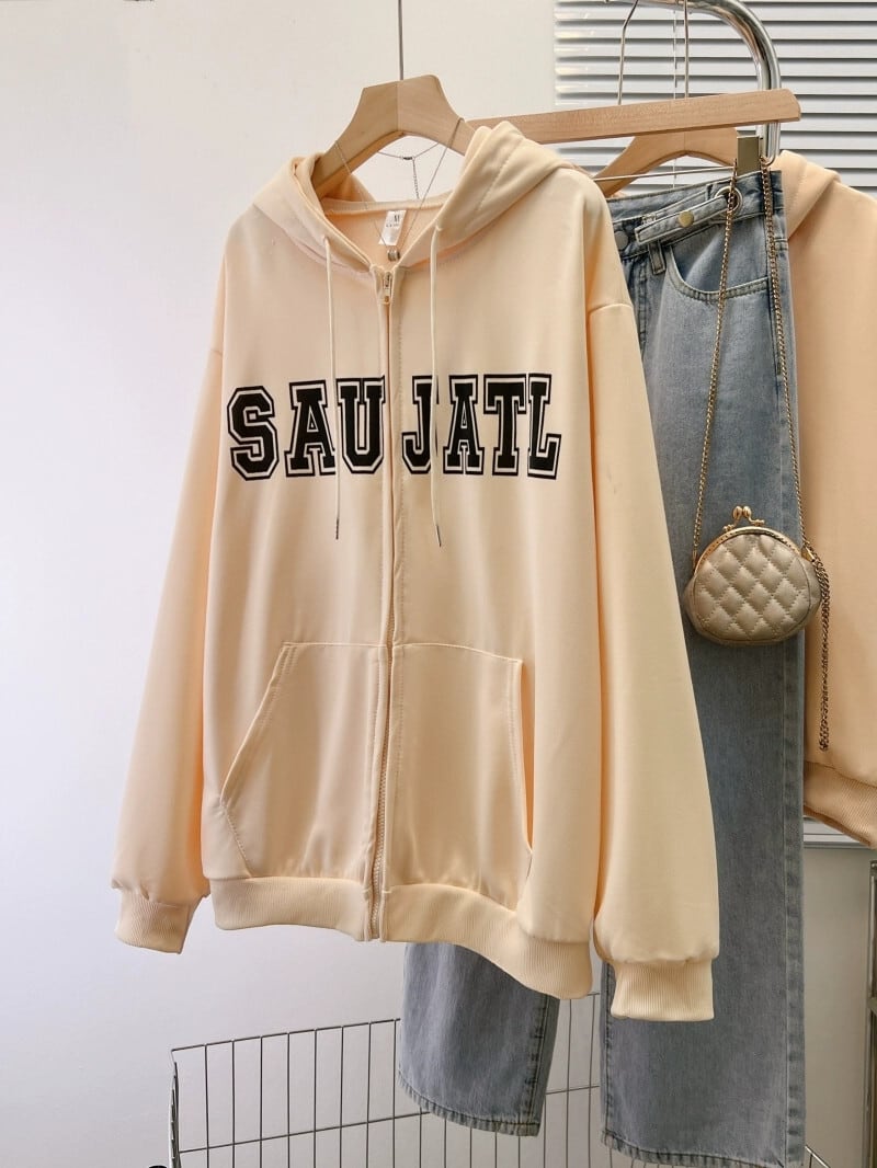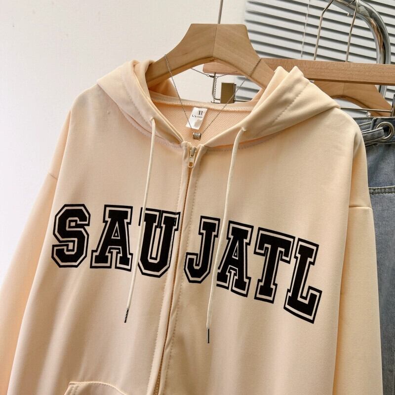 アメリカのハイストリートミッドレングスのフード付きスウェットシャツの女性の春と秋のルーズスタイルカジュアル怠惰なオーバーサイズジッパージャケット スプリング 春物 オータム 秋物 7460072417773704 | framboise21