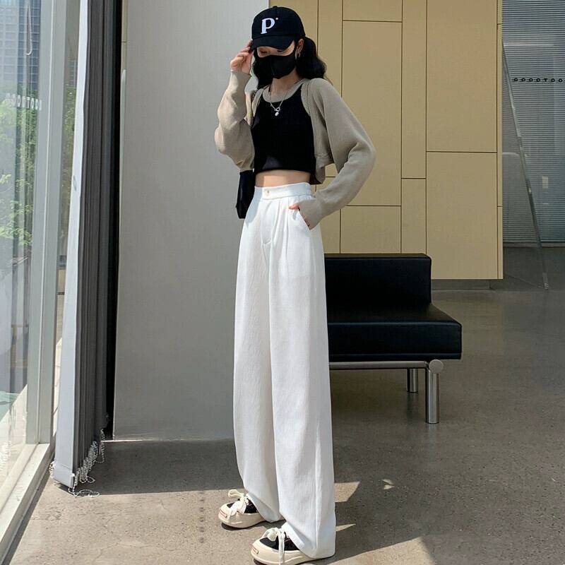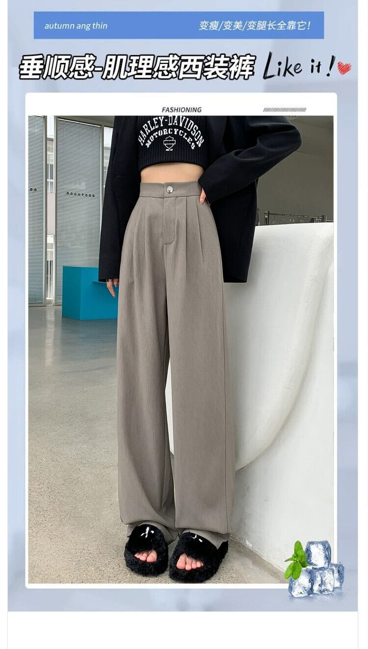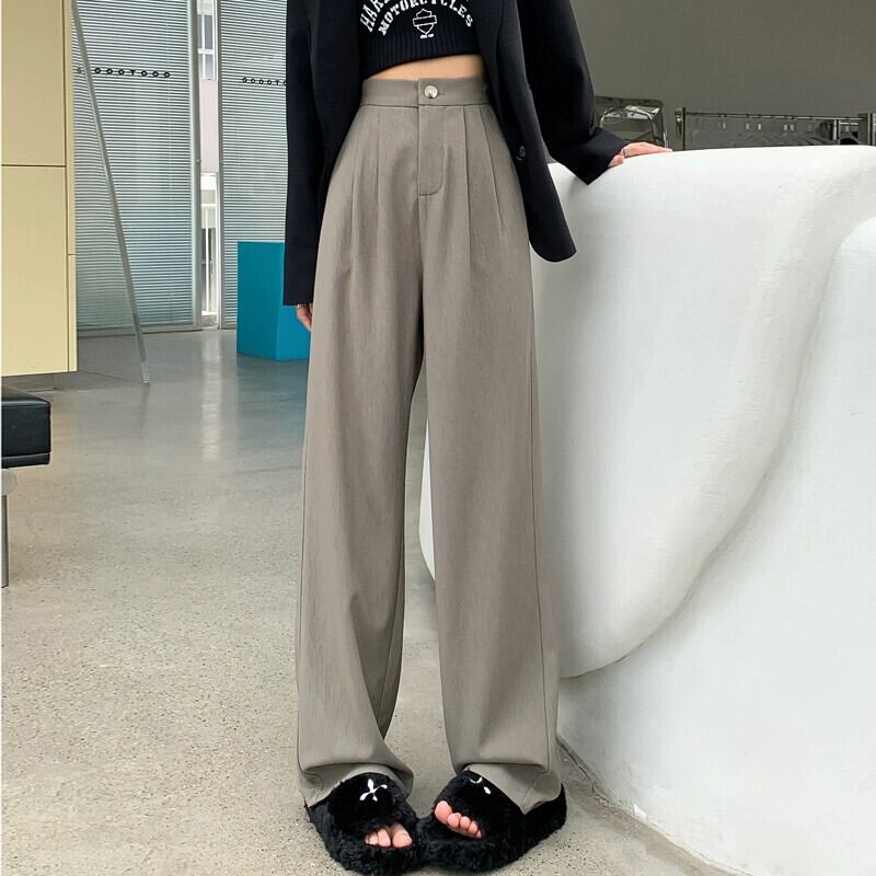 ドレープスーツの幅狭バージョンの女性用ワイドレッグパンツ、春と秋のスタイルの小さなフロアレングスパンツ、スリム、ルーズ、カジュアル、ストレートレッグパンツ スプリング 春物 オータム 秋物 7460097499073628 | framboise21
