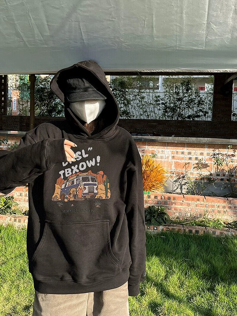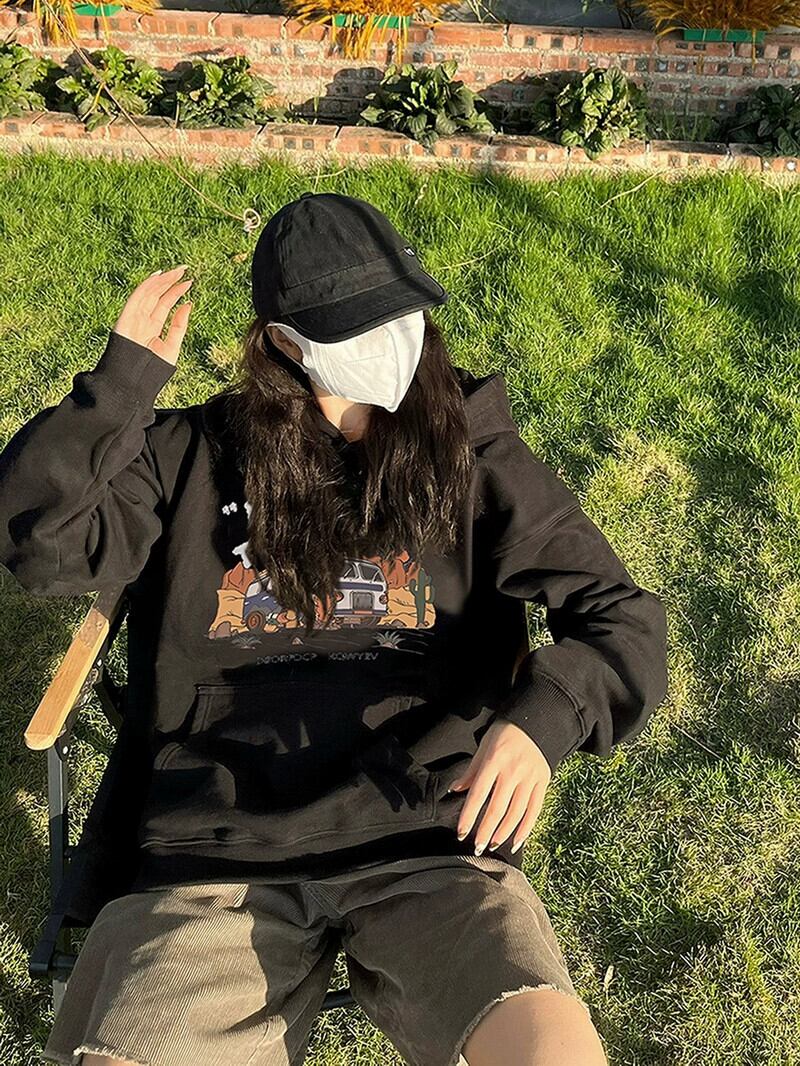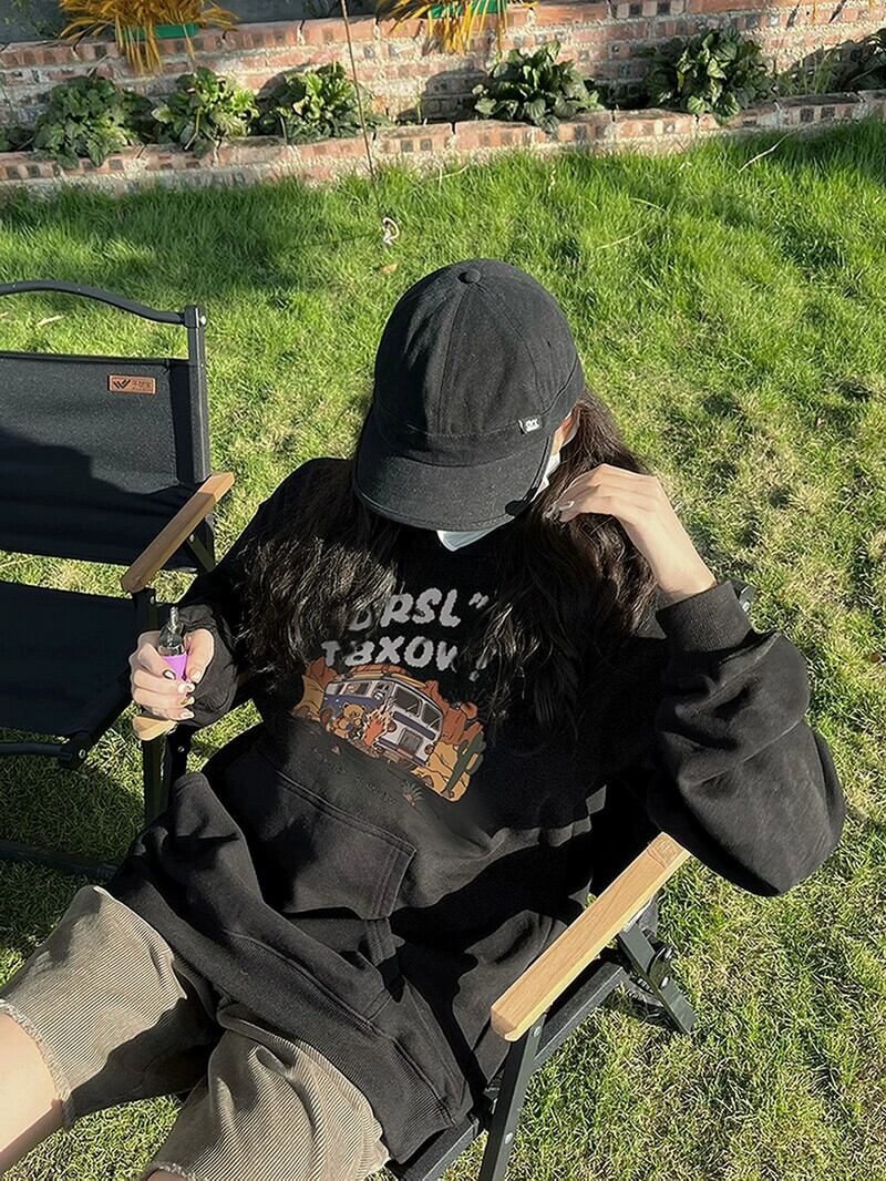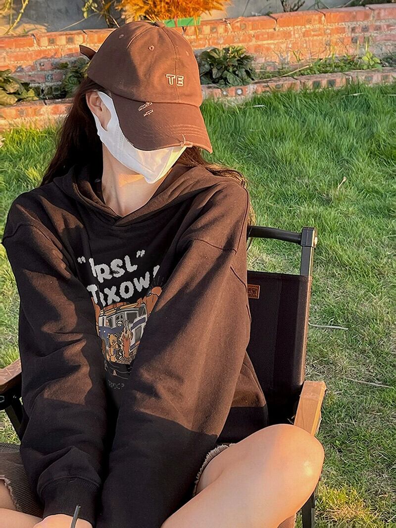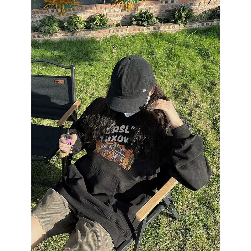 ミッドレングスプルオーバーフード付きスウェットシャツ女性 2023 新しい人気の春と秋のデザインゆるい怠惰なプリントトップ スプリング 春物 オータム 秋物 7460053678256204 | framboise21