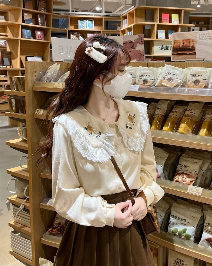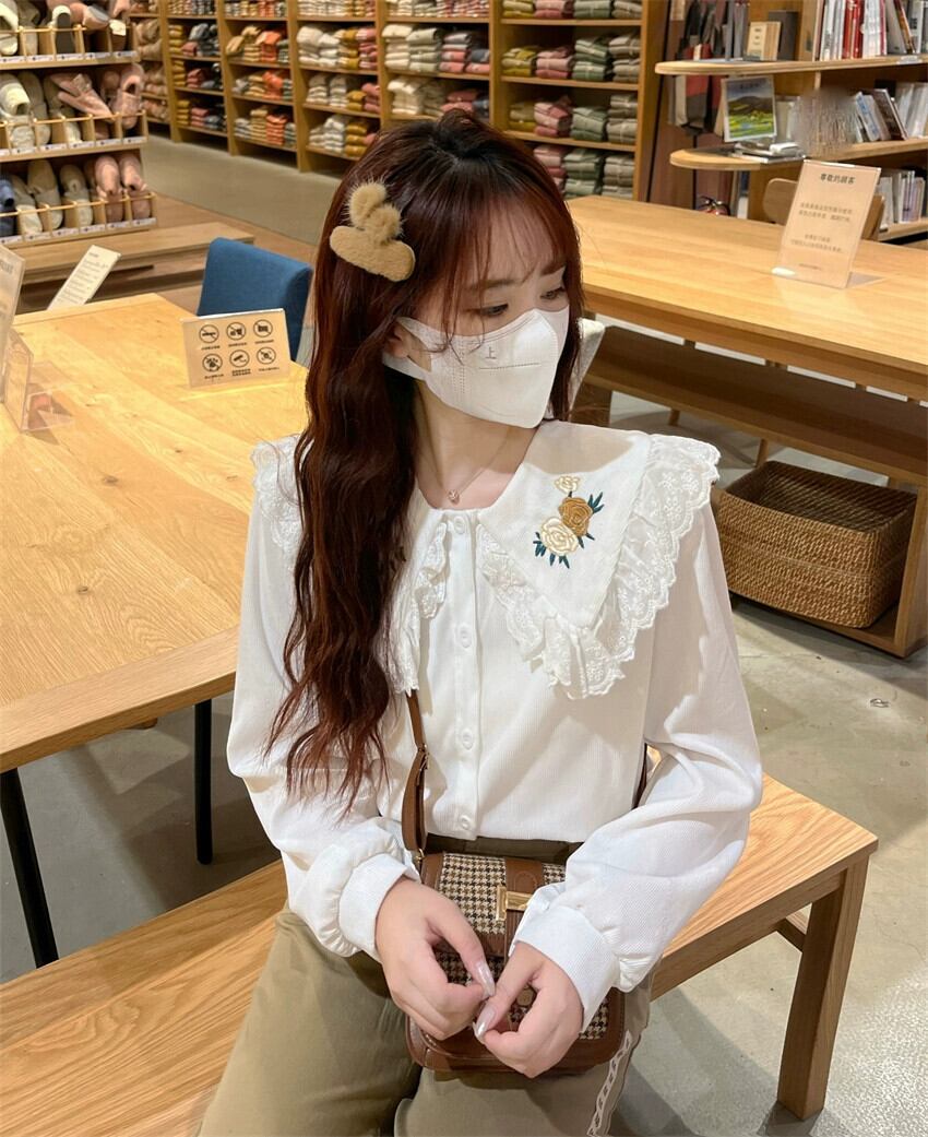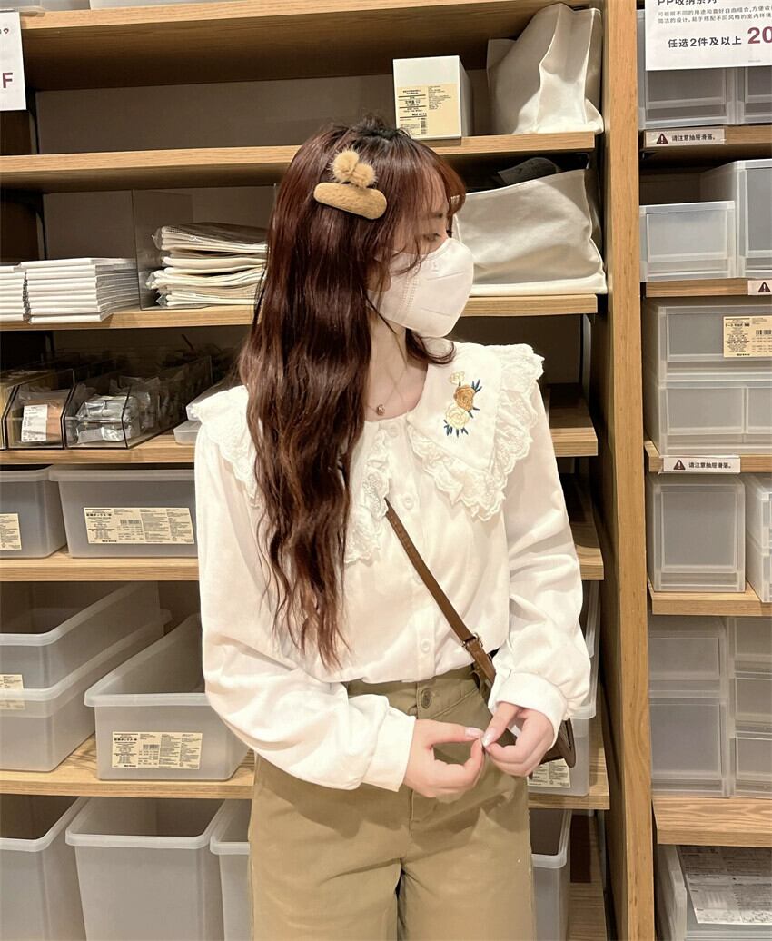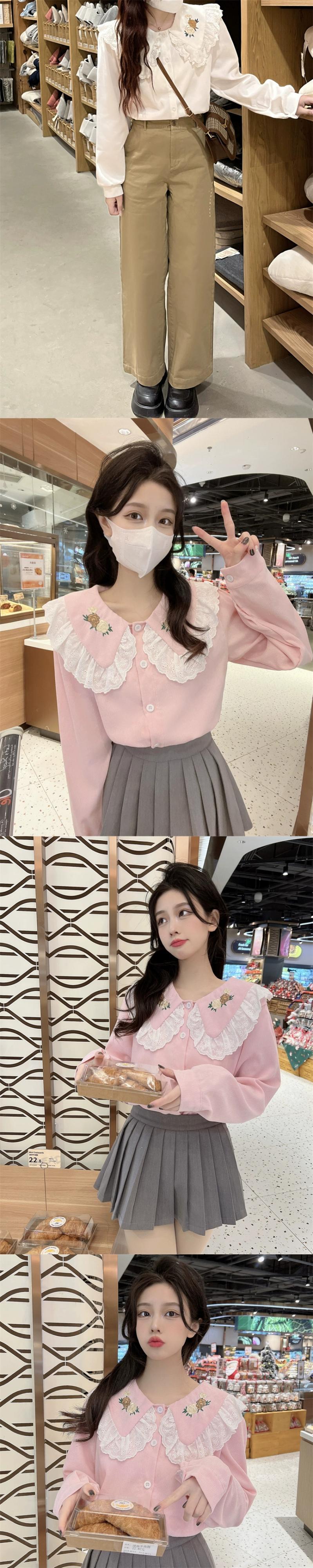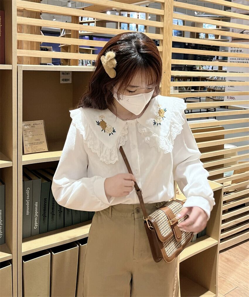 フレンチレース刺繍ドールカラーシャツ女性の春と秋2023新しいスタイルのルーズ長袖シャツ、西洋スタイルのデザイン ロング レッド スプリング 春物 オータム 秋物 7460084883584071 | framboise21